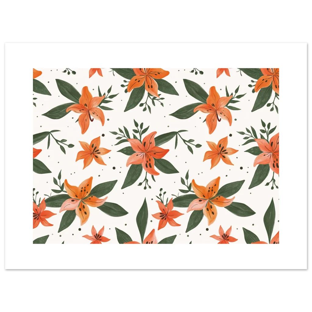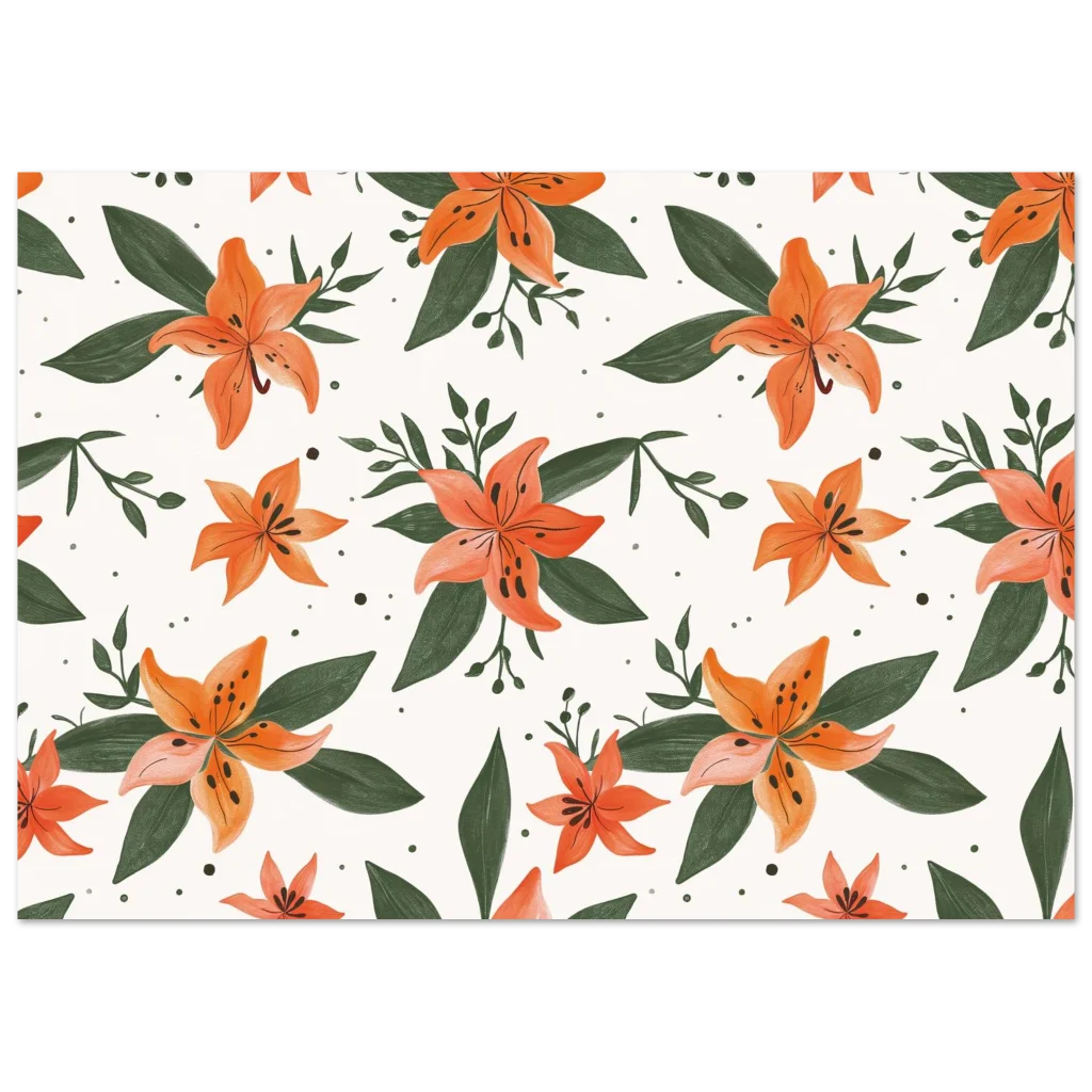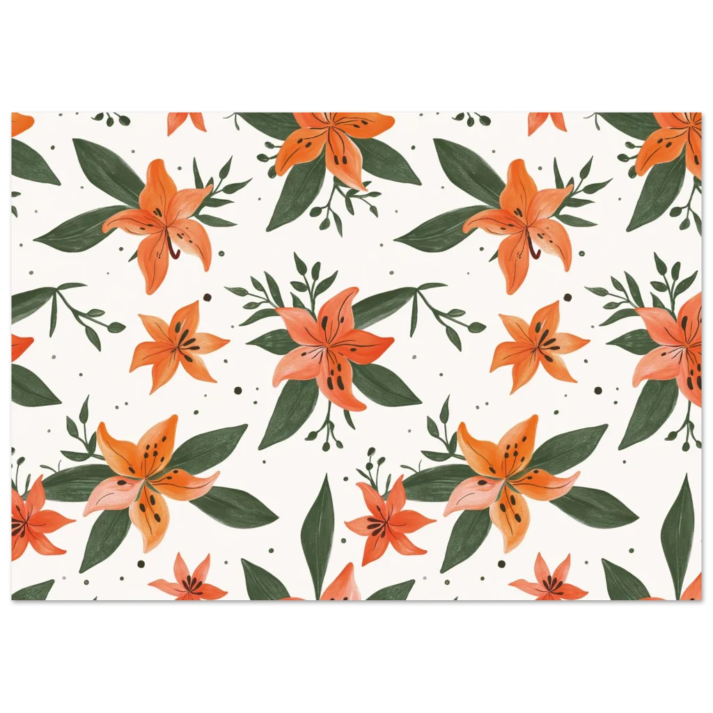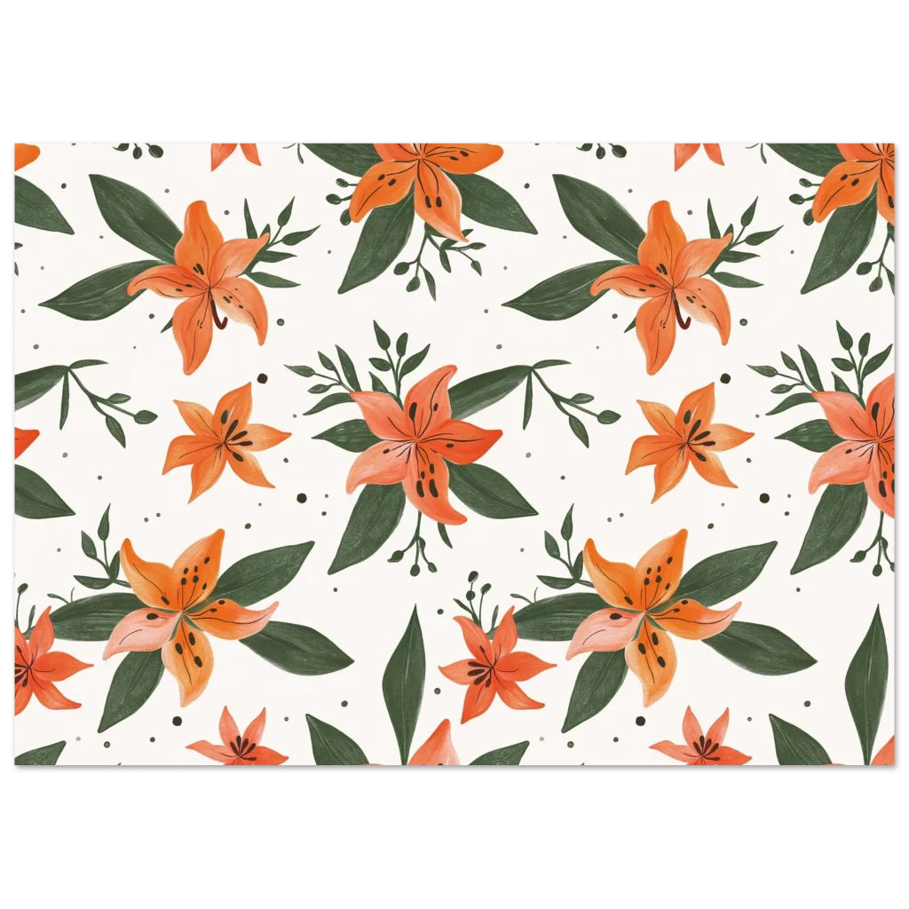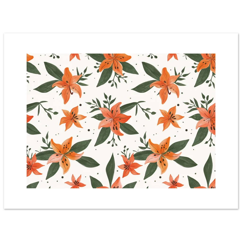 Bring a burst of warm, botanical charm into your home with our stunning Orange Lily Art Print. Featuring a delightful pattern of cheerful orange lilies and lush green foliage, this classic semi-glossy paper poster adds a touch of nature’s elegance and a pop of vibrant color to any space. Its inviting aesthetic creates an uplifting and serene atmosphere, perfect for brightening up your living room, bedroom, or office.