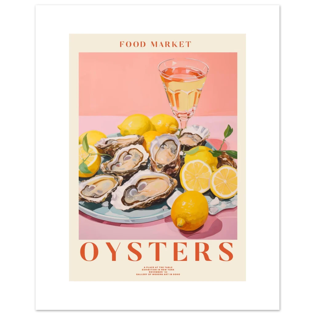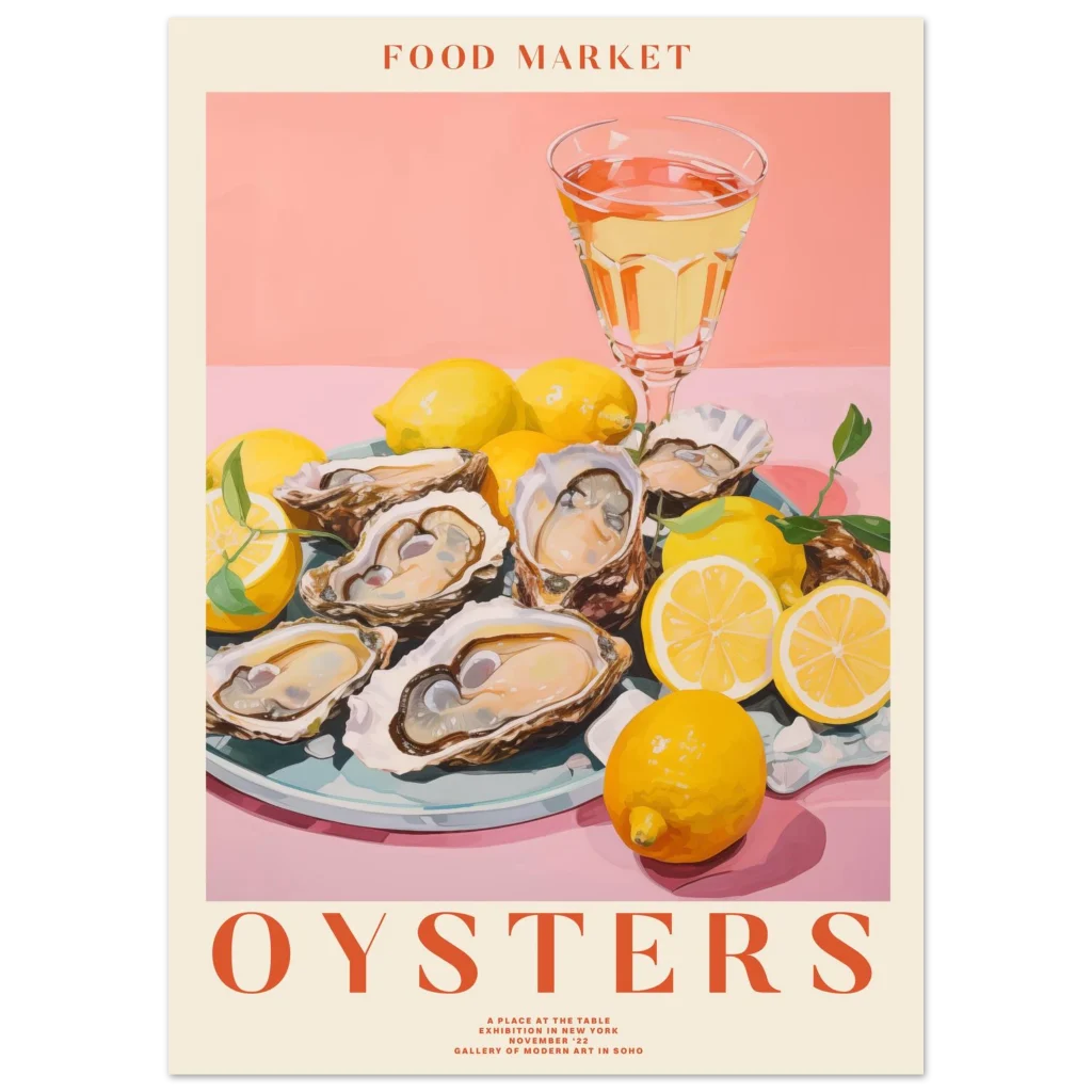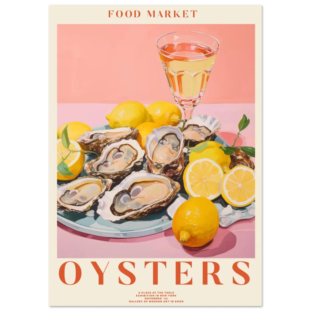 Bring the fresh, vibrant energy of a gourmet market into your home with our stunning Oyster & Lemon Still Life art print. This captivating poster, with its warm coral and sunny yellow palette, evokes the delightful indulgence of fresh seafood and bright citrus, making it a perfect statement piece for kitchens, dining areas, or any space craving a touch of sophisticated charm.