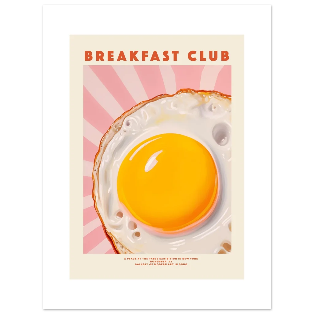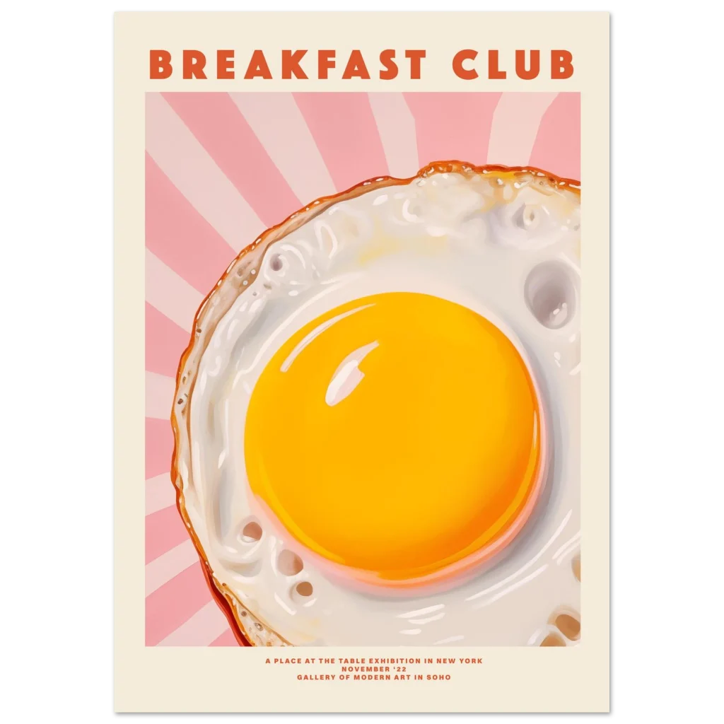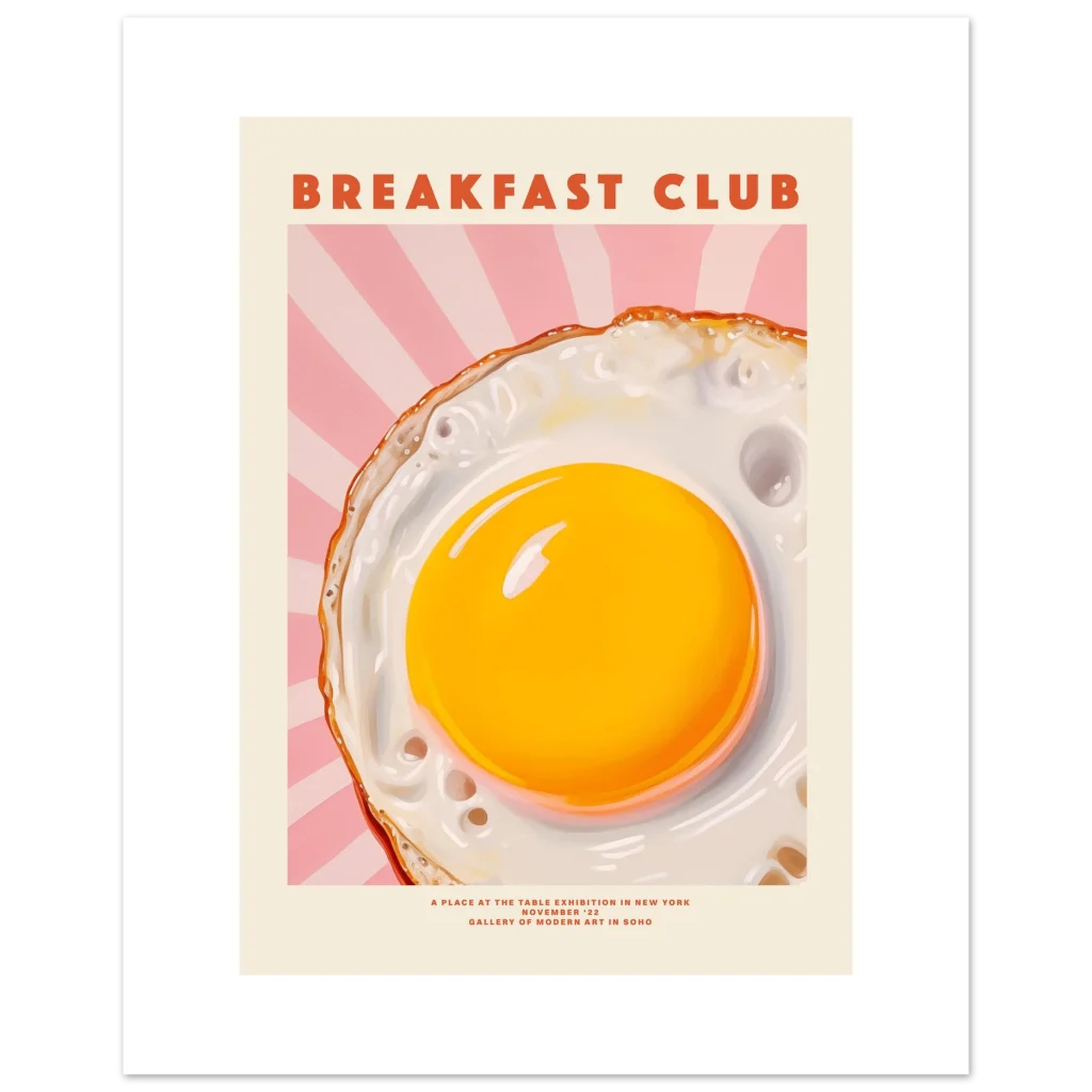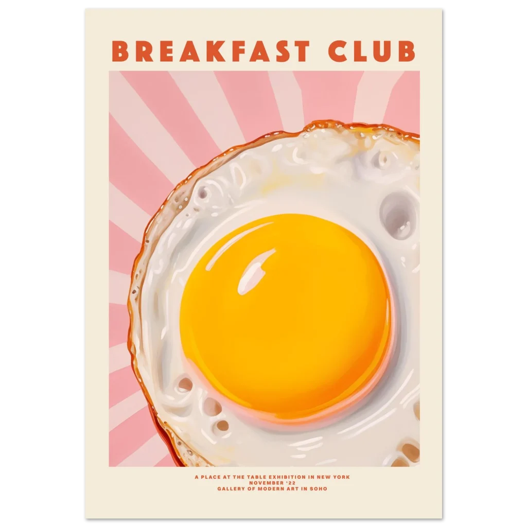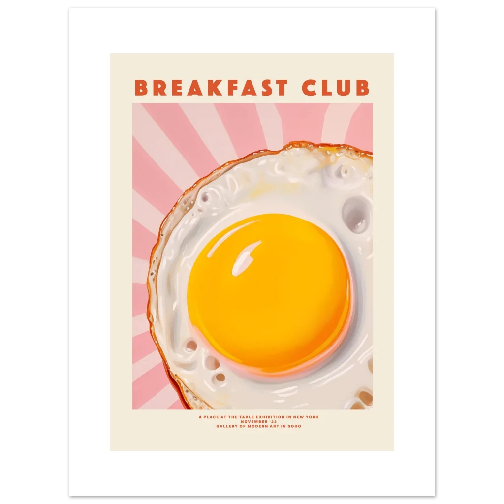 Brighten your space and start every day with a smile with our ‘Breakfast Club’ pop art poster! This striking piece features a sunny fried egg with a perfectly golden yolk, set against a playful backdrop of pink and cream stripes. It’s a whimsical nod to classic diner aesthetics with a modern, artistic twist, bringing a burst of retro charm and good vibes to any room.