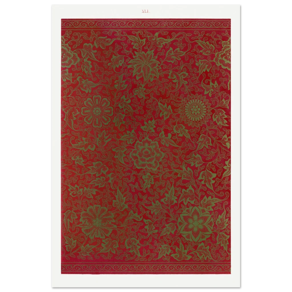Bring a touch of timeless elegance and bold color into your home with this exquisite floral tapestry poster. Inspired by classic botanical patterns and rendered in a striking red and green palette, this print adds a luxurious, art-deco feel to any room. Its intricate details and rich hues make it a perfect statement piece, whether you’re enhancing a cozy nook or a grand living area.
