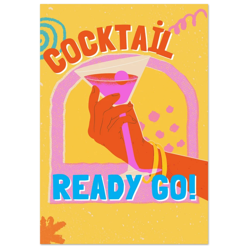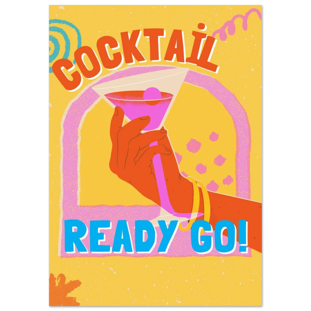 Select your ideal size and get ready to add a splash of fun and retro charm to your home. Order your ‘Cocktail Ready Go!’ poster today and let the good vibes flow!