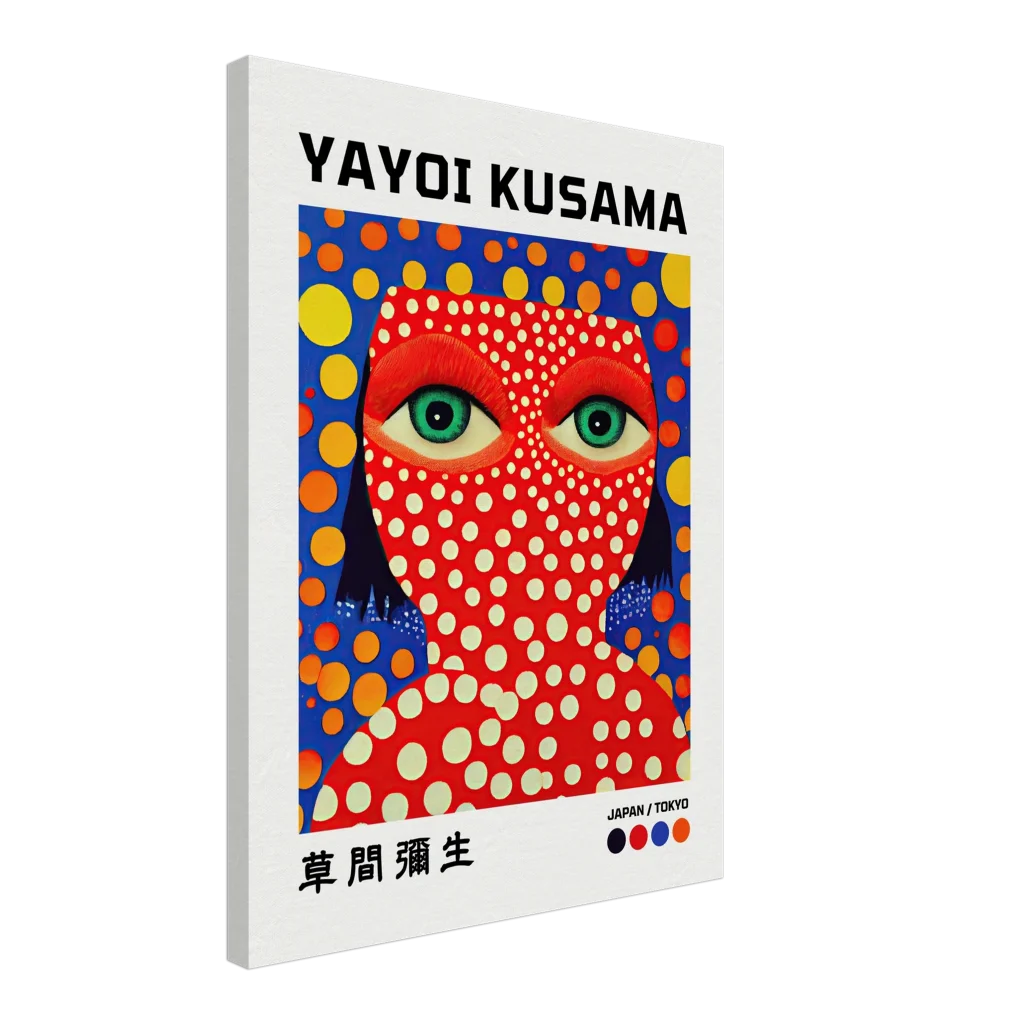 Vibrant Yayoi Kusama Inspired Pop Art Canvas – Bold Polka Dot Portrait Wall Art