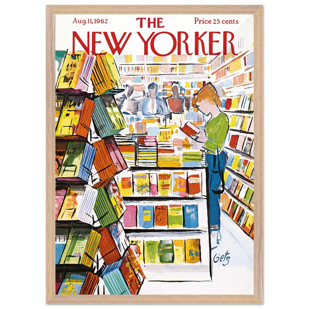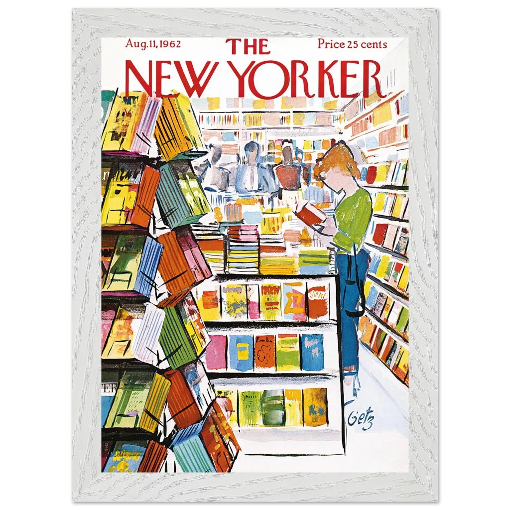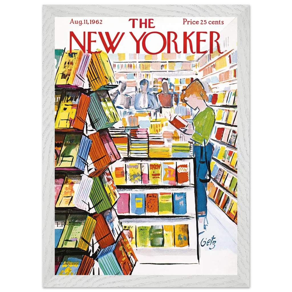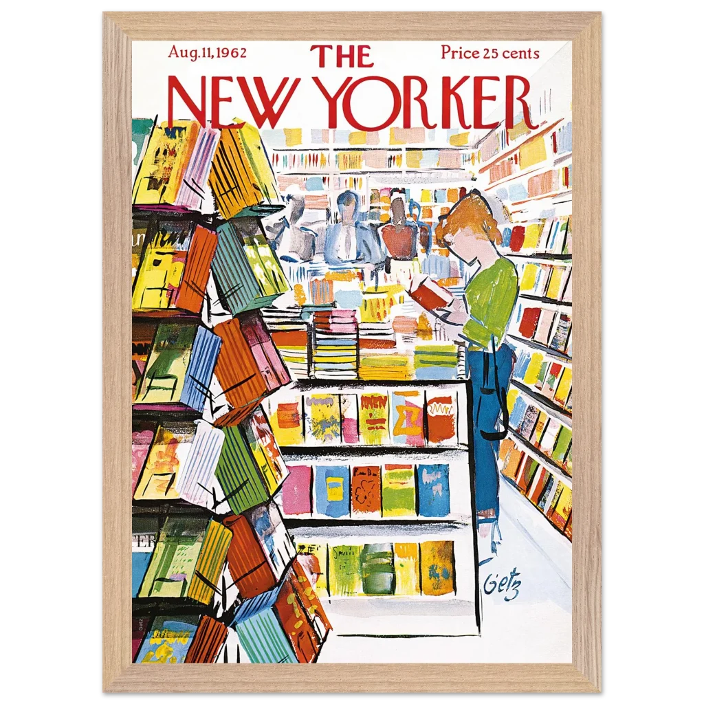 Vintage Bookstore Bliss Poster – The New Yorker 1962 Cover Print Premium Wooden Framed Art with Matte Paper Finish