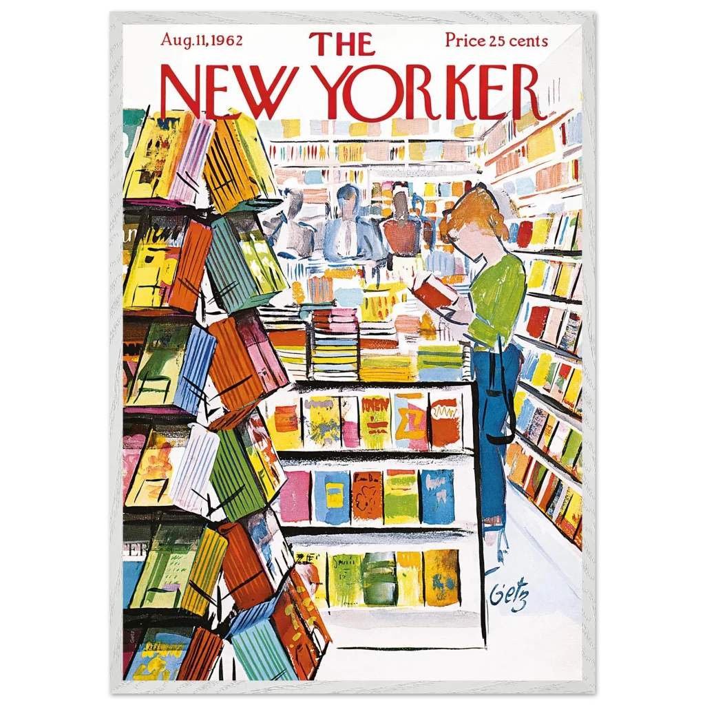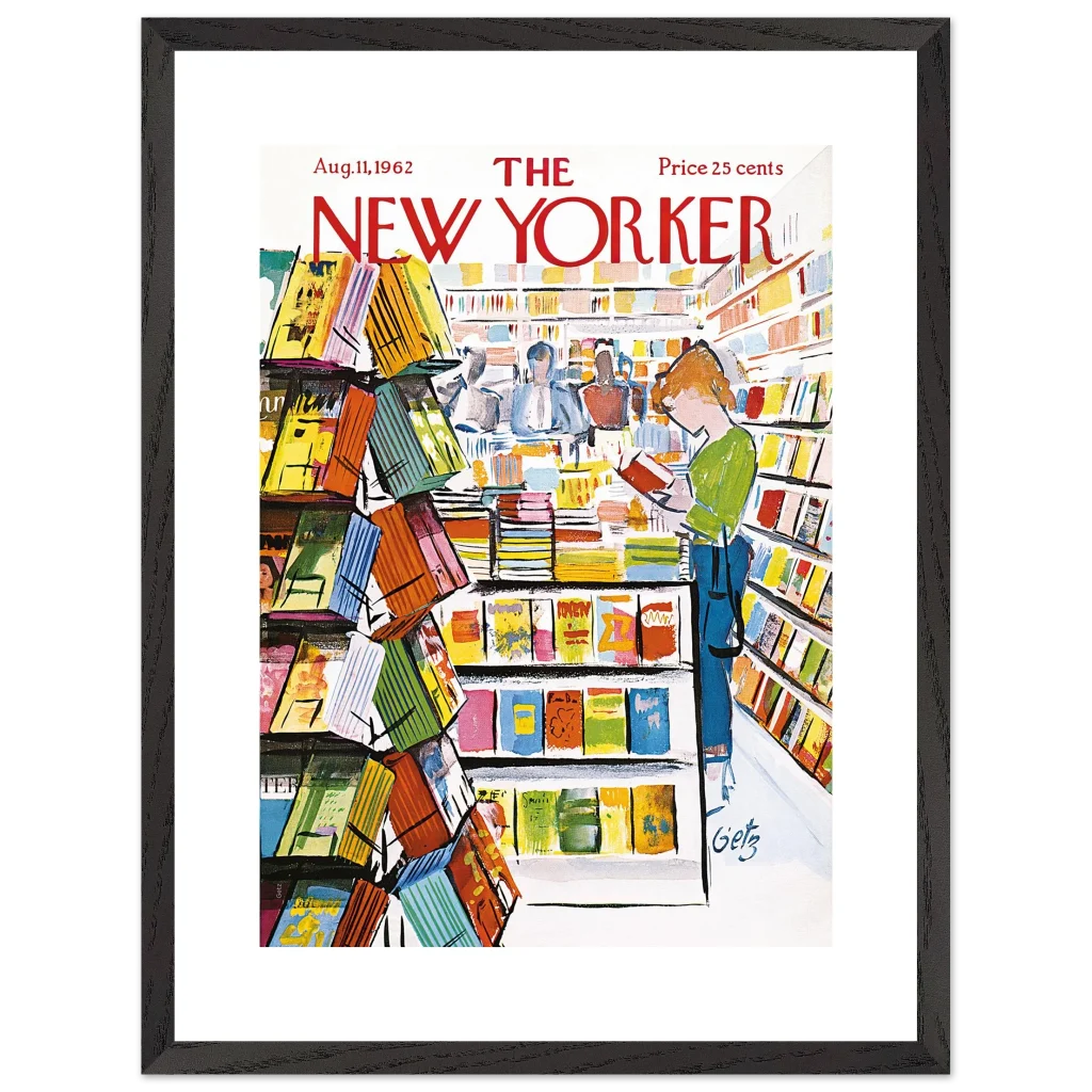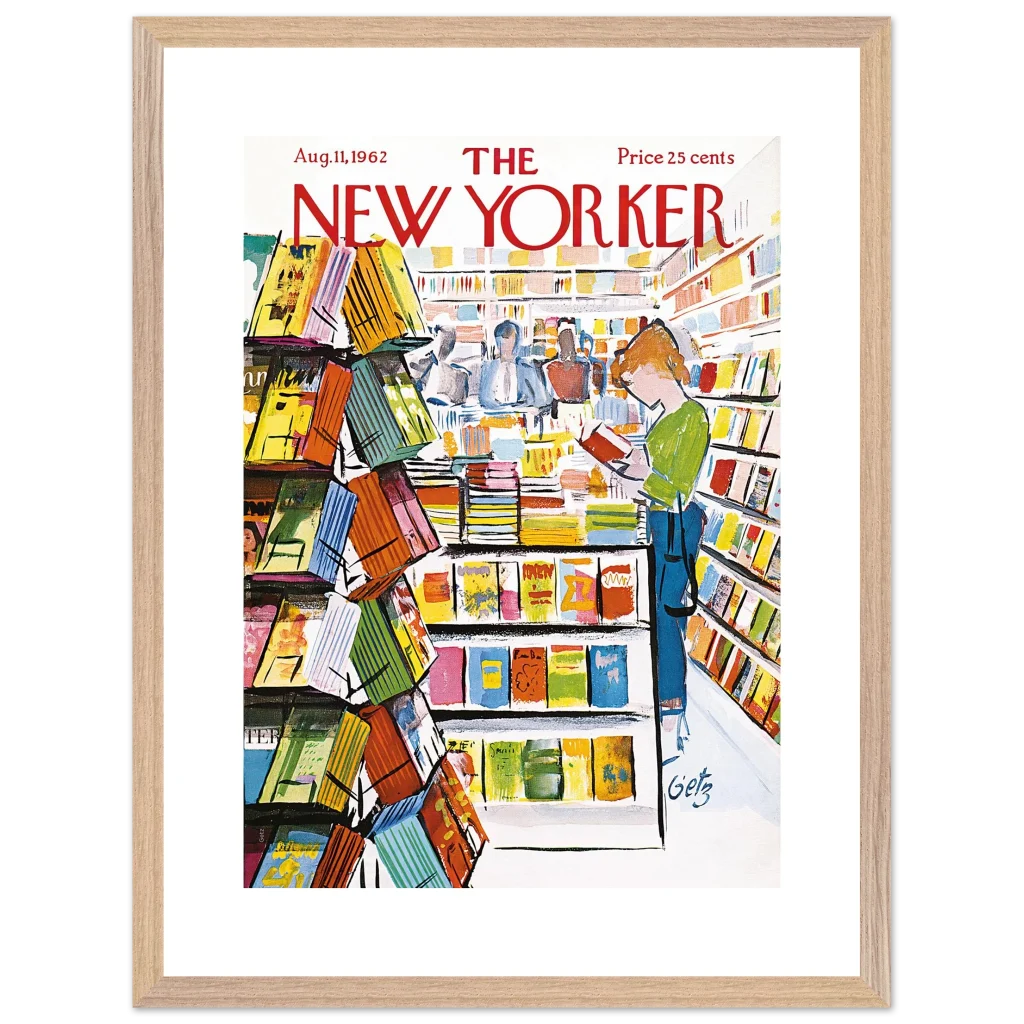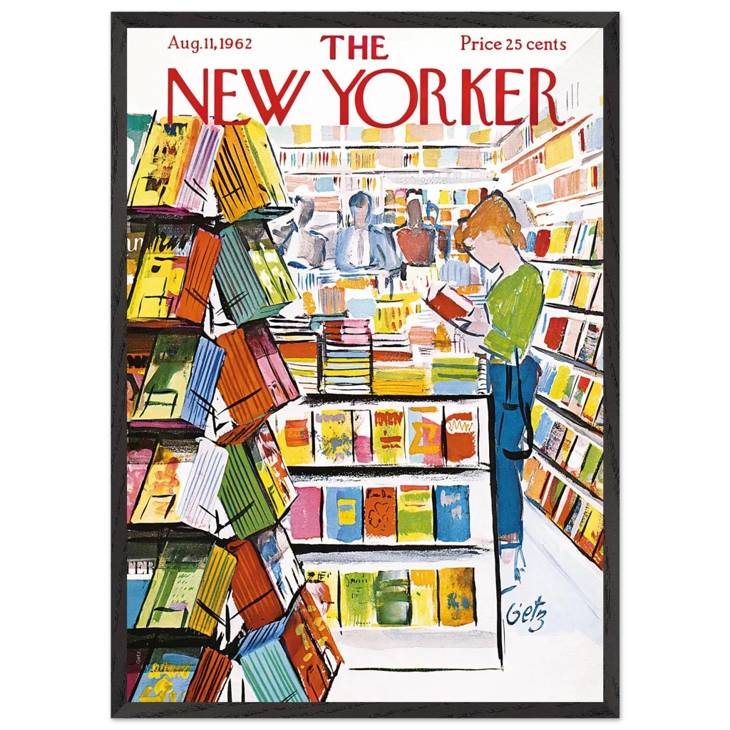Vintage Bookstore Bliss Poster – The New Yorker 1962 Cover Print Premium Wooden Framed Art with Matte Paper Finish