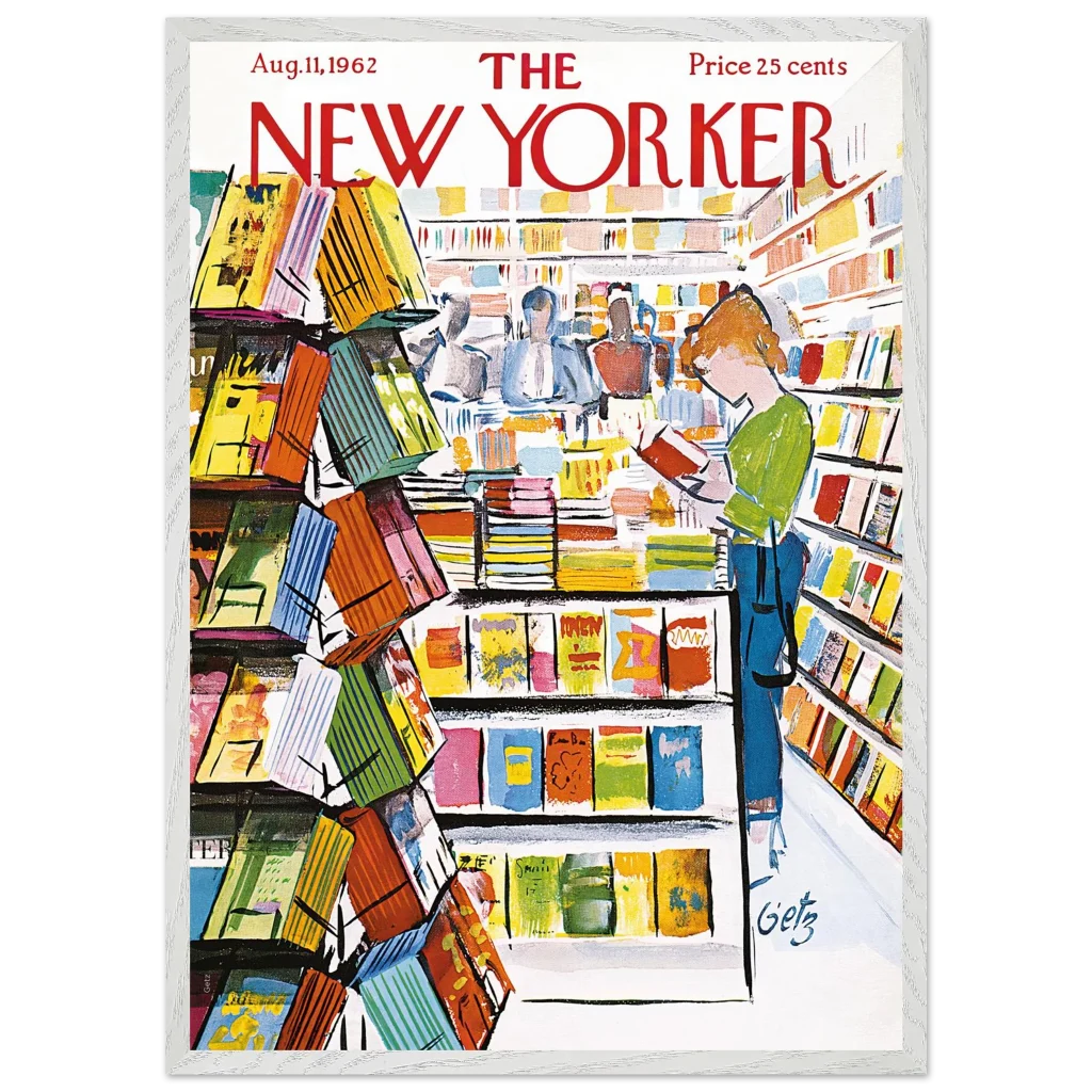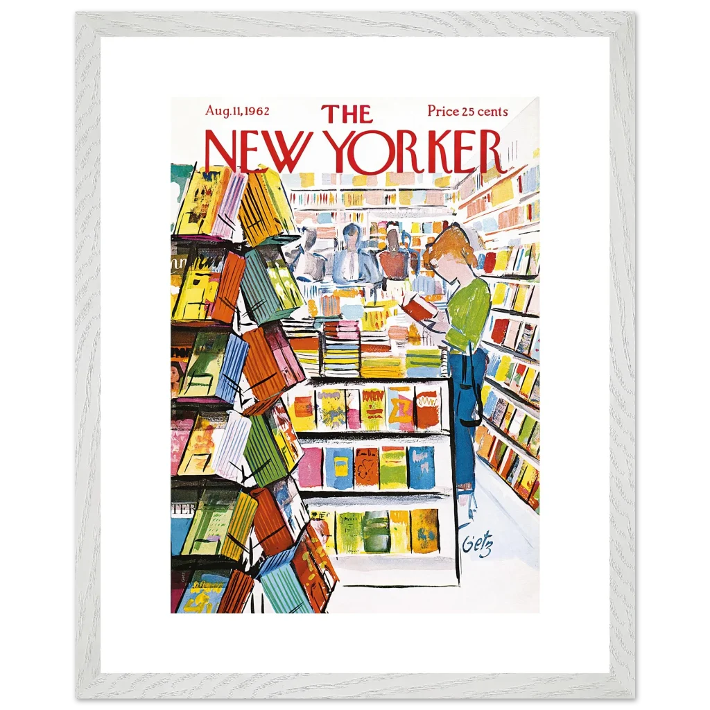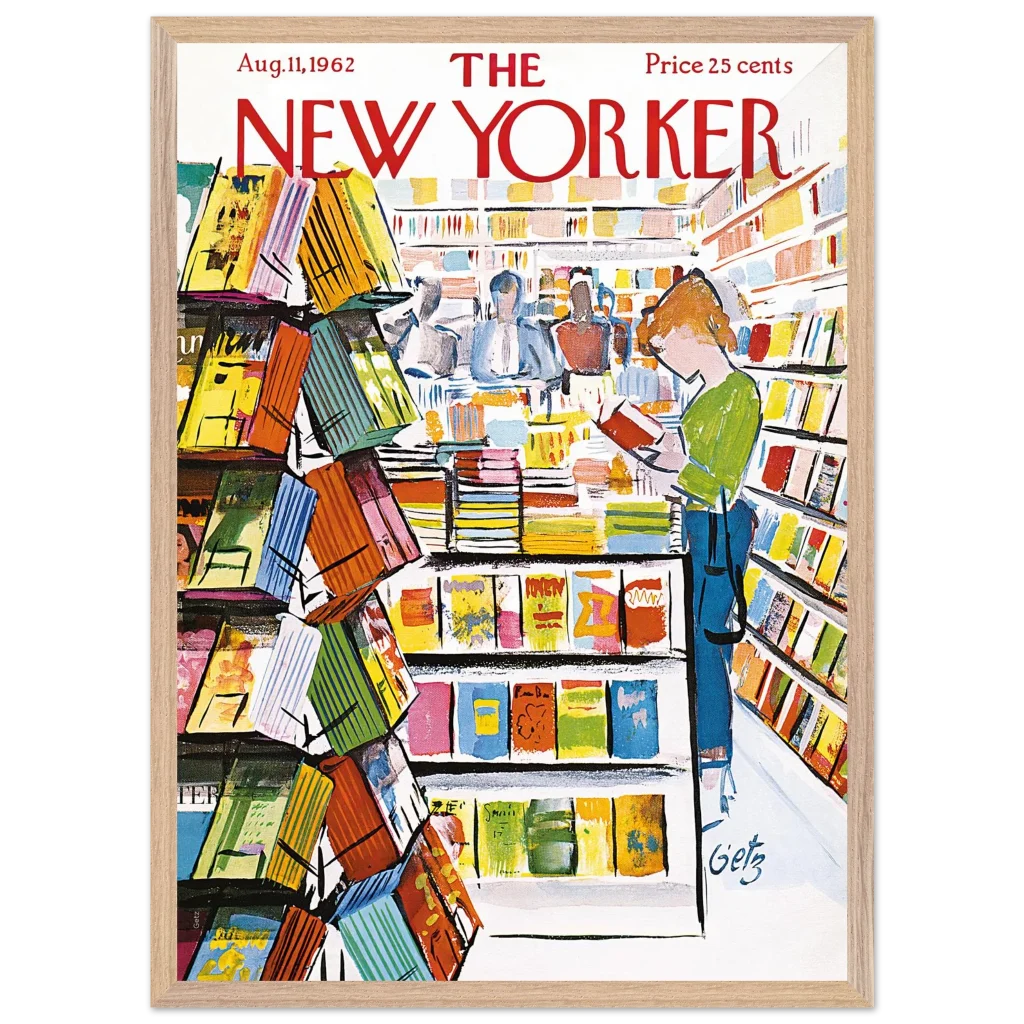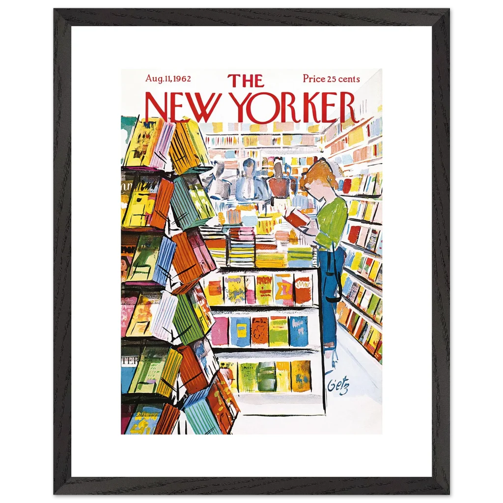 Vintage Bookstore Bliss Poster – The New Yorker 1962 Cover Print Premium Wooden Framed Art with Matte Paper Finish