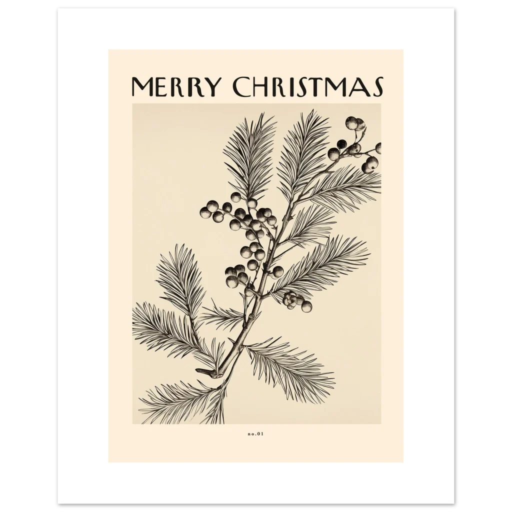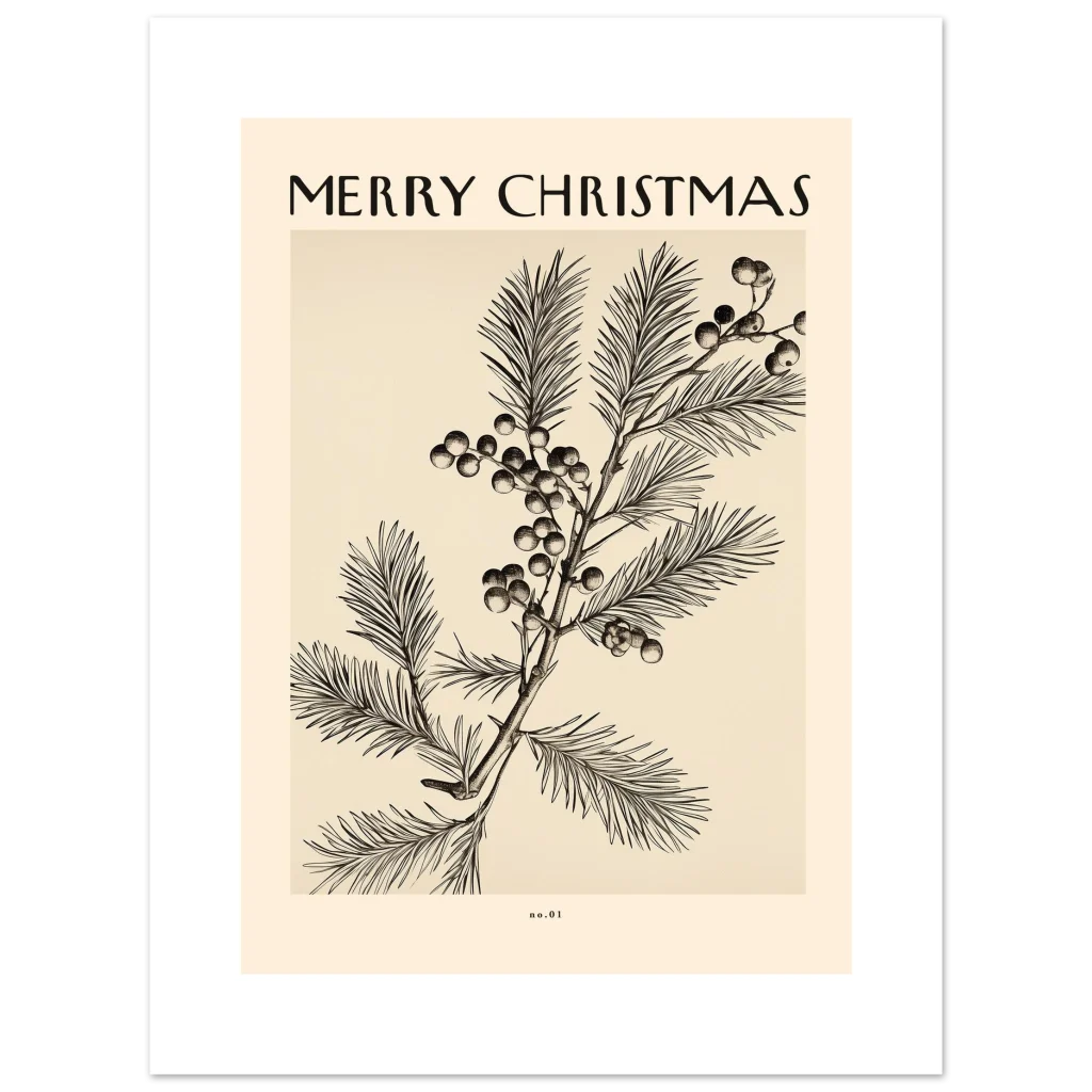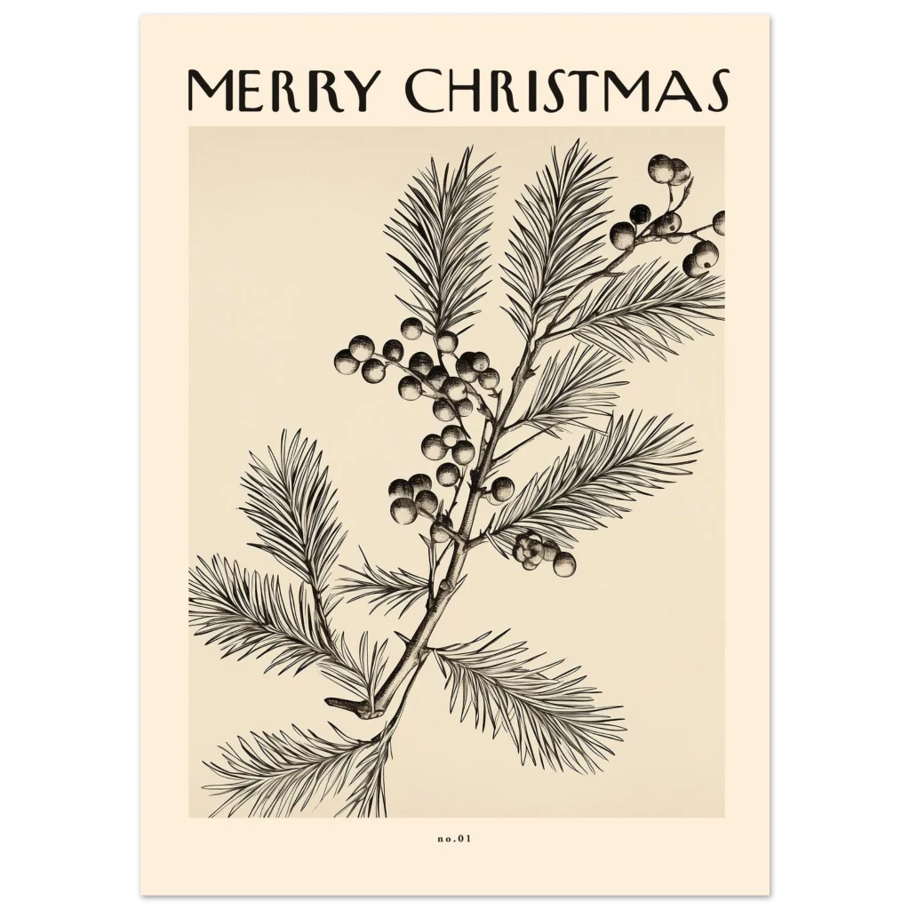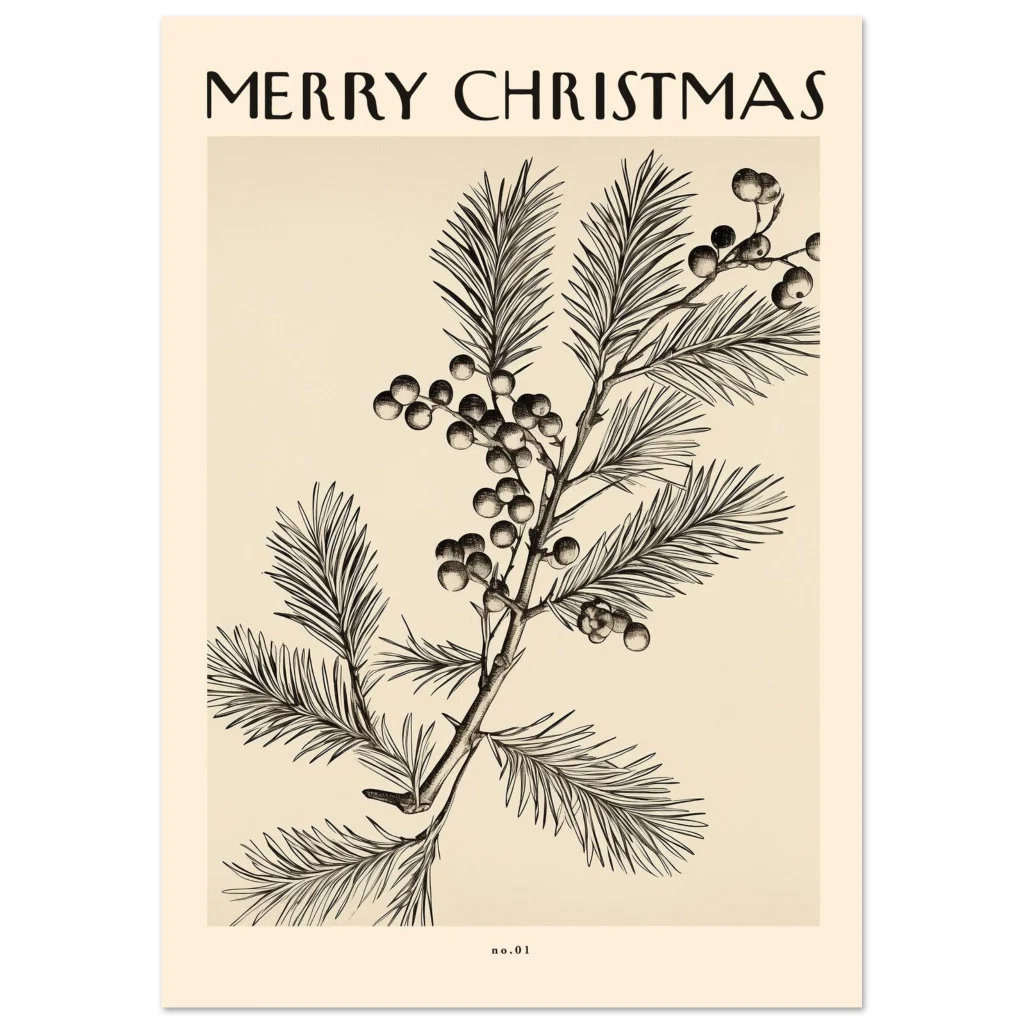 Bring a touch of timeless elegance and festive cheer to your home with our “Merry Christmas” botanical art poster. Inspired by classic scientific illustrations, this design features intricate detailing of winter foliage and berries, evoking a sense of nostalgic warmth and sophisticated holiday spirit. The delicate lines and muted, vintage-inspired palette make it a perfect addition to any seasonal decor, offering a subtle yet impactful statement.