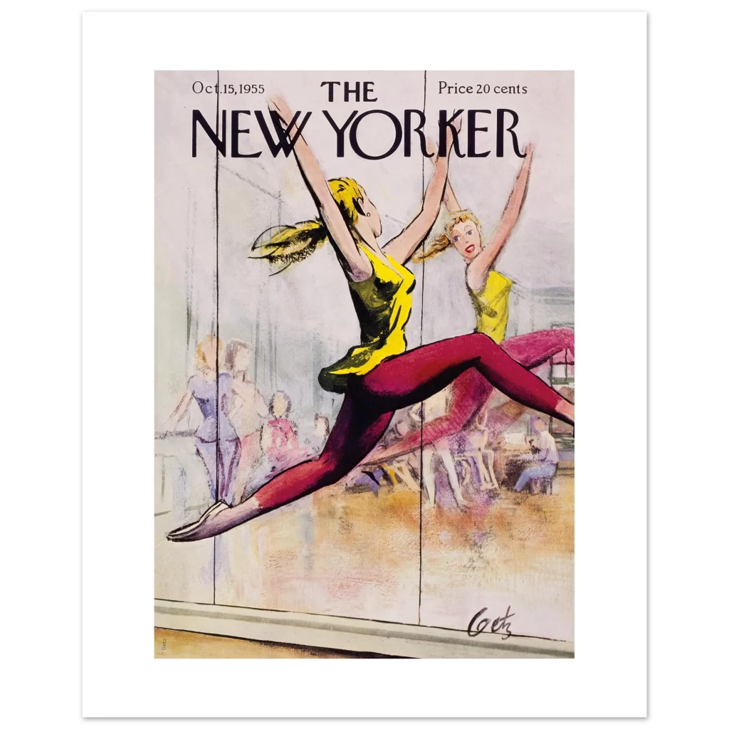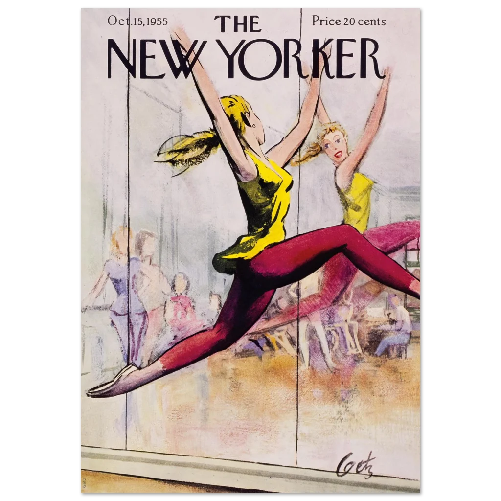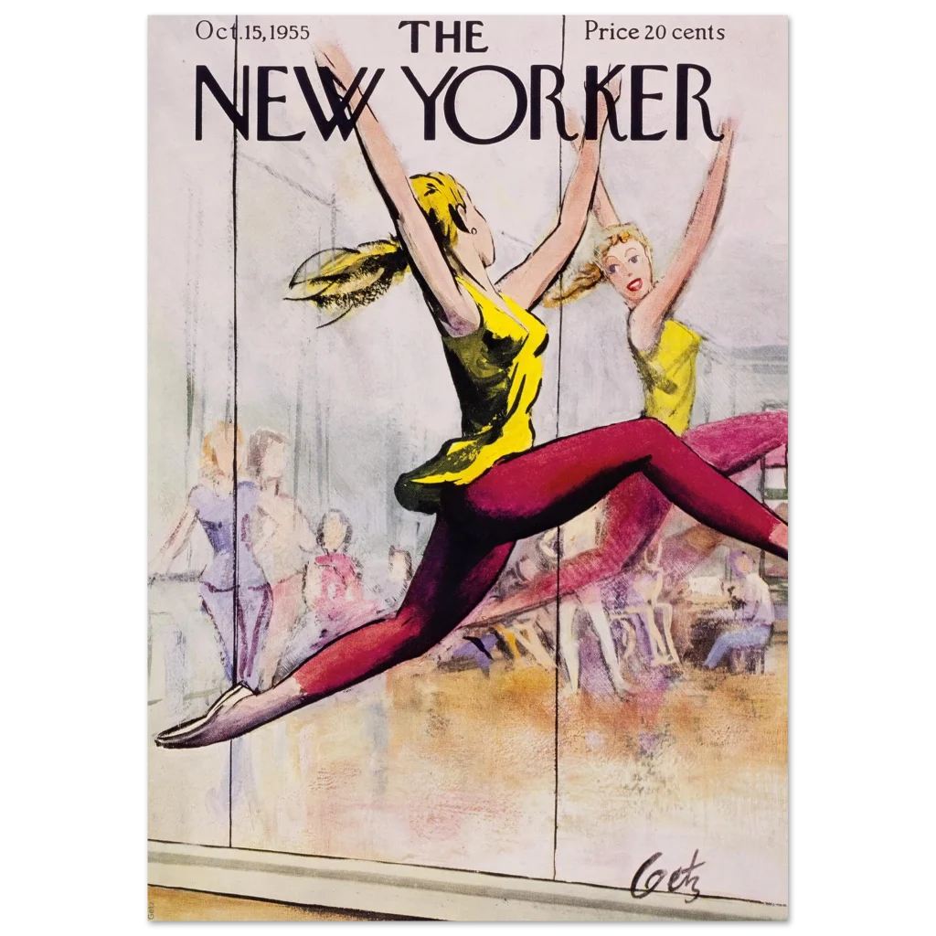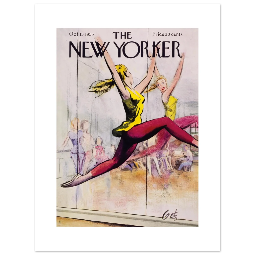 Capture the timeless elegance and dynamic energy of vintage ballet with this stunning reproduction of a classic New Yorker cover. Featuring graceful dancers mid-leap in vibrant yellow and magenta hues, this poster brings an artistic touch of mid-century charm and lively movement to any room. It’s an instant focal point for art lovers and those who appreciate the spirited beauty of dance.