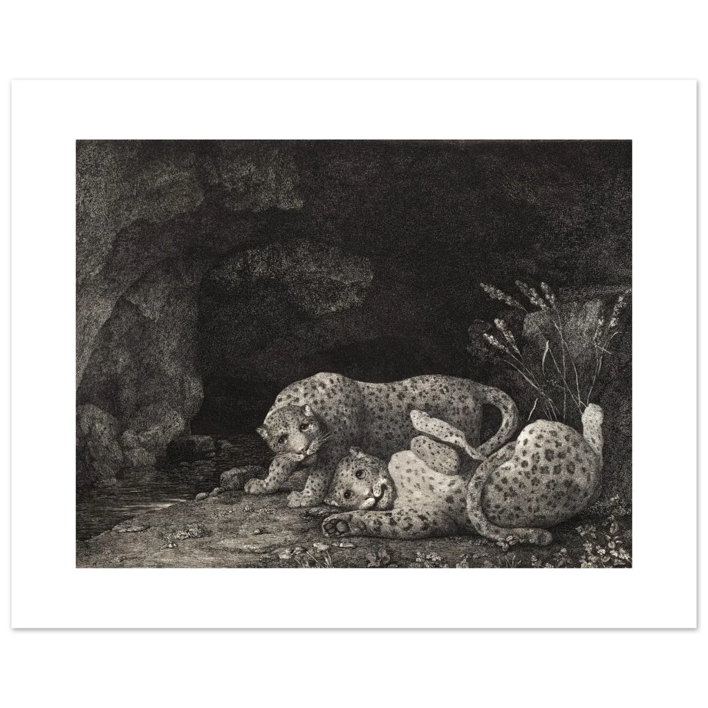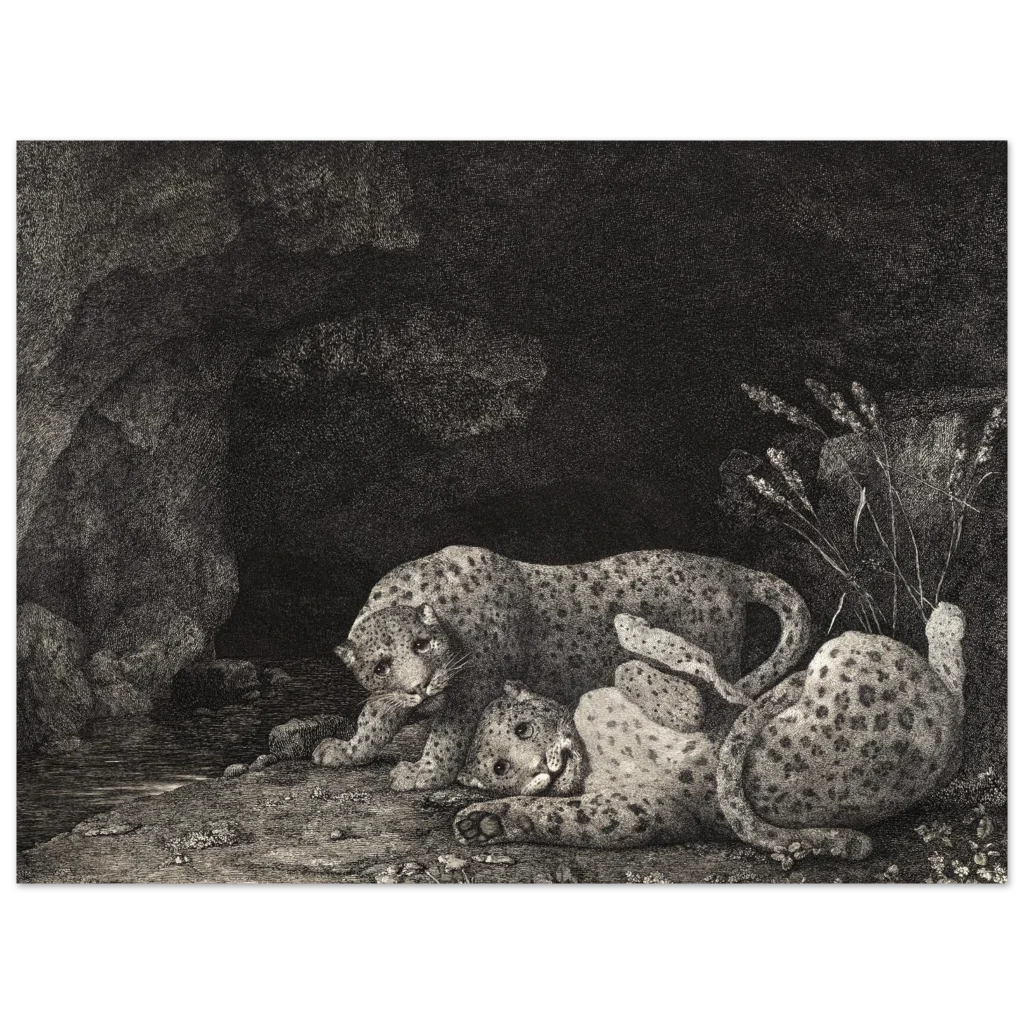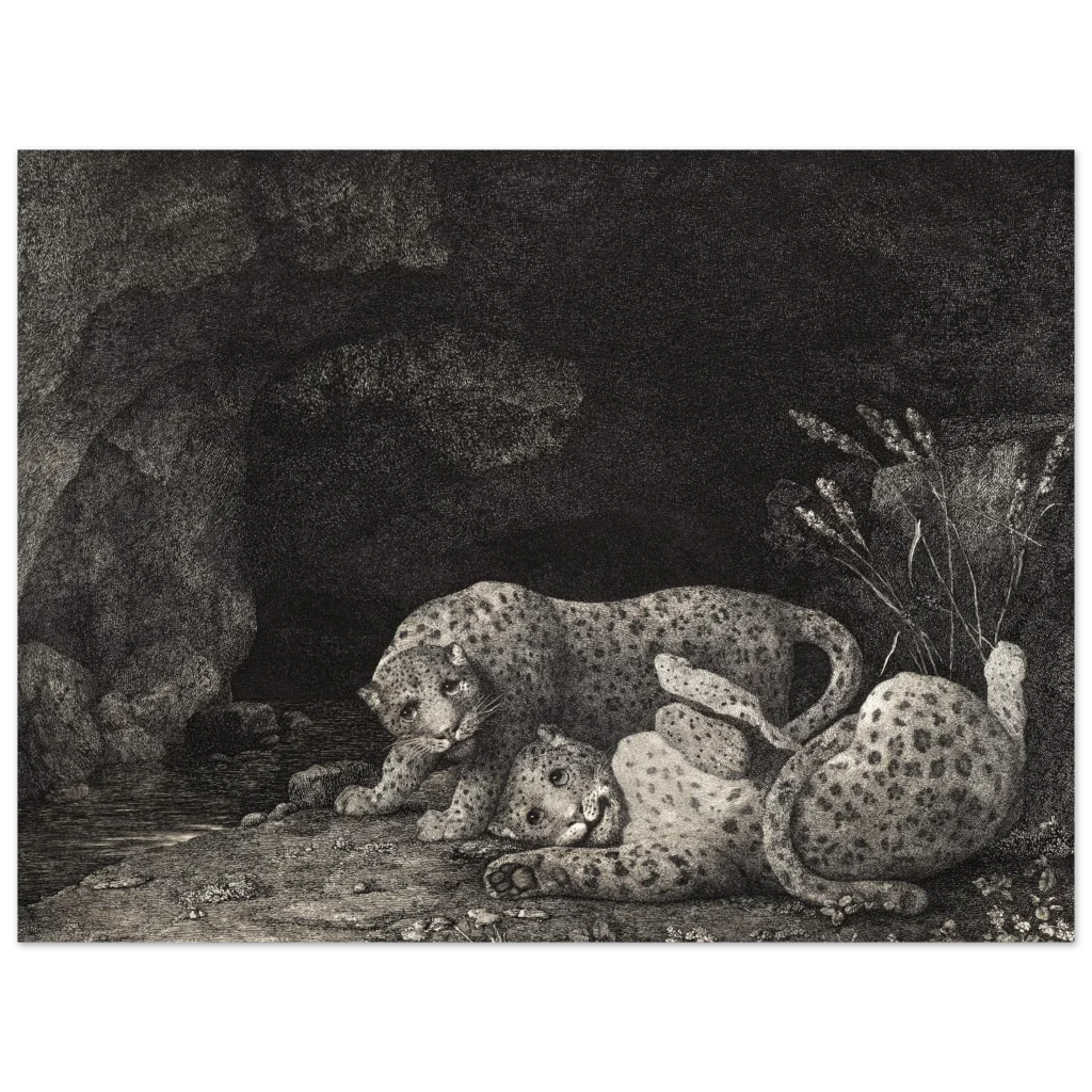 Vintage Leopard Family Etching Art Print – Premium Matte Poster for Wildlife Enthusiasts