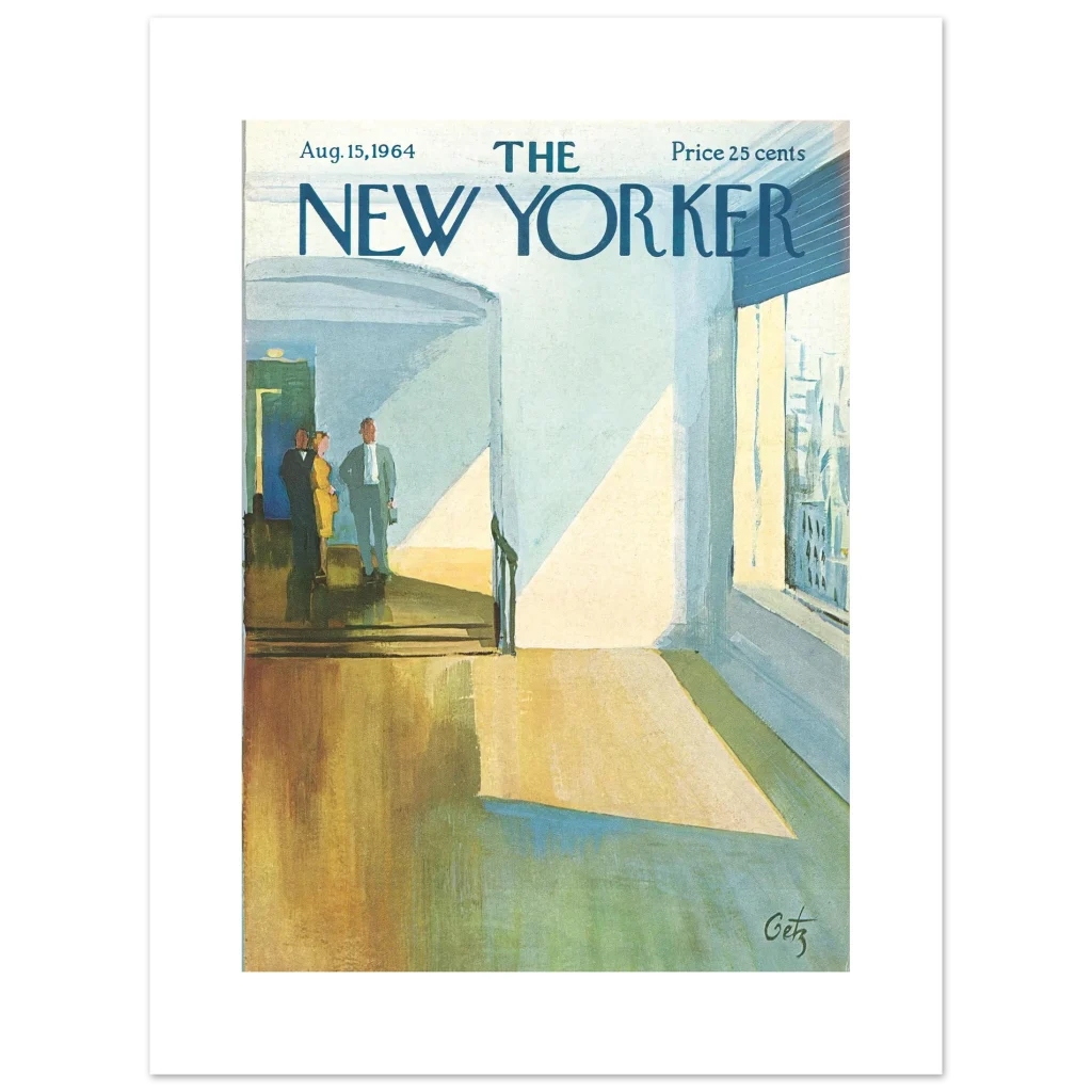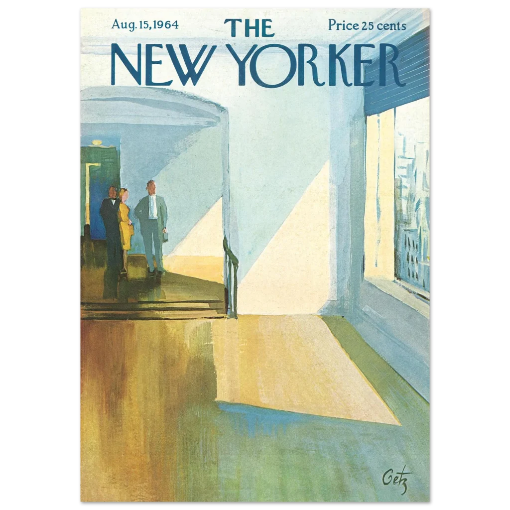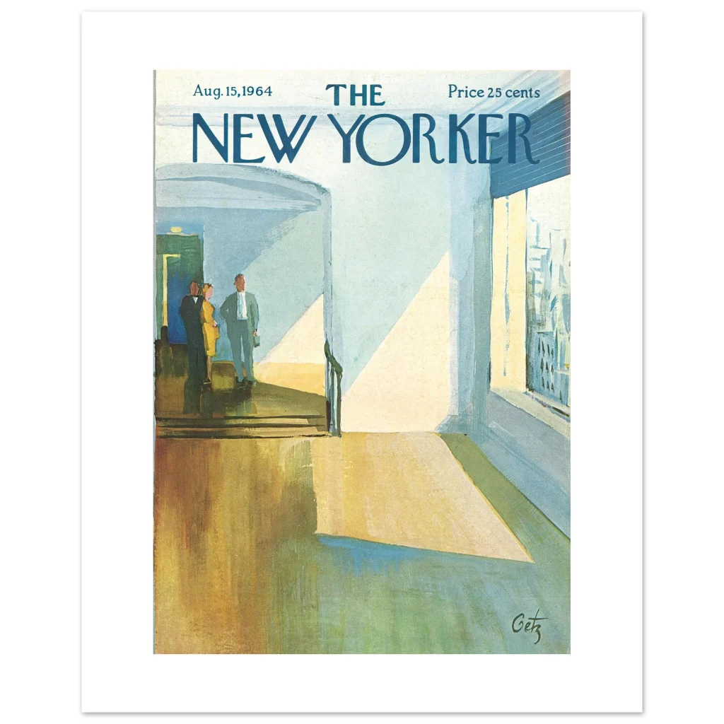 Step into the serene elegance of a mid-century moment with our exclusive art print. This captivating piece, reminiscent of a classic New Yorker cover, perfectly captures the quiet sophistication of urban life with its soft, inviting light and timeless appeal. It’s an ideal addition for those who appreciate vintage charm, subtle artistry, and a touch of nostalgic tranquility in their home or office decor.