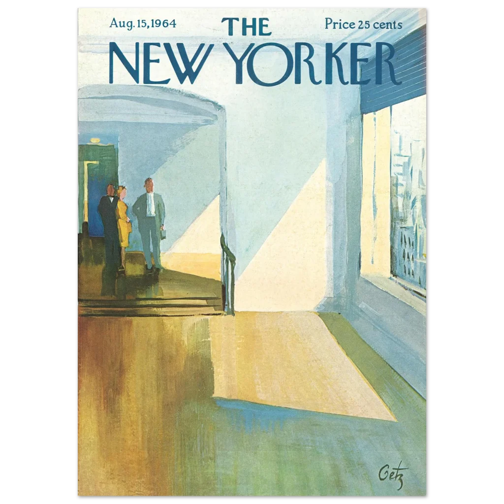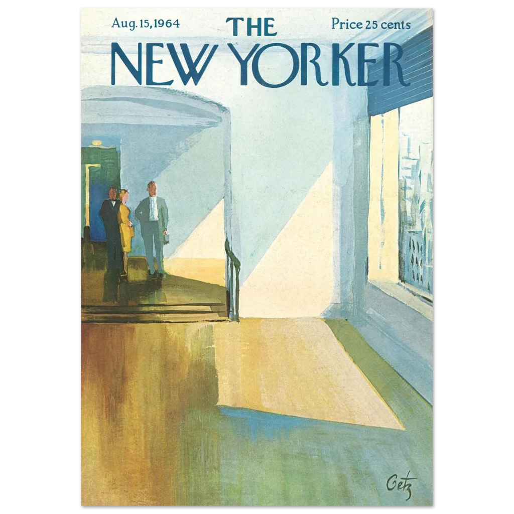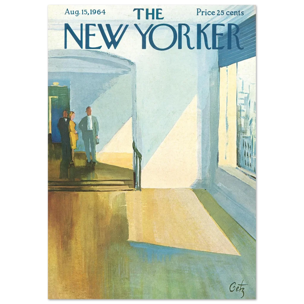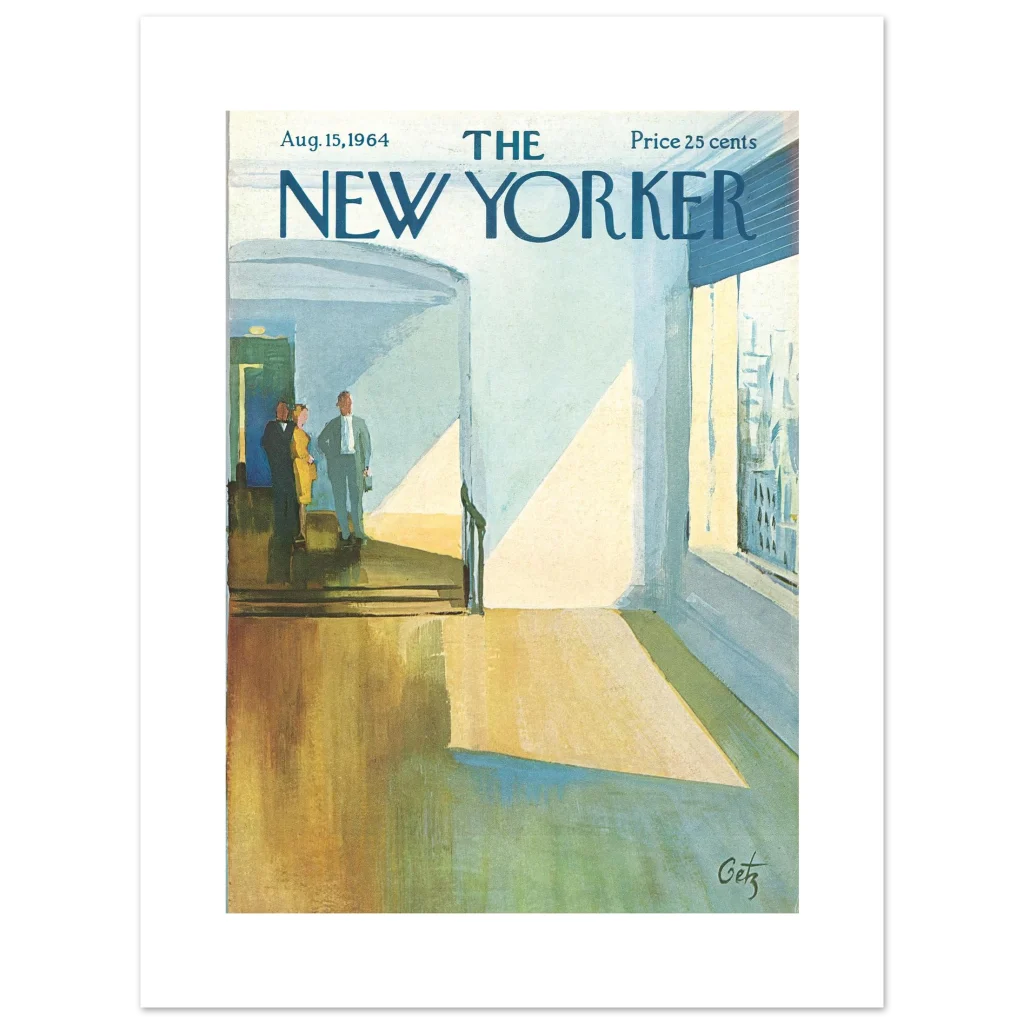 Step into the serene elegance of a mid-century moment with our exclusive art print. This captivating piece, reminiscent of a classic New Yorker cover, perfectly captures the quiet sophistication of urban life with its soft, inviting light and timeless appeal. It’s an ideal addition for those who appreciate vintage charm, subtle artistry, and a touch of nostalgic tranquility in their home or office decor.