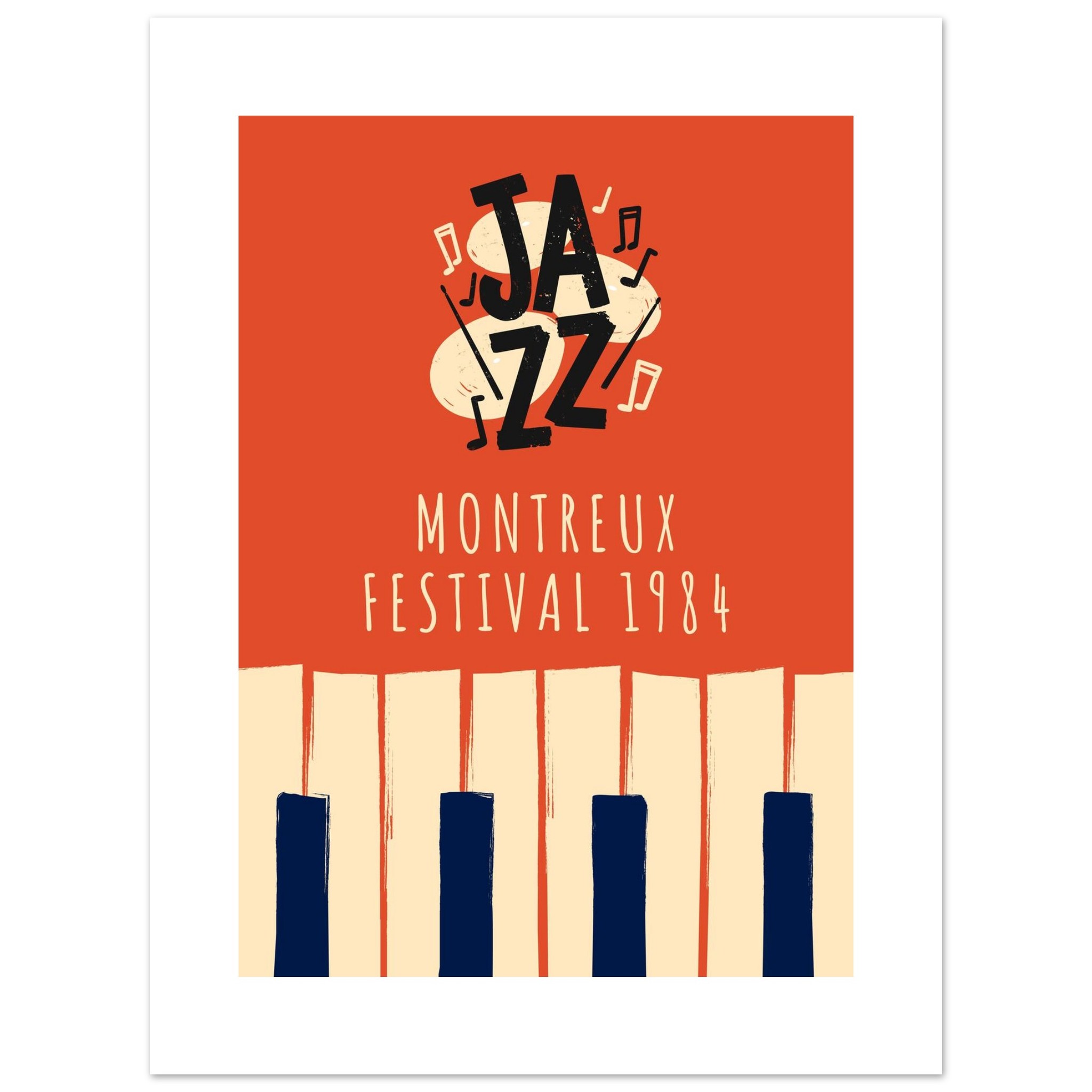 Celebrate the timeless spirit of jazz with this Montreux Jazz Festival 1984 vintage-style poster. Featuring bold typography, lively musical notes, and a stylized piano keyboard, this retro music print brings the charm of classic festival art into any home, studio, or creative space. Perfect for jazz lovers, musicians, collectors, and fans of vintage concert posters, this artwork adds a warm, artistic touch to your wall décor. Ideal for living rooms, music rooms, cafés, and professional studios.