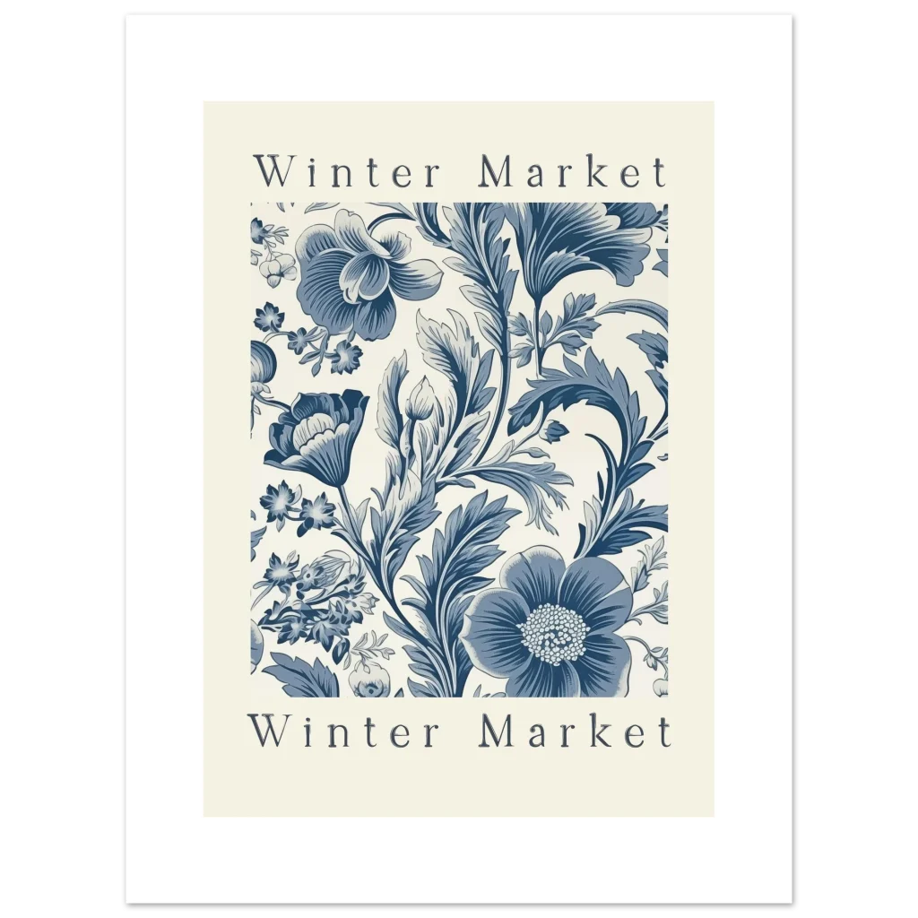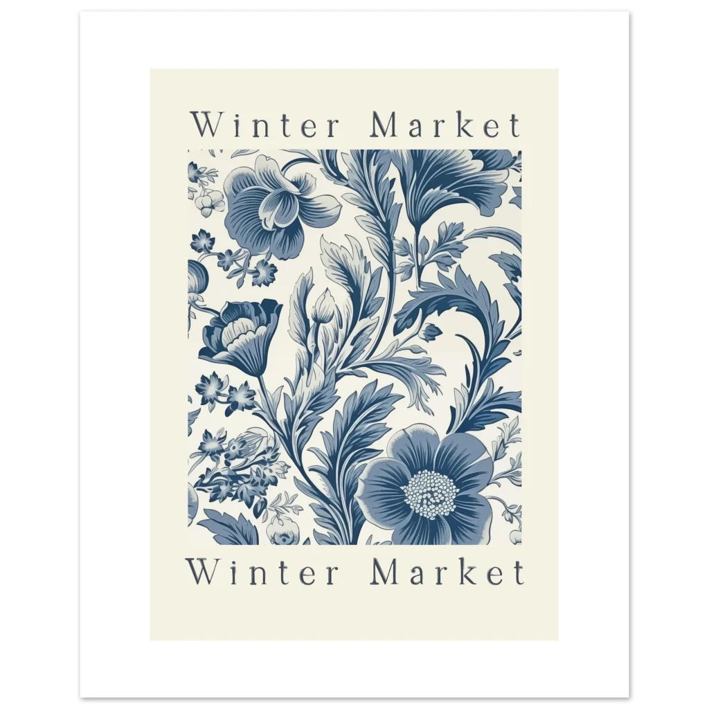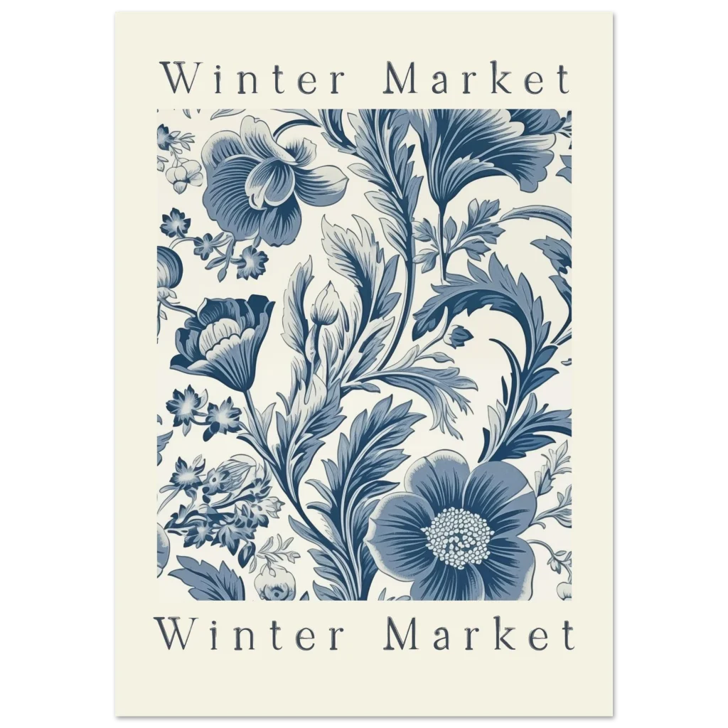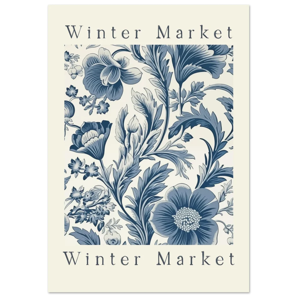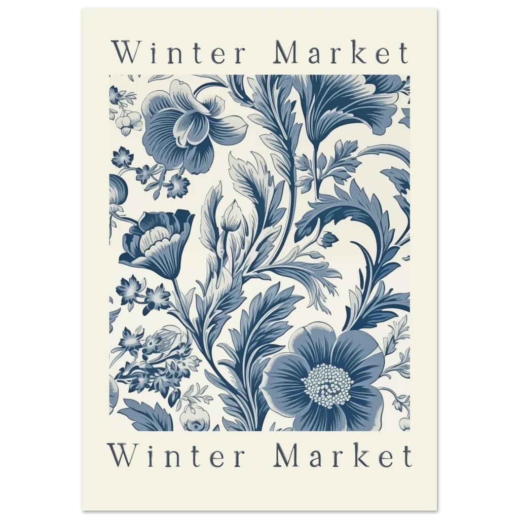 Winter Market Blue Floral Bloom Premium Matte Paper Poster – Vintage Botanical Art Print for Your Home