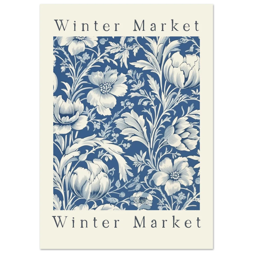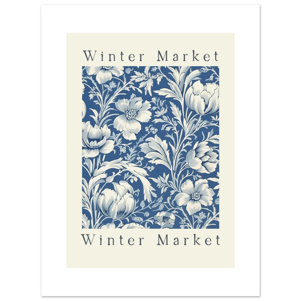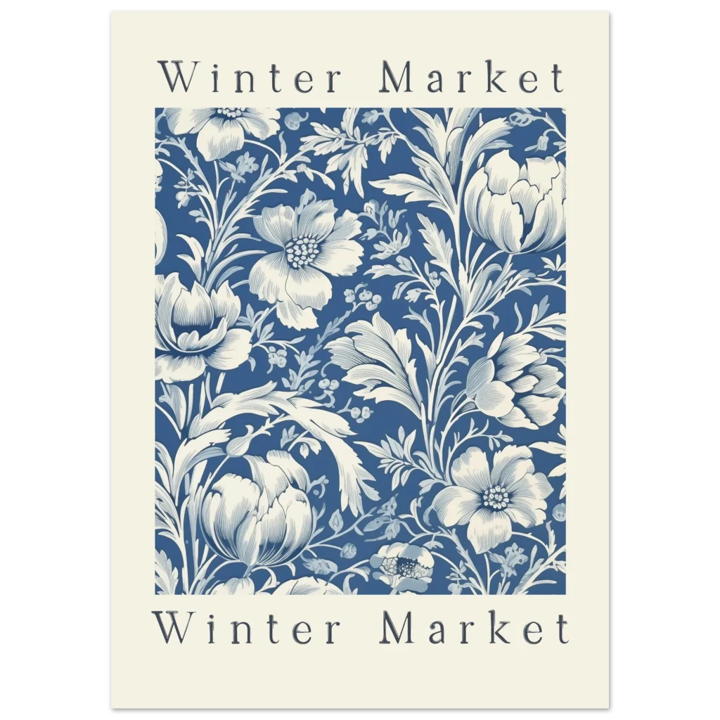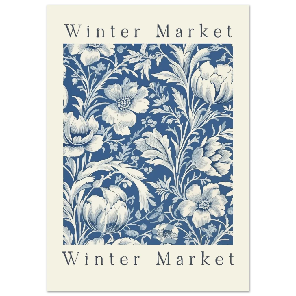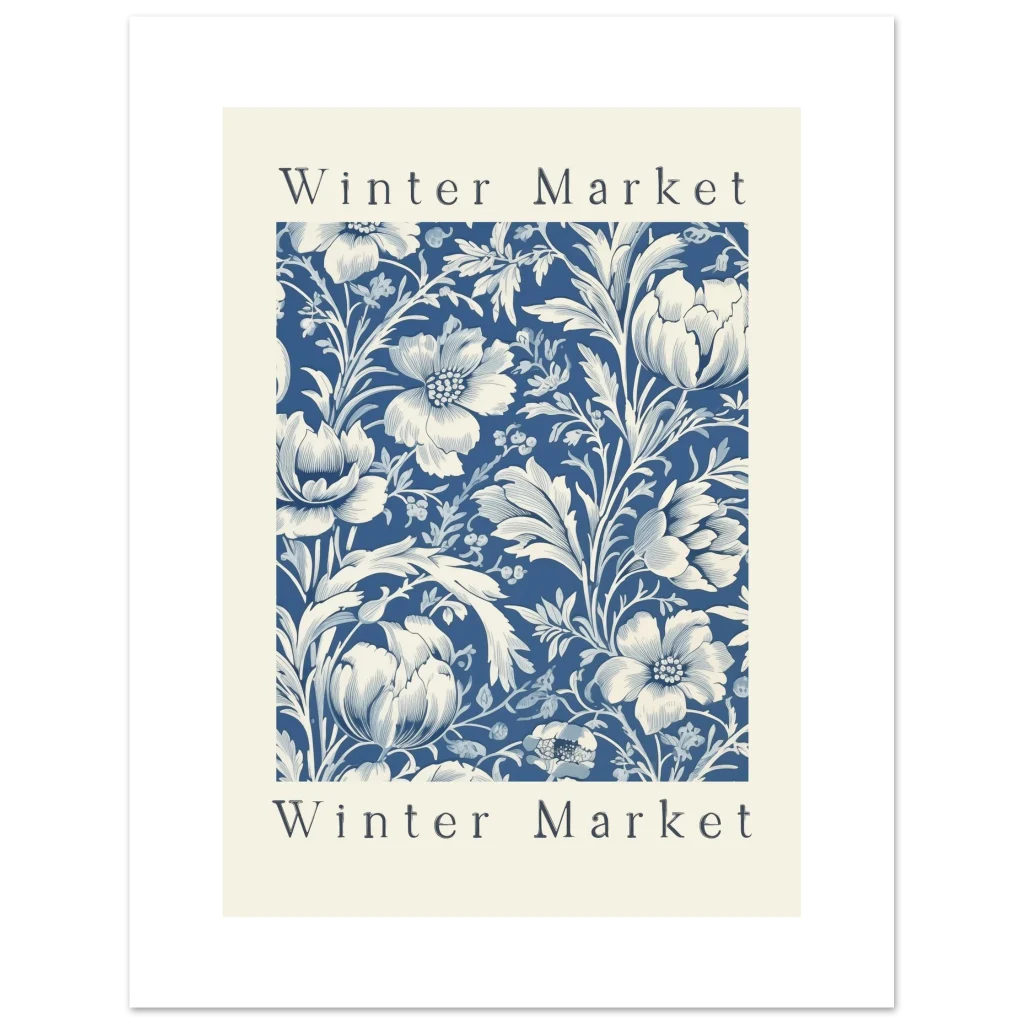 Winter Market Vintage Floral Indigo Blue Botanical Art Print – Premium Matte Paper Poster