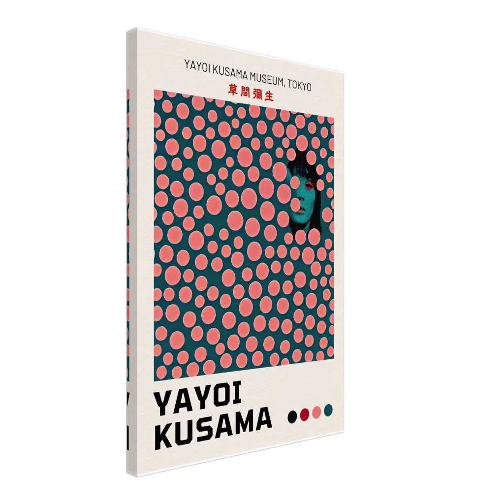 Immerse yourself in the vibrant, mesmerizing world of Yayoi Kusama with this striking canvas print. Inspired by the iconic artist and the Yayoi Kusama Museum in Tokyo, this piece features bold, contrasting polka dots and a captivating artistic style. The rich color palette of deep teal and vivid coral-pink will infuse any space with a sense of modern sophistication and playful energy. It’s more than just a print; it’s an experience, designed to bring a touch of avant-garde brilliance into your home.