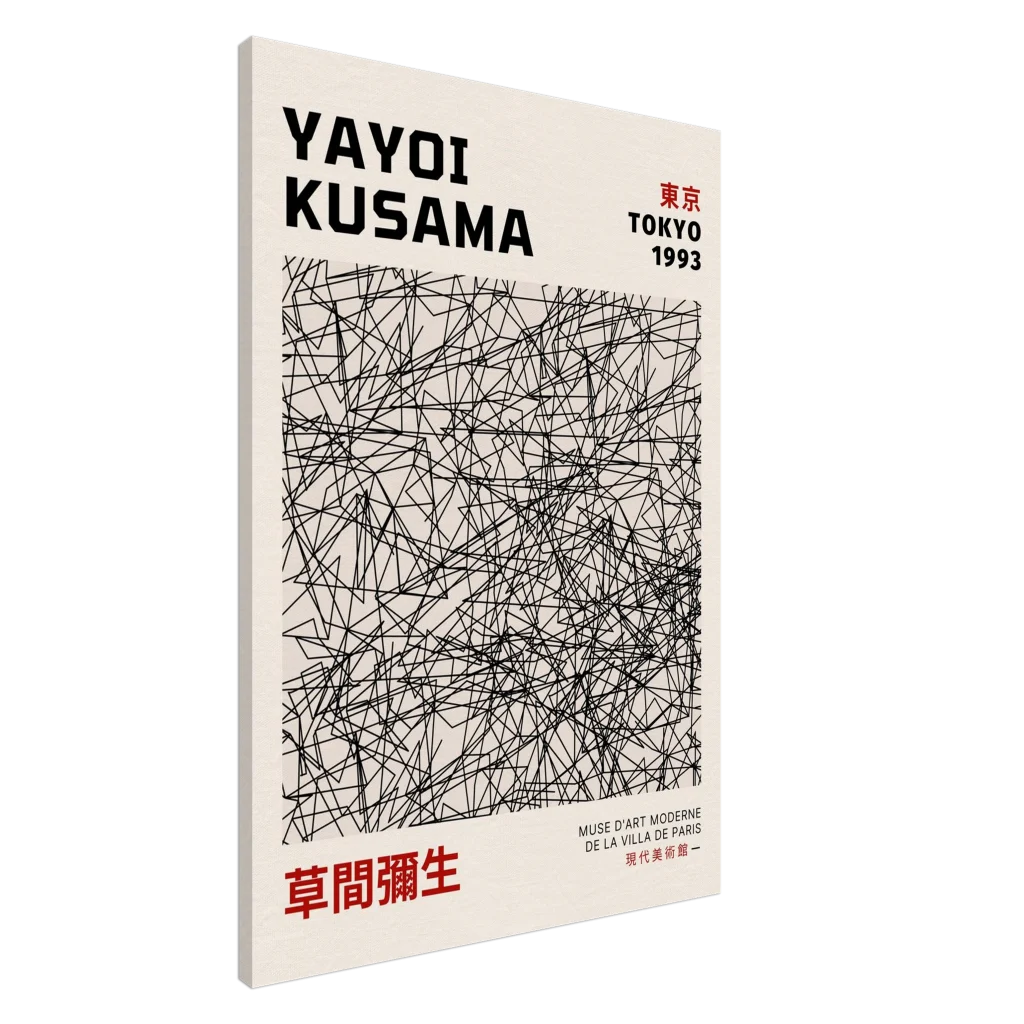 Immerse your space in the compelling world of contemporary art with our Yayoi Kusama Tokyo 1993 Exhibition abstract canvas print. This piece captures the intriguing, minimalist aesthetic reminiscent of Kusama’s iconic works, blending a complex web of lines with a clean, modern design. It’s more than just a poster; it’s a statement piece that evokes the sophistication of a museum exhibit, perfect for anyone looking to infuse their home or office with a touch of avant-garde brilliance.