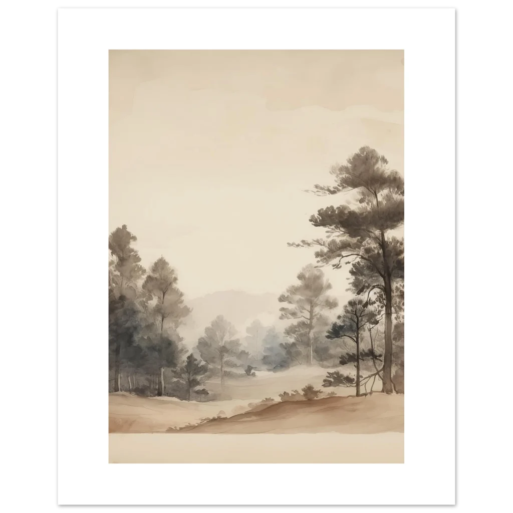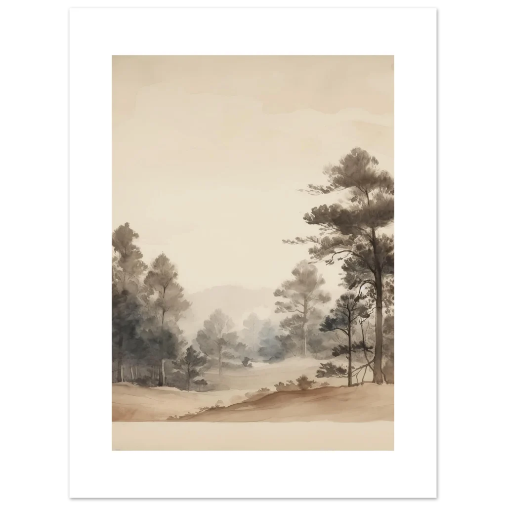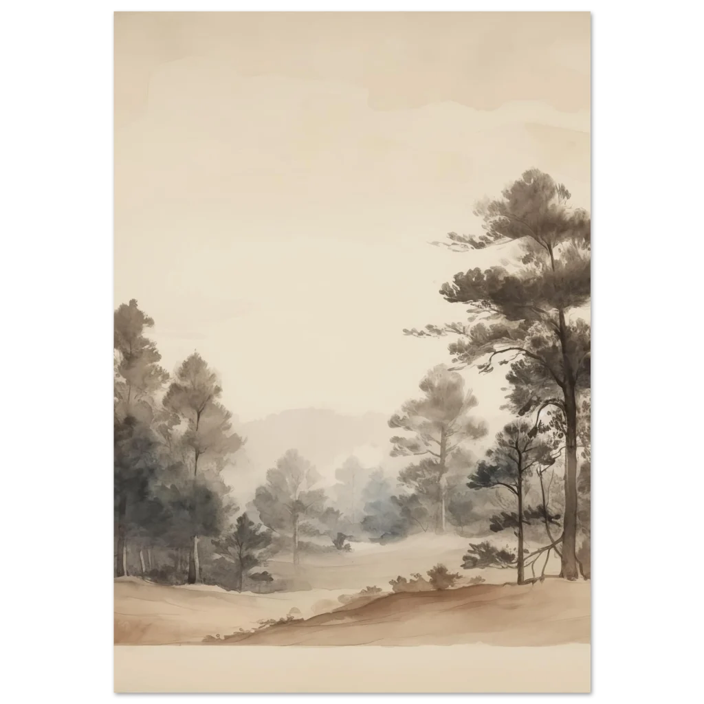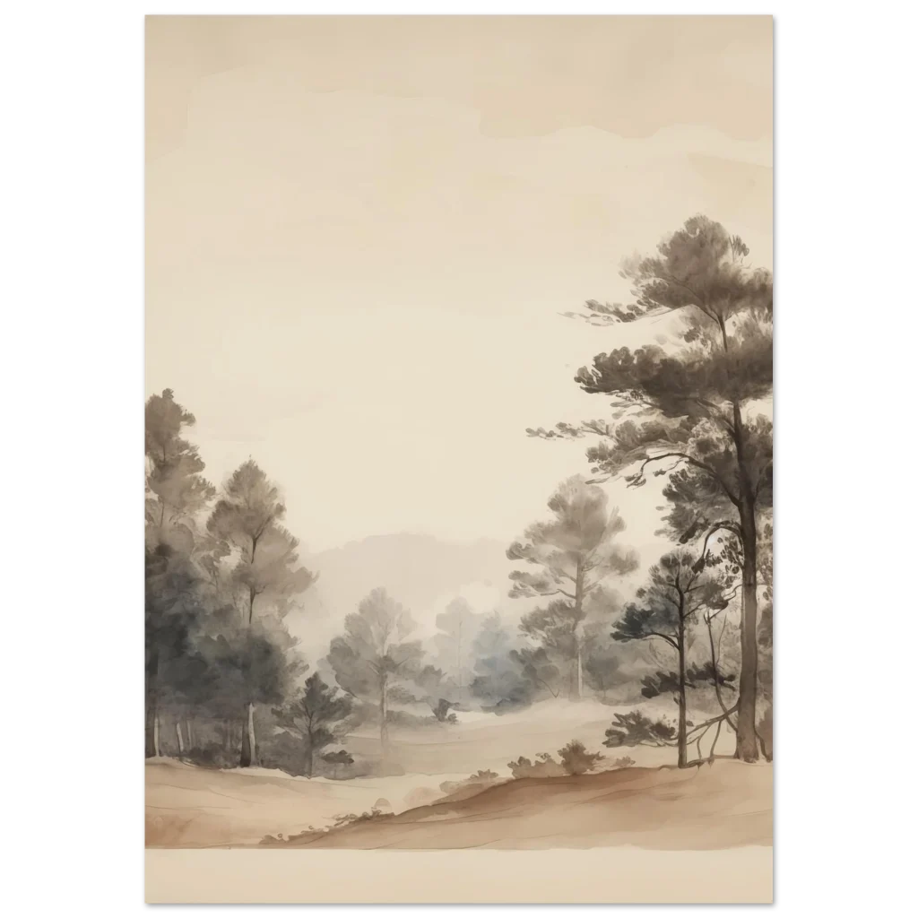 Bring a sense of calm and natural beauty into your home with our Zen Forest Watercolor Poster. This exquisite piece captures the serene depth of a misty forest in delicate watercolor washes, evoking a peaceful, contemplative mood. The subtle blend of earthy tones and soft greys creates an inviting atmosphere, perfect for any space seeking a touch of tranquility.