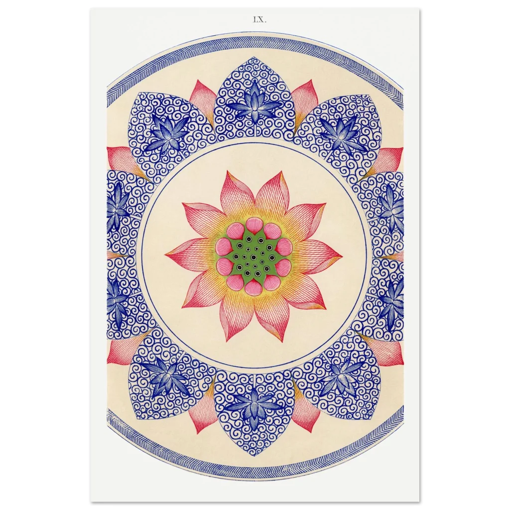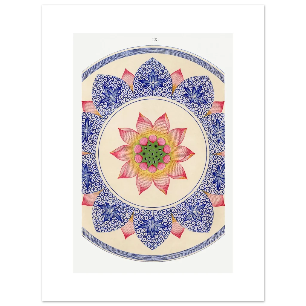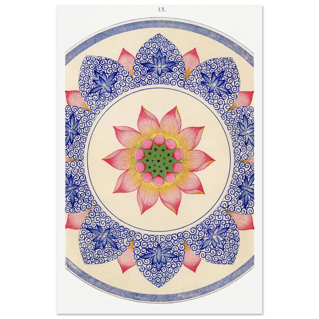Zen Lotus Blossom Premium Matte Paper Poster – Vibrant Chinoiserie Art for Your Space, Available in Multiple Sizes