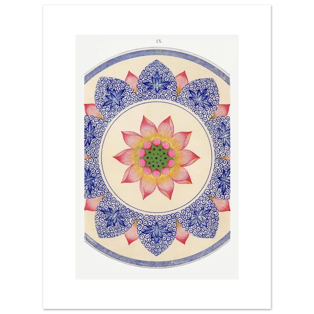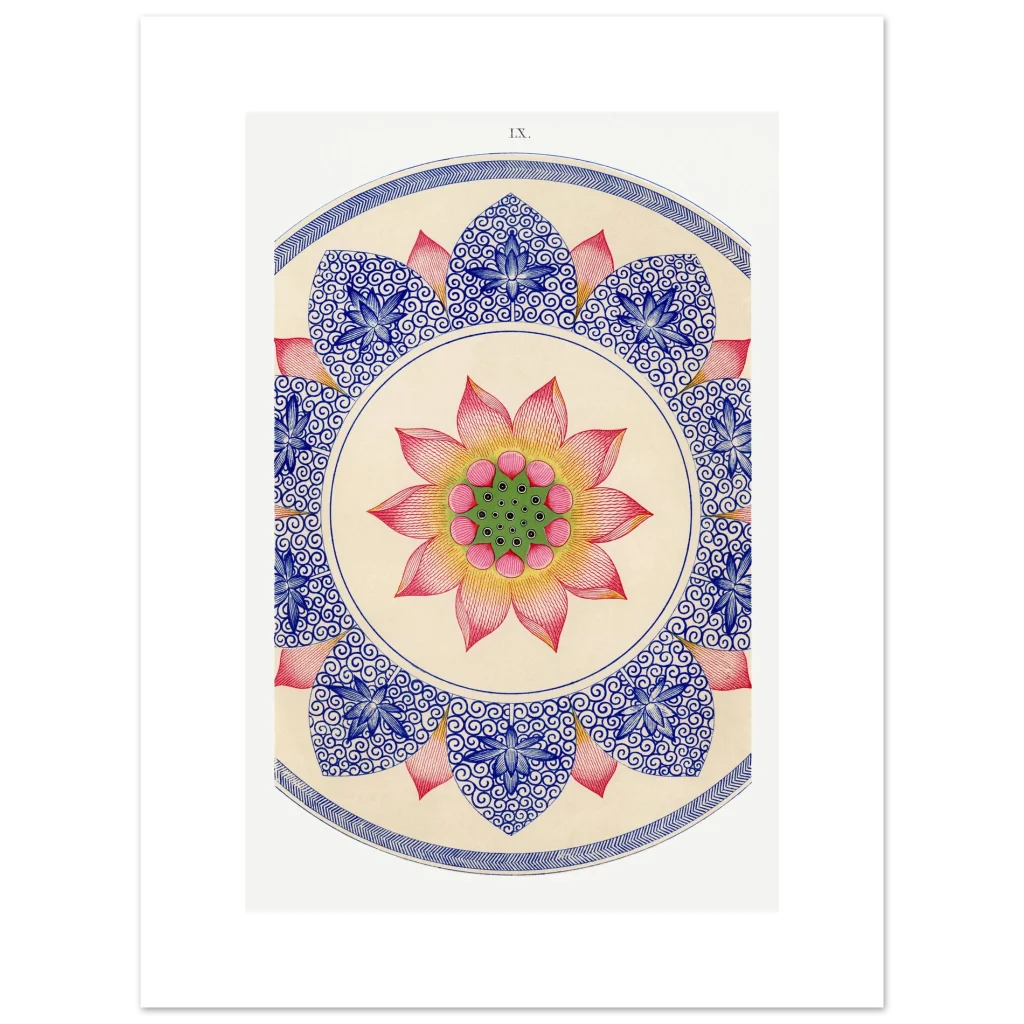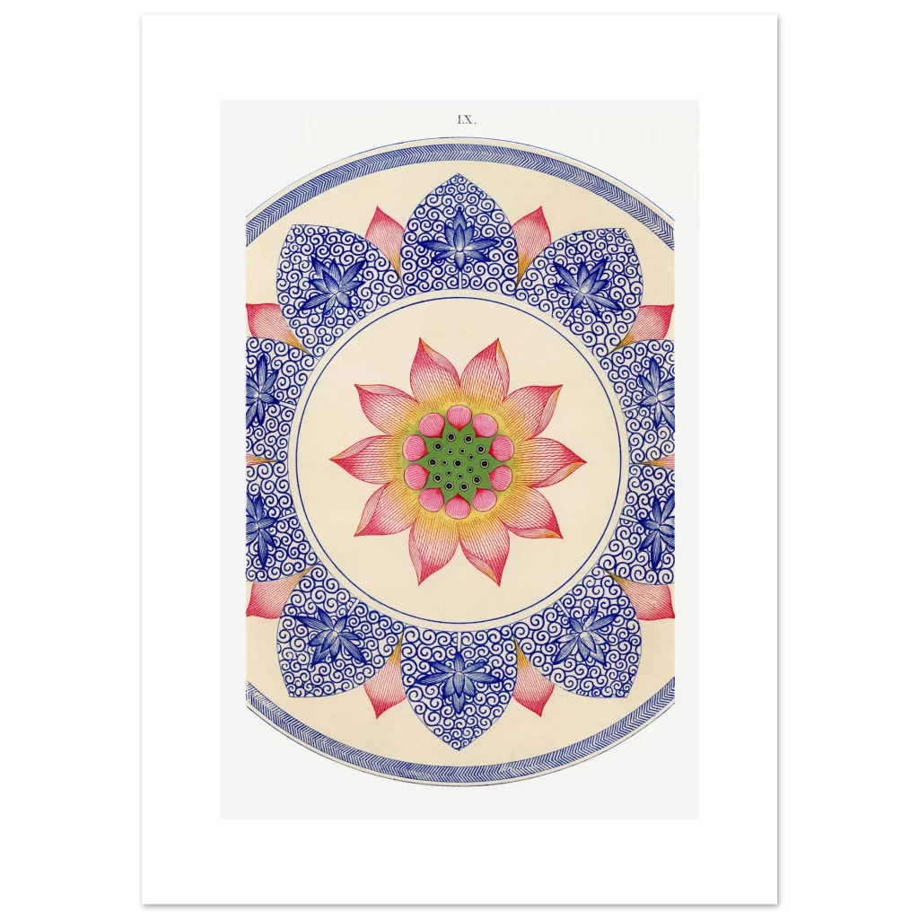 Zen Lotus Blossom Premium Matte Paper Poster – Vibrant Chinoiserie Art for Your Space, Available in Multiple Sizes