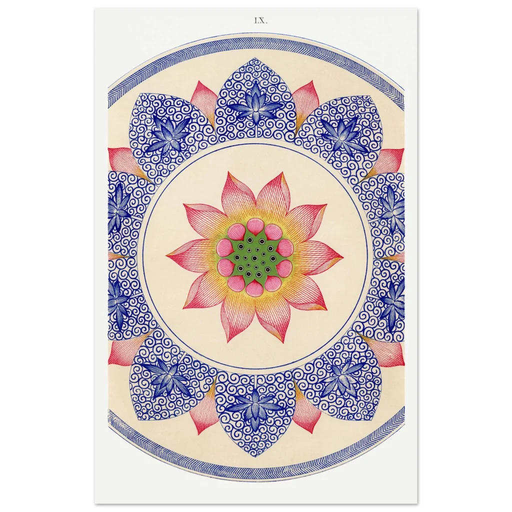 Bring a touch of serene elegance and vibrant artistry into your home with our Zen Lotus Blossom poster. Inspired by classic Chinoiserie patterns, this piece features a captivating central lotus in soft pinks and greens, framed by intricate blue scrollwork and delicate floral motifs. It’s a harmonious blend of traditional beauty and calming aesthetics, perfect for creating a focal point in any room.