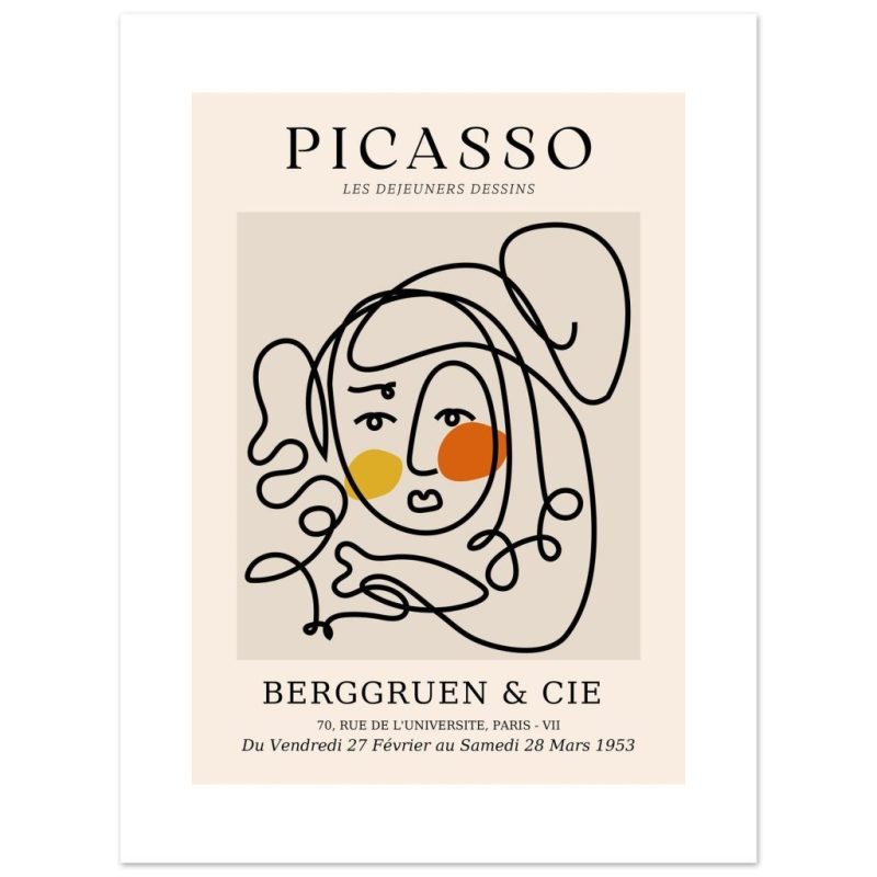 Abstract Picasso-Inspired Face Line Art Poster – Modern Minimalist Wall Decor in Your Choice of Size
