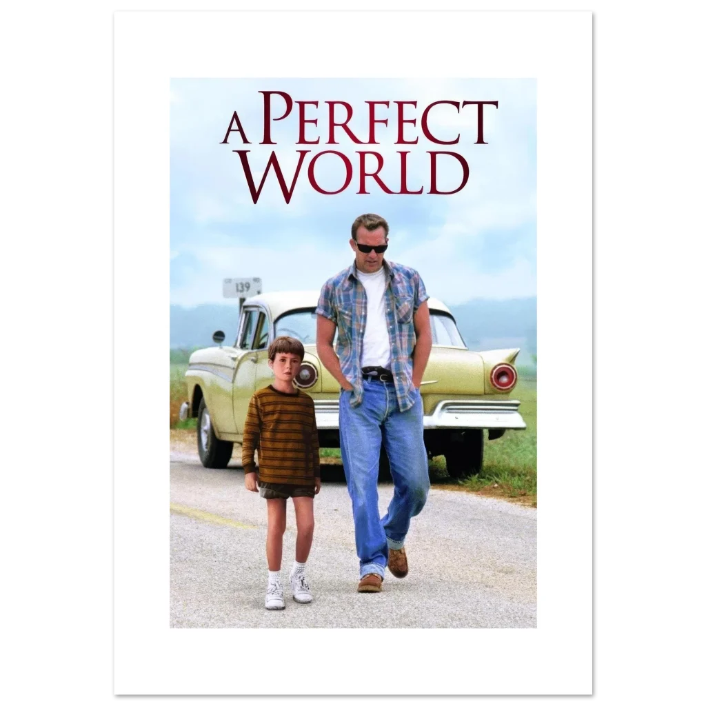 Capture the nostalgic essence of a dramatic road trip with our “A Perfect World” movie poster. This striking design, featuring the film’s iconic duo against a classic car, brings a touch of cinematic history and poignant storytelling to any space. It’s more than just a poster; it’s a conversation starter, a piece of art that evokes wanderlust and timeless narratives.