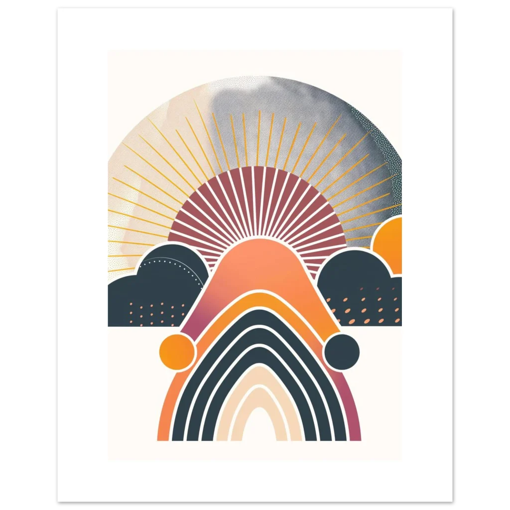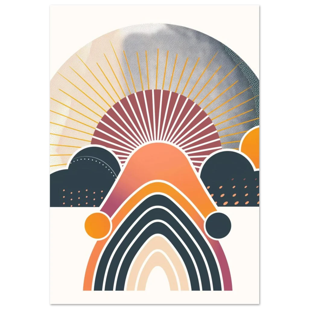 Abstract Boho Sunset & Rainbow Art Print – Premium Matte Paper Poster in Multiple Sizes