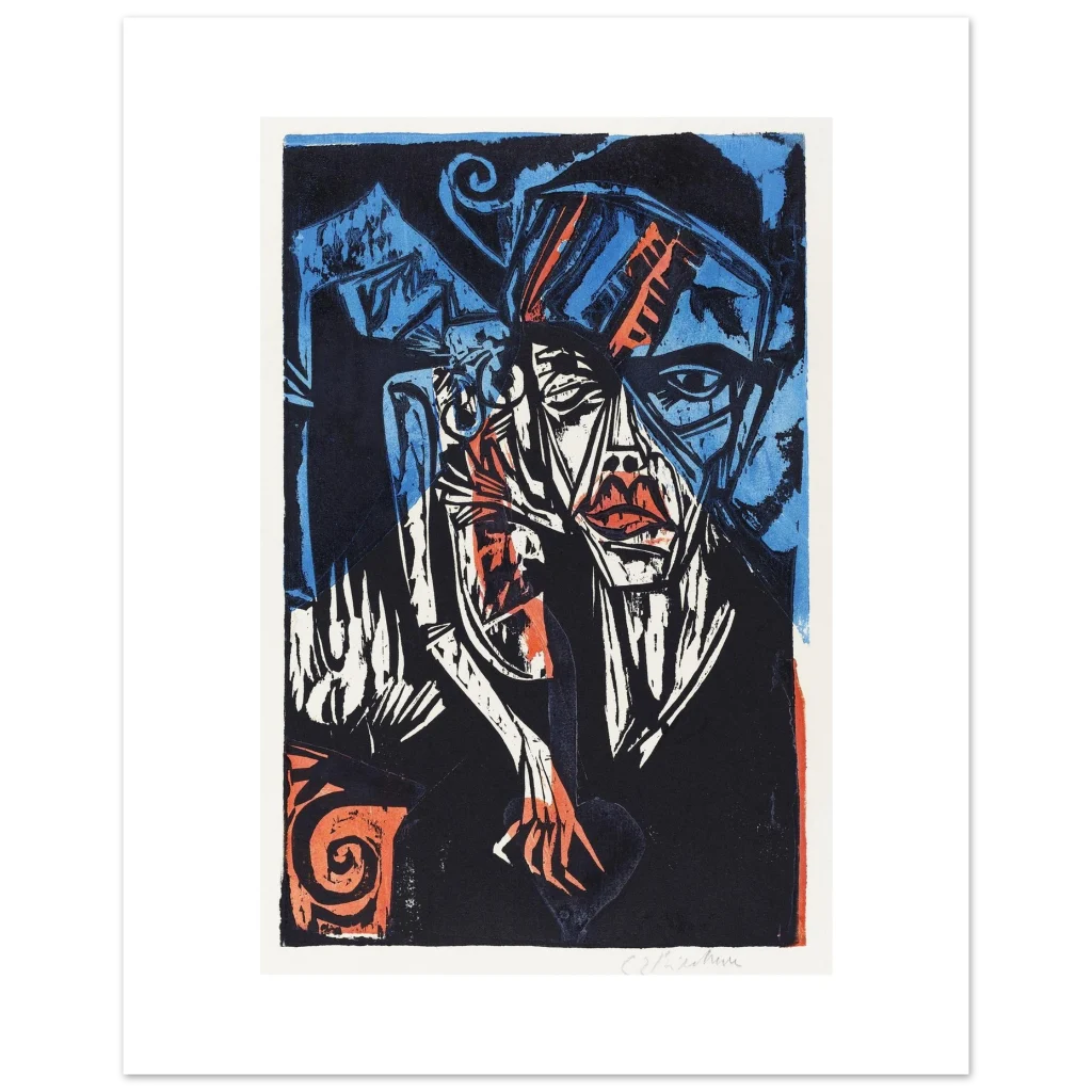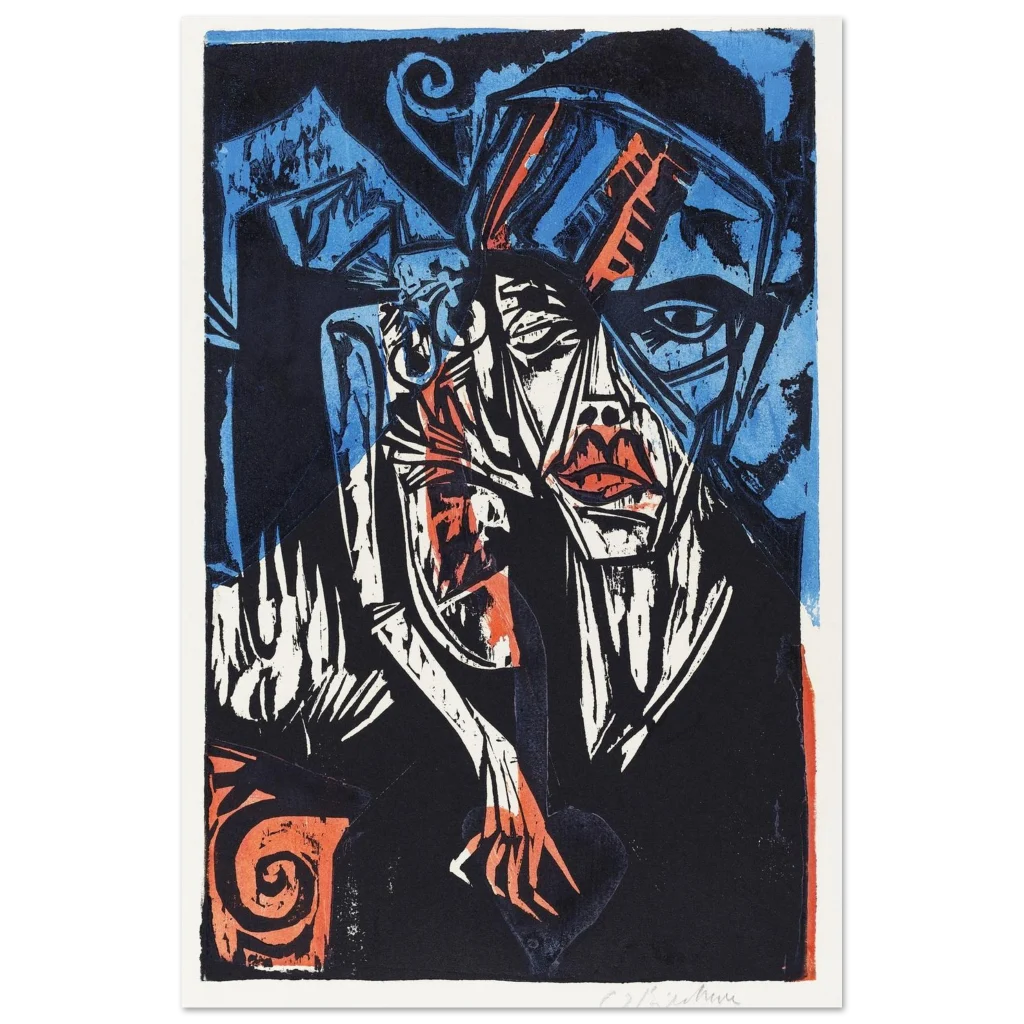 Immerse yourself in the striking energy of this abstract expressionist portrait. With its intense blue, vibrant orange, and deep black palette, this piece commands attention, offering a modern twist on classic emotional depth. Perfect for making a bold statement, it brings a captivating narrative and raw artistic power to any room, inviting contemplation and conversation.