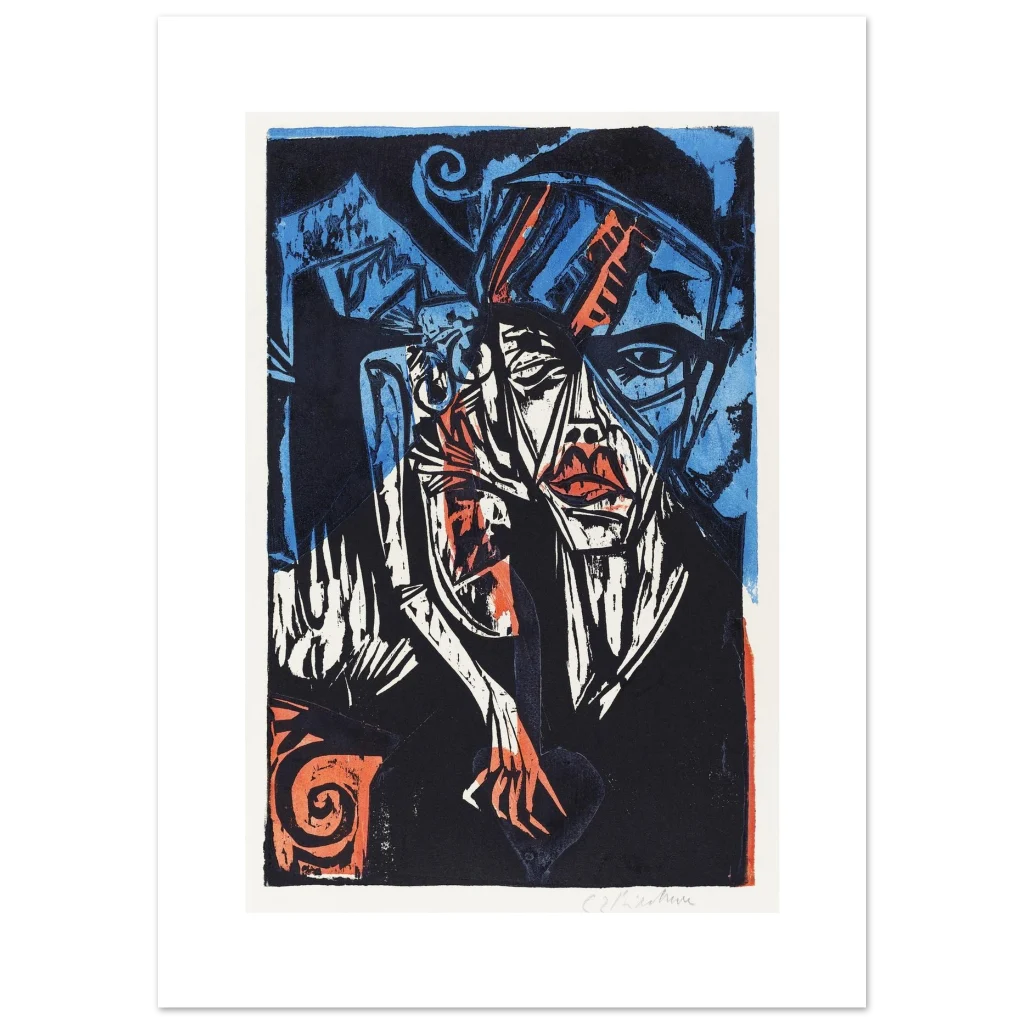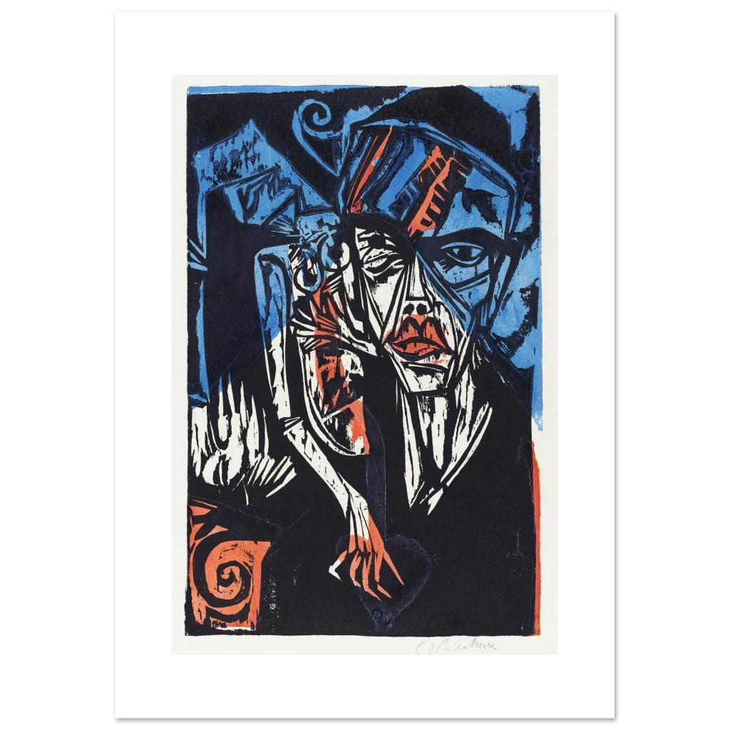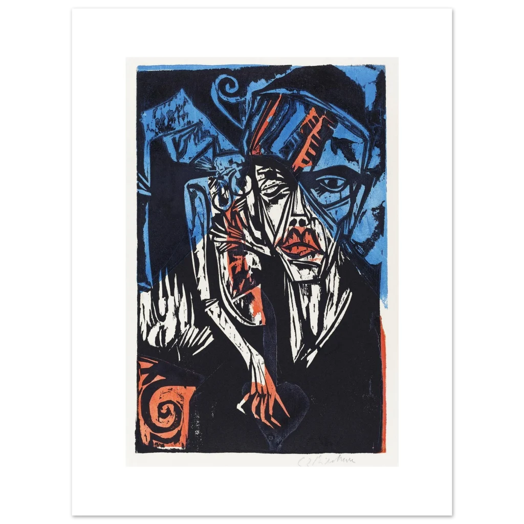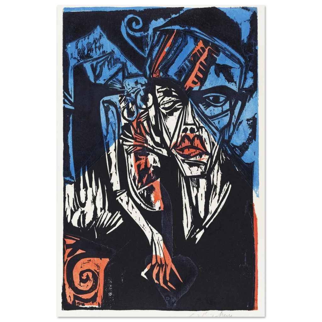 Abstract Expressionist Portrait Poster – Bold Blue & Orange Art Print on Premium Matte Paper