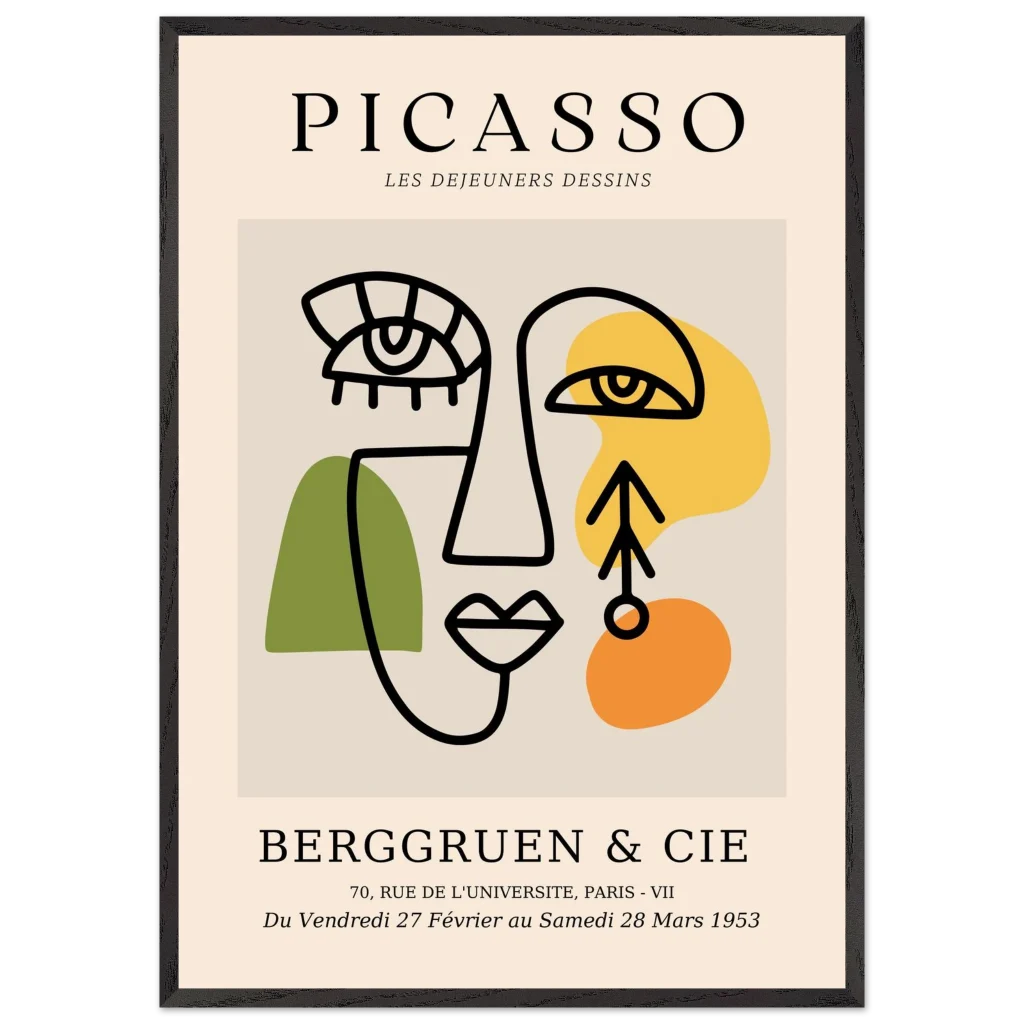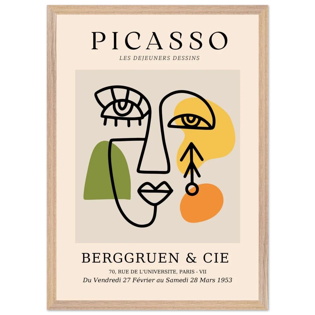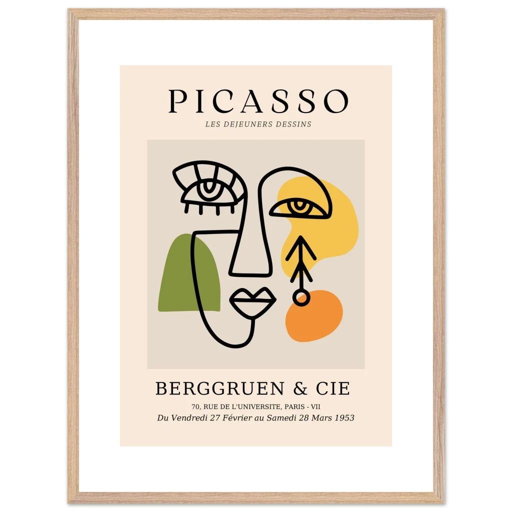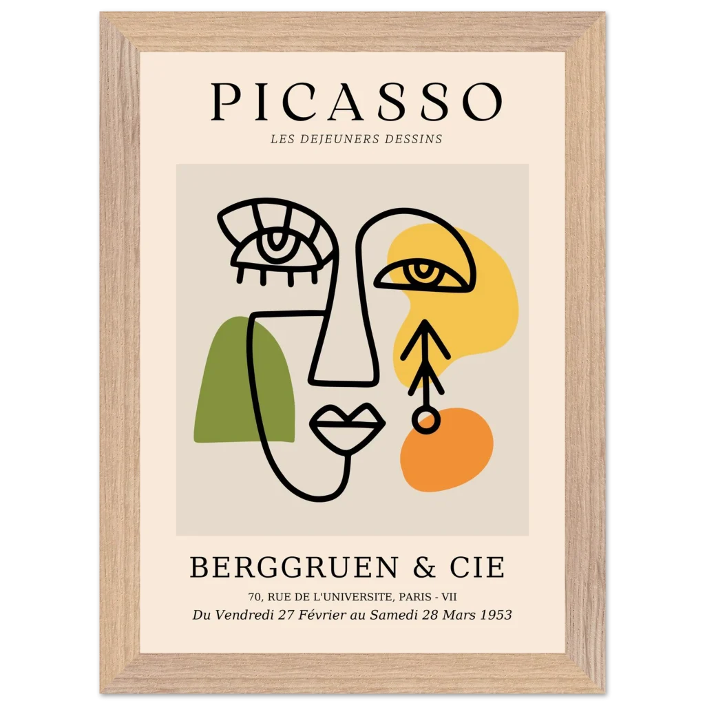 Abstract Faces Poster – Modern Cubist Line Art Wall Decor – Premium Wooden Framed Poster with Matte Paper