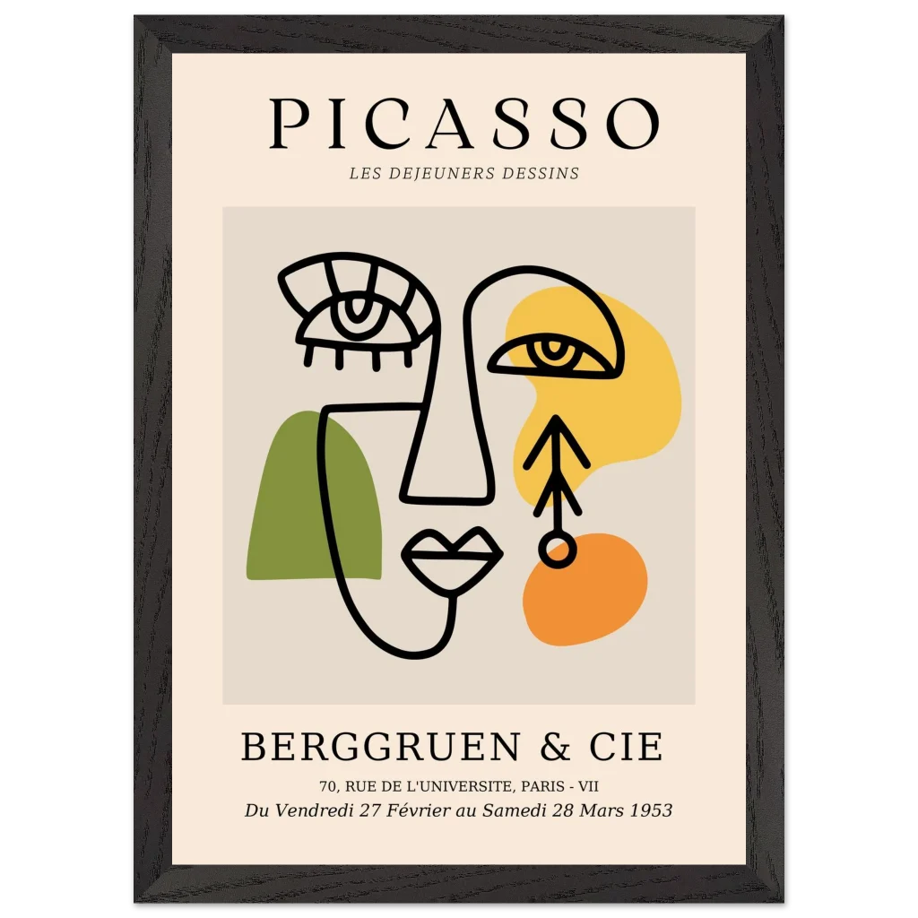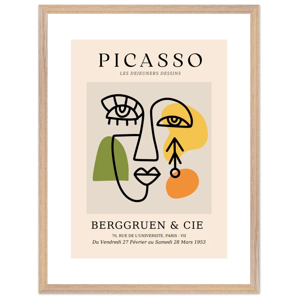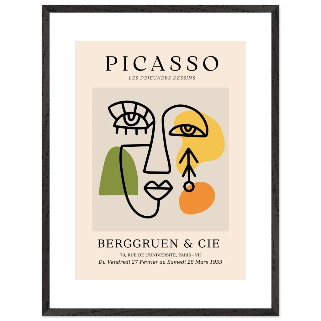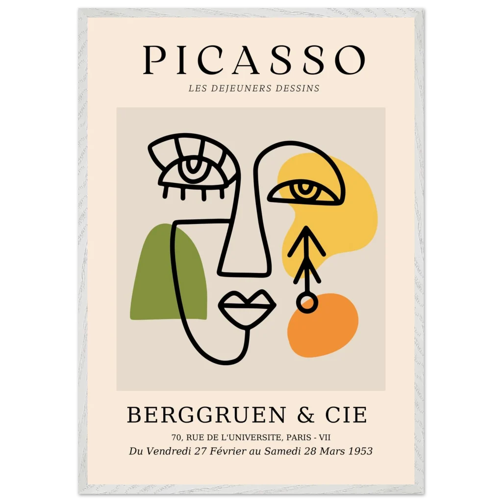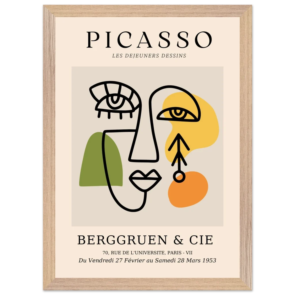 Abstract Faces Poster – Modern Cubist Line Art Wall Decor – Premium Wooden Framed Poster with Matte Paper