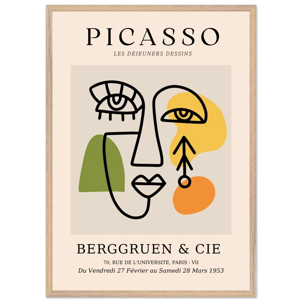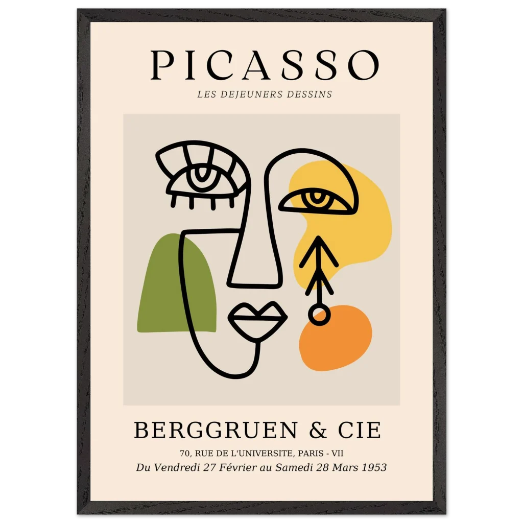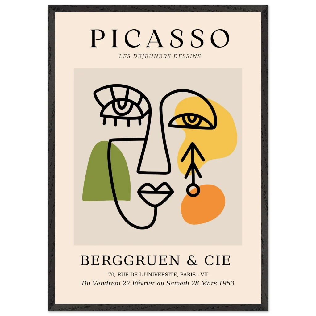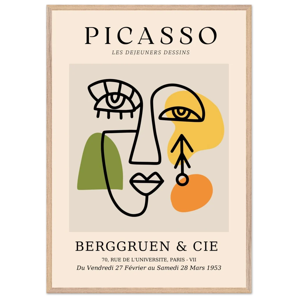 Abstract Faces Poster – Modern Cubist Line Art Wall Decor – Premium Wooden Framed Poster with Matte Paper