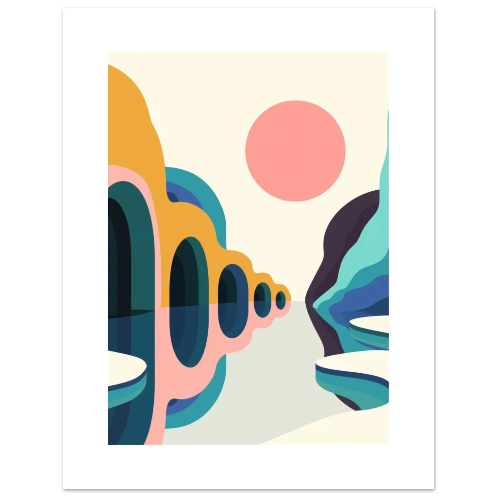 Abstract Geometric Desert Oasis Poster – Premium Matte Paper Print in Multiple Sizes