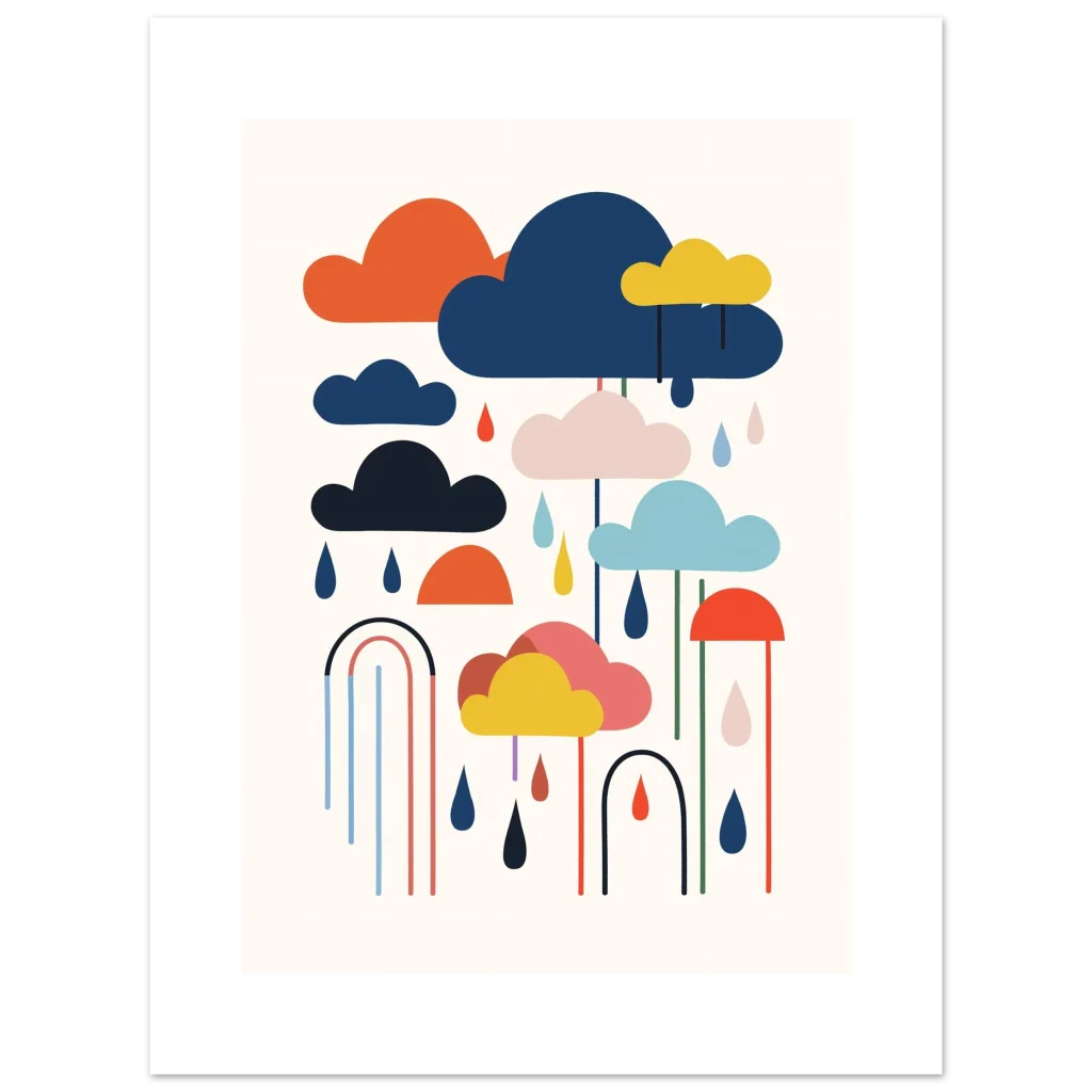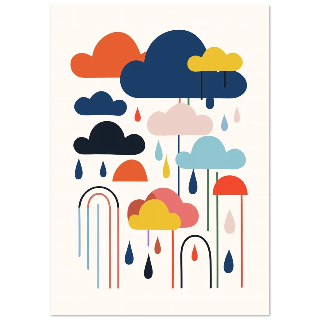 Abstract Mid-Century Modern Clouds & Raindrops Premium Matte Paper Poster