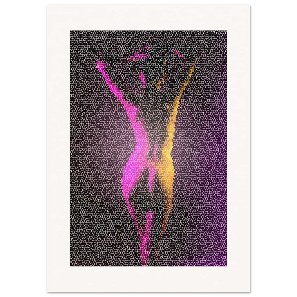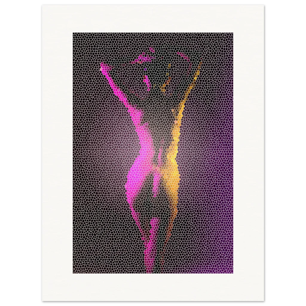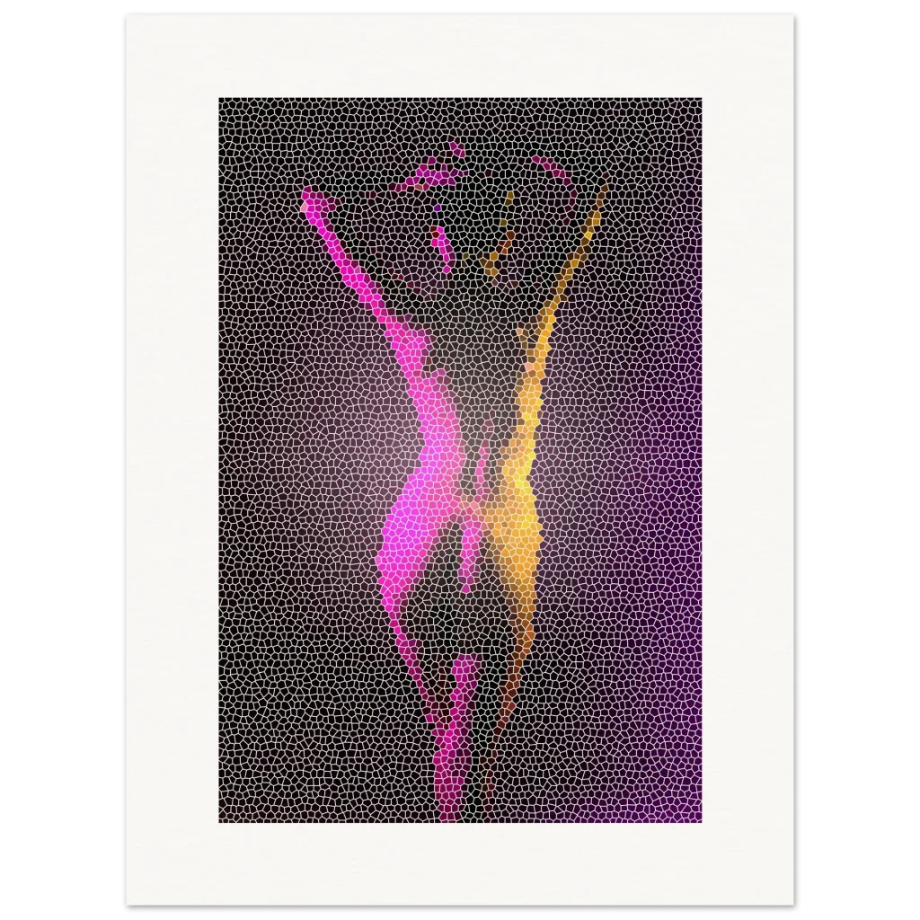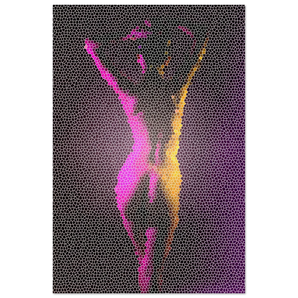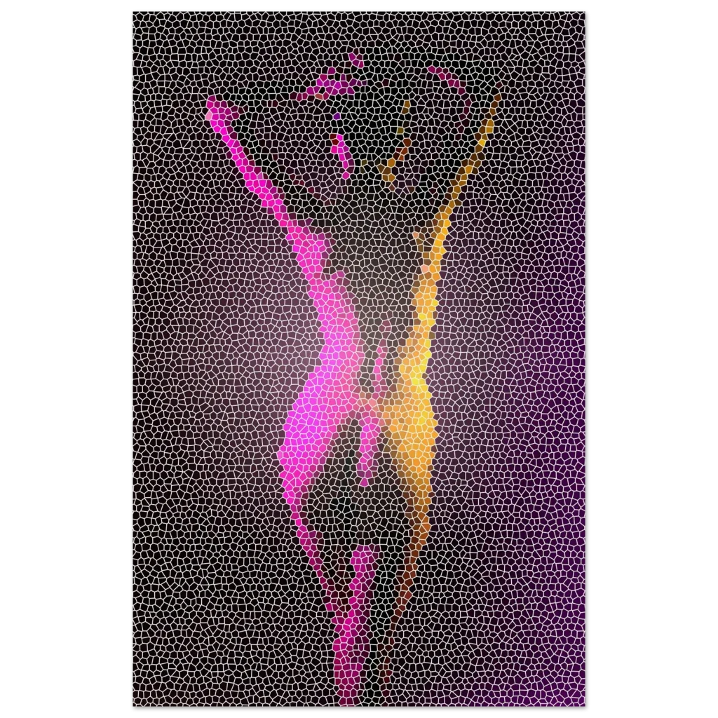 Immerse yourself in the captivating rhythm of our Abstract Mosaic Dance Art Print. This museum-quality poster captures the dynamic energy of movement through a vibrant mosaic, reminiscent of stained glass catching the light. The striking interplay of fuchsia, gold, and deep purple hues against a dark background creates a visually stunning piece that brings a modern, artistic flair to any space. It’s an ode to the beauty of expression, perfect for those who appreciate contemporary art and bold statements.