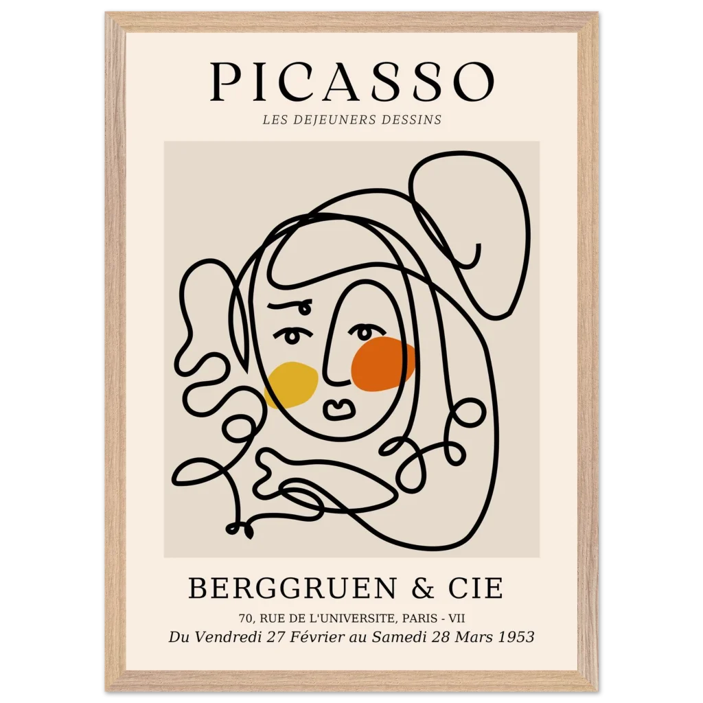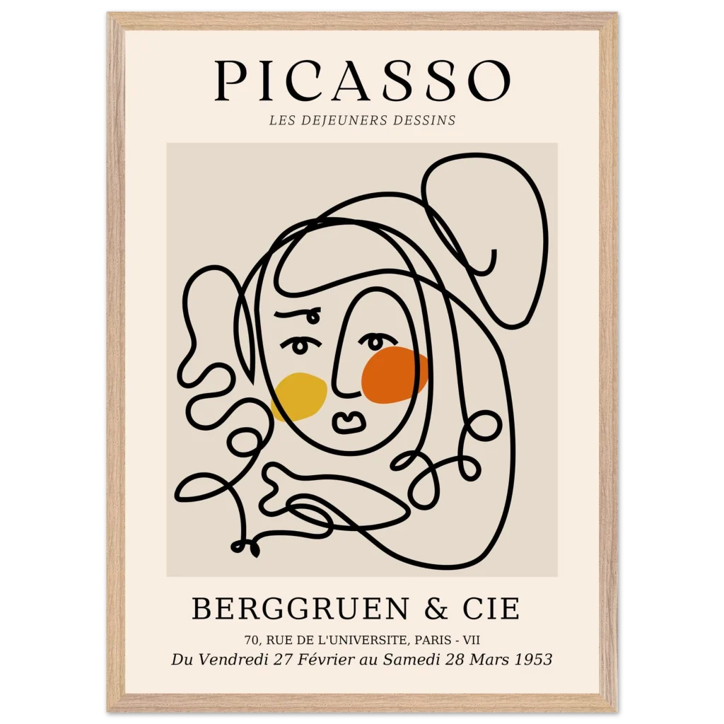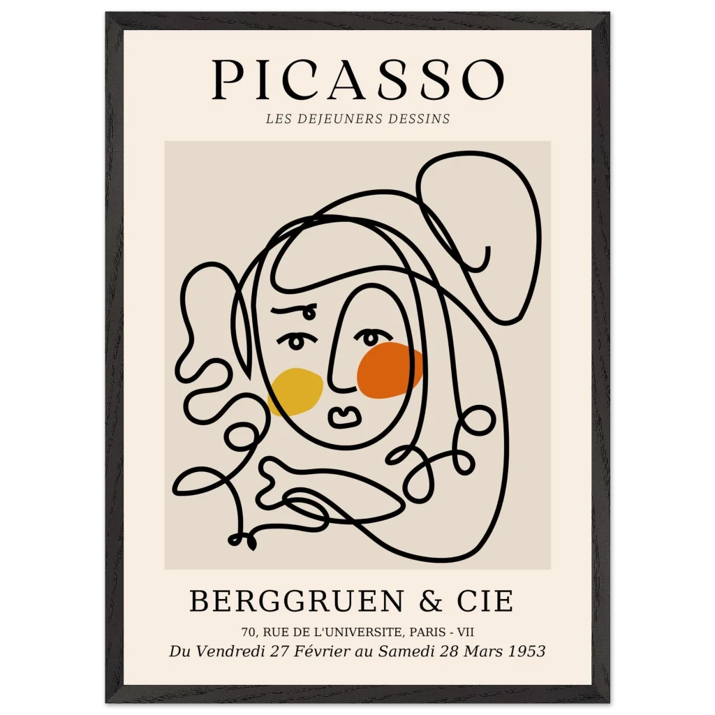 Bring a touch of timeless elegance and mid-century modern flair to your living space with our Abstract Picasso Face Line Art Print. Inspired by the master’s iconic style, this minimalist design features flowing lines and warm, contrasting abstract shapes, perfect for art lovers seeking a sophisticated yet playful aesthetic. This premium framed poster captures the essence of artistic freedom, transforming any wall into a gallery-worthy display.