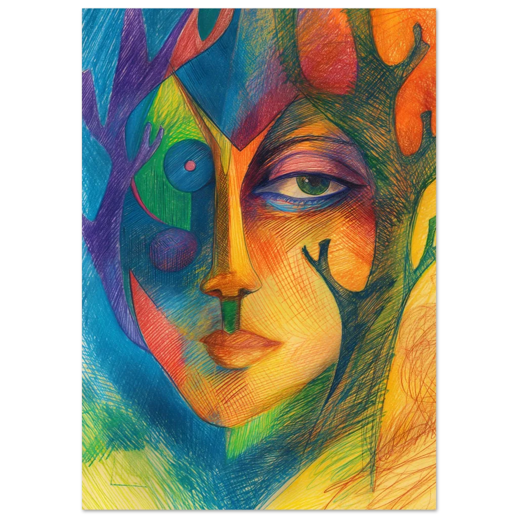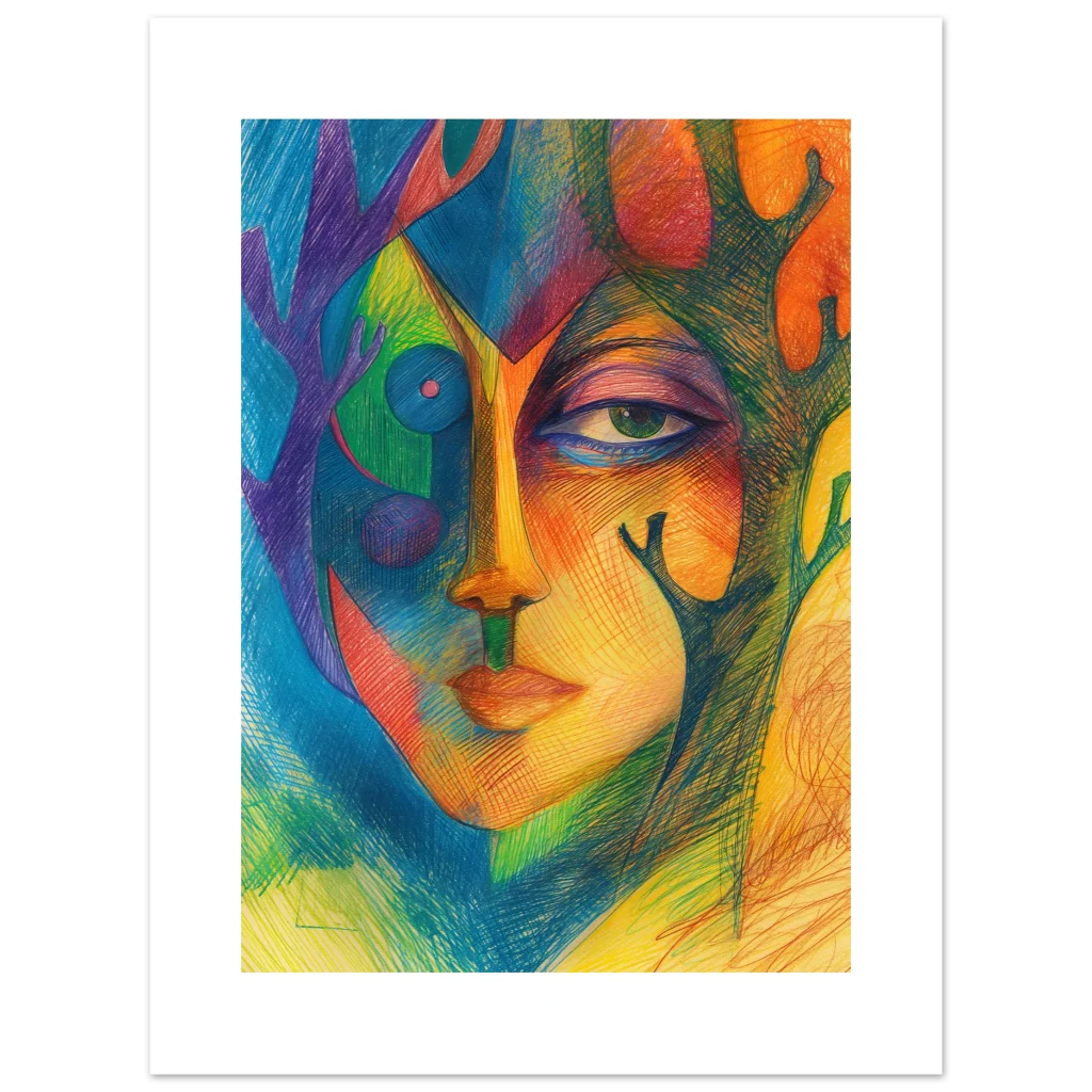 Abstract Spirit Forest Face Premium Matte Paper Poster – Vibrant Mystic Art Print for Your Walls