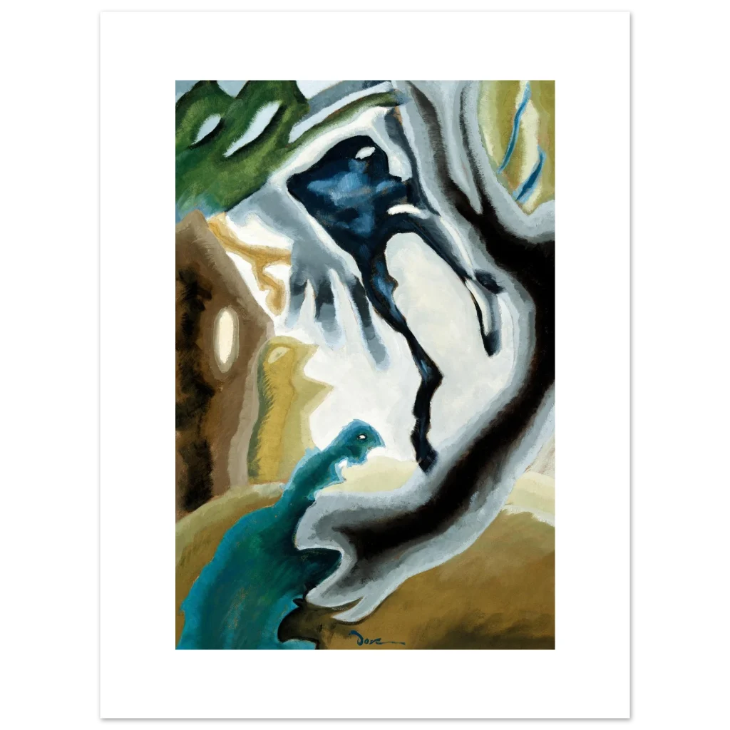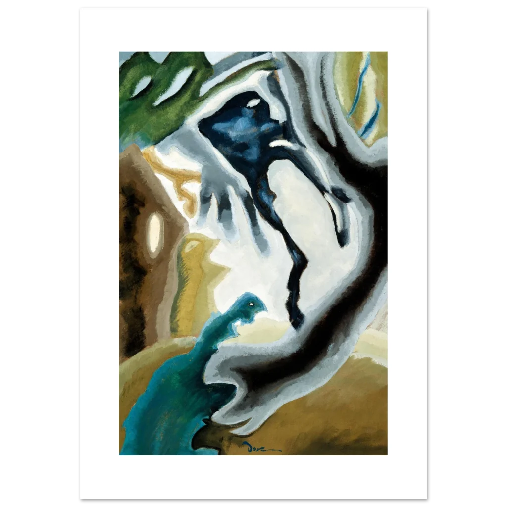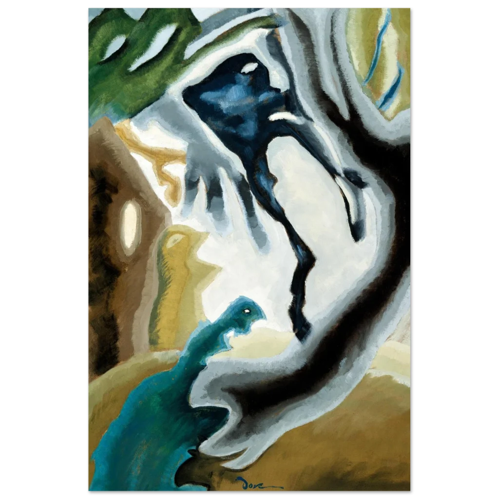 Step into a world where abstract forms coalesce into a dreamlike forest, featuring deep blues, earthy greens, and contrasting whites. This captivating artwork, reminiscent of early 20th-century American modernism, brings a sophisticated yet organic touch to any space, inviting contemplation and calm.