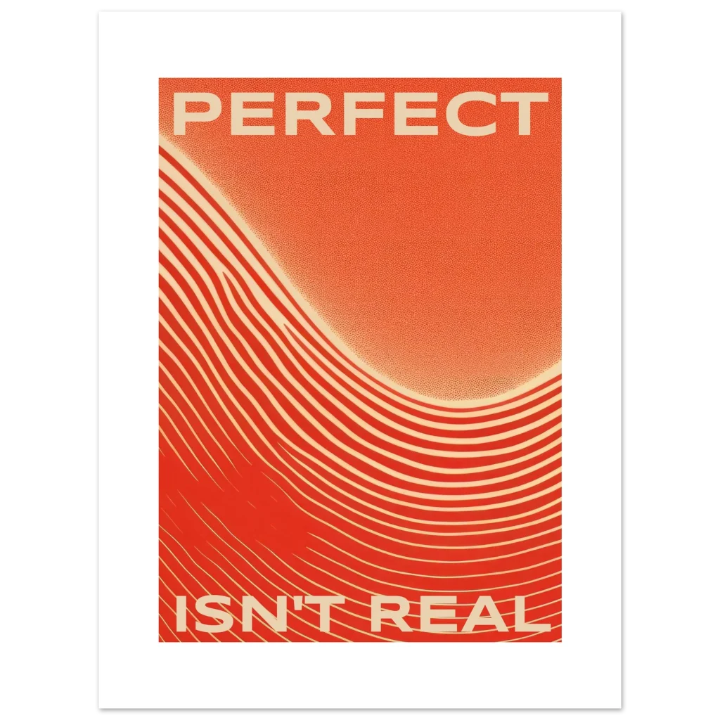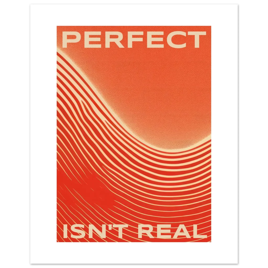 Abstract Wave ‘Perfect Isn’t Real’ Poster – Vibrant Coral & Cream Art Print in Various Sizes