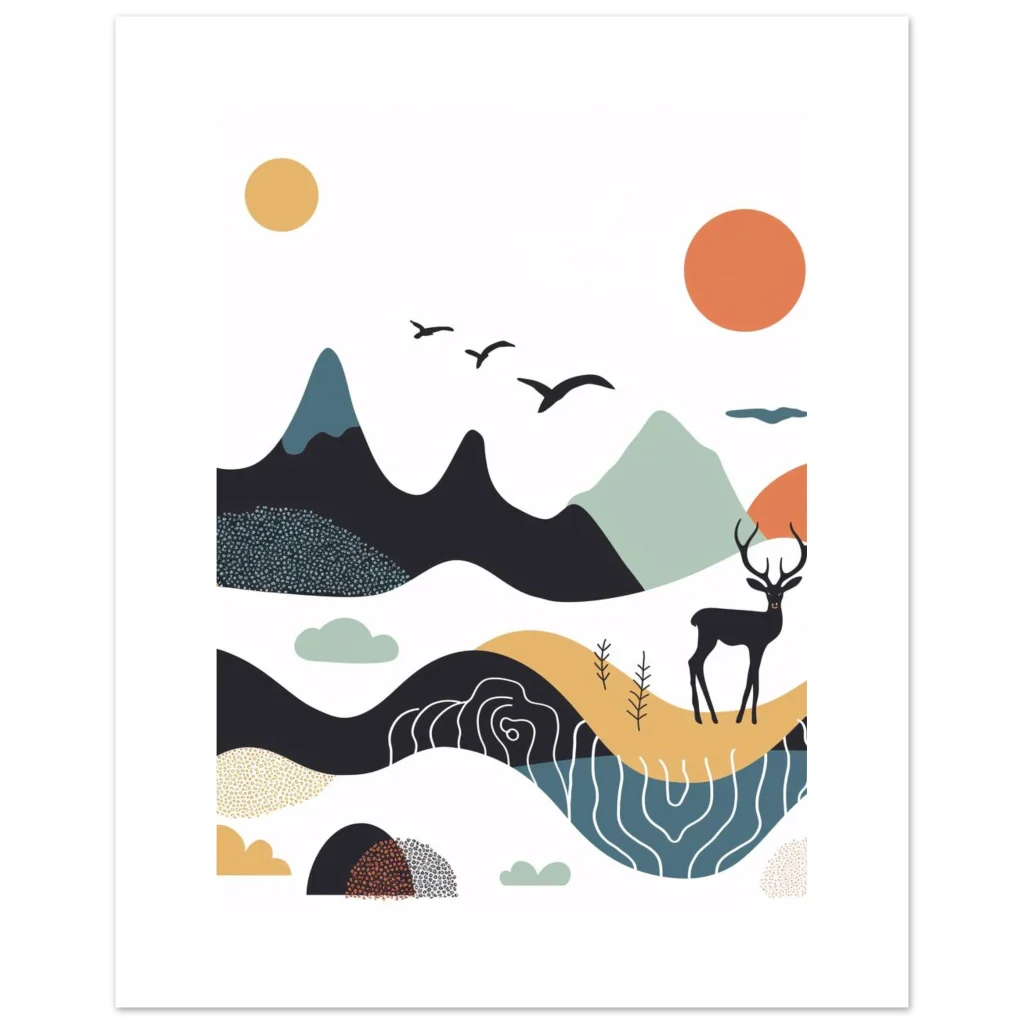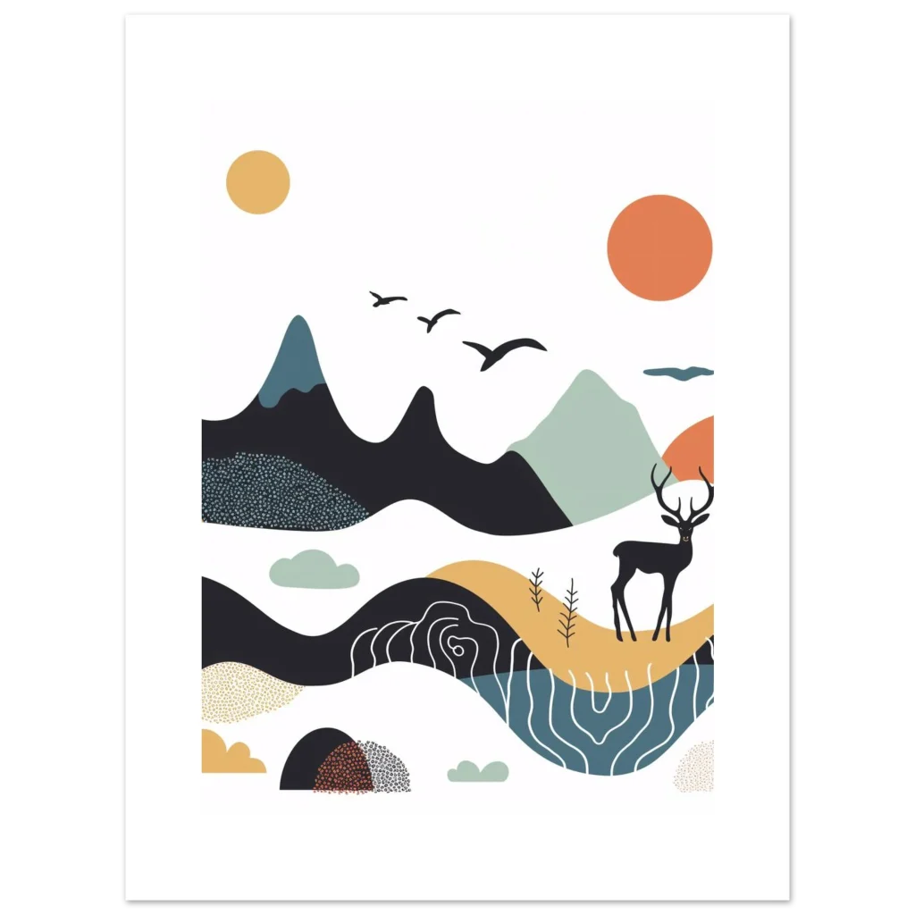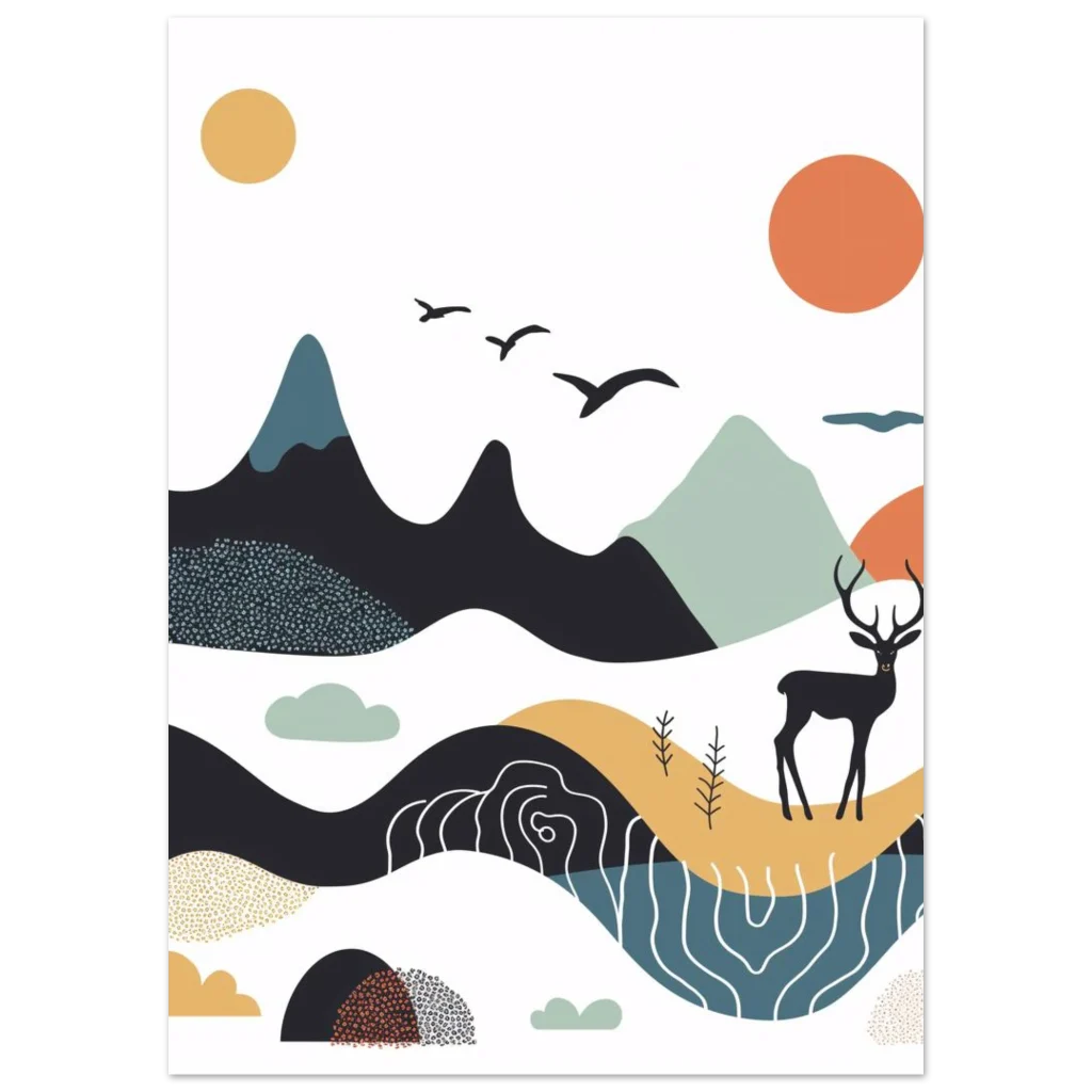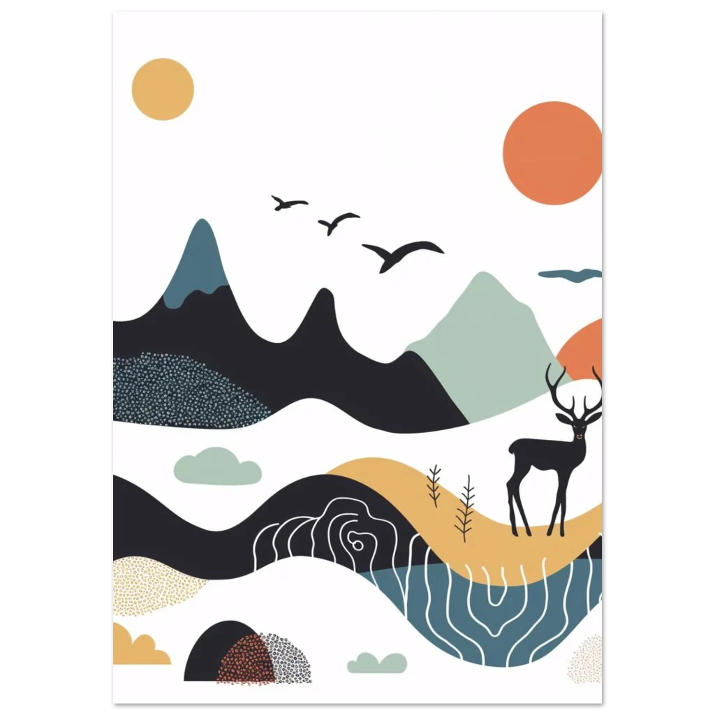 Abstract Woodland Deer Landscape Premium Matte Poster – Boho Nature Wall Art in Various Sizes