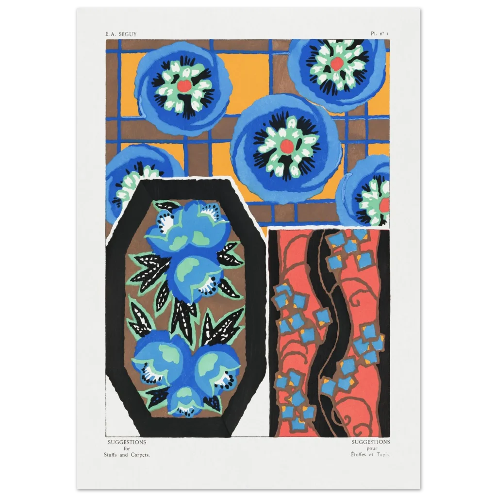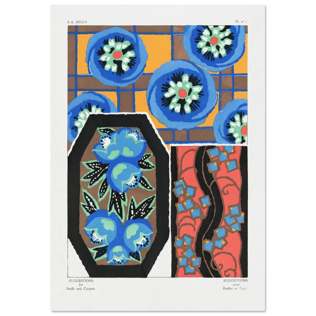 Immerse your space in the vibrant charm of Art Deco with our stunning botanical poster. This exquisite piece captures a medley of vivid blues, energetic oranges, and earthy browns, creating a striking visual symphony that commands attention. Inspired by the intricate patterns and bold color blocking of the early 20th century, this poster brings a touch of vintage elegance and contemporary flair to any room, perfect for those who appreciate unique artistic statements.