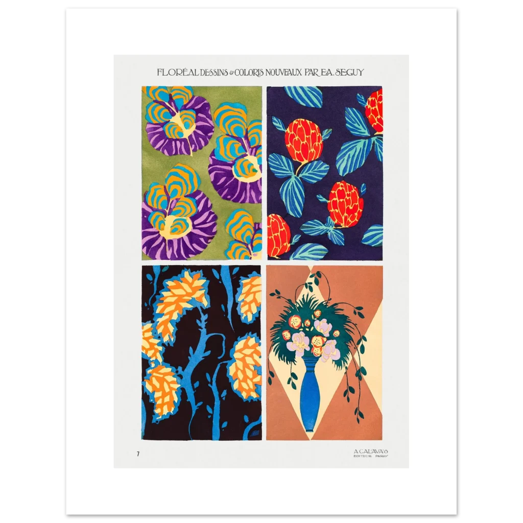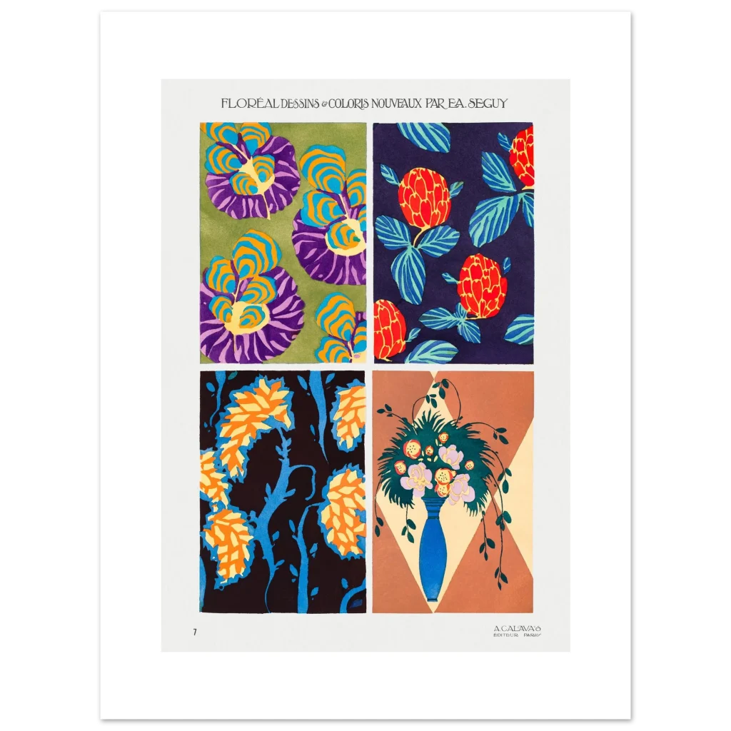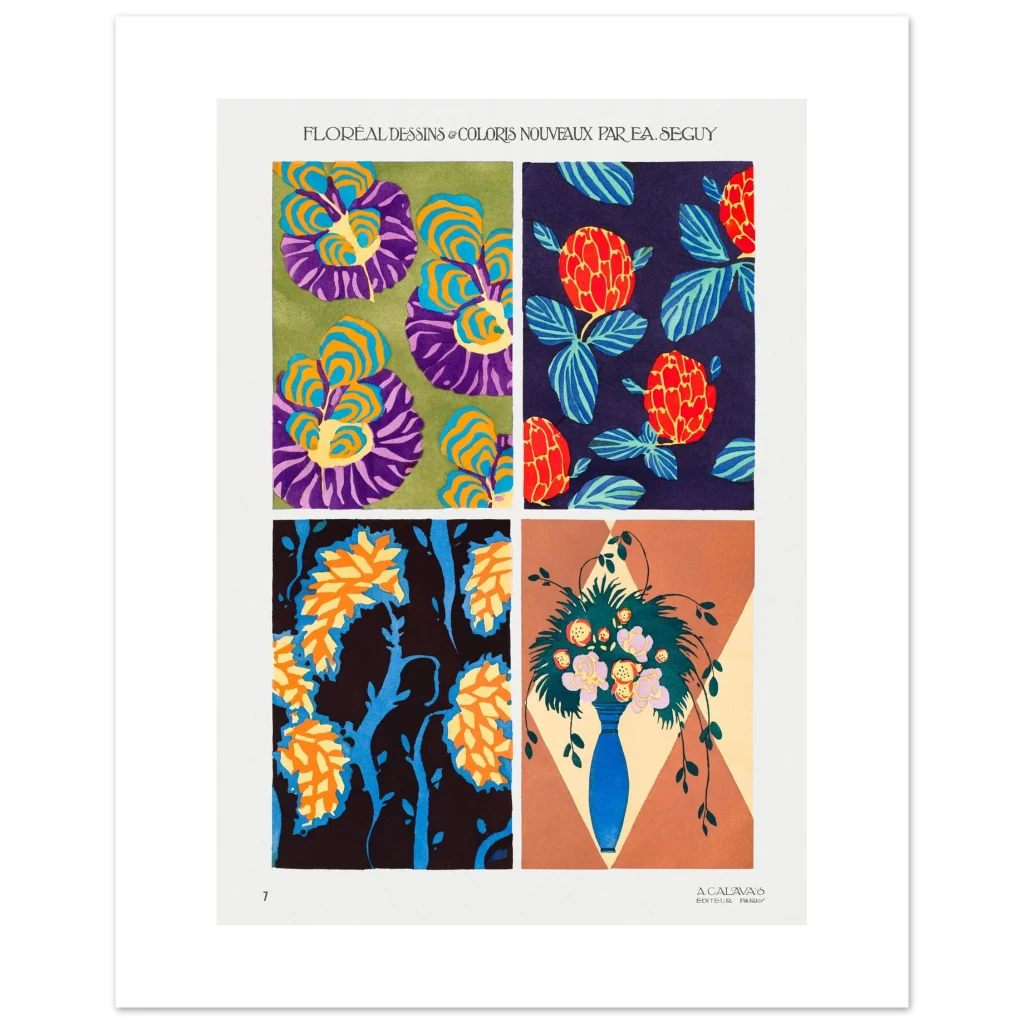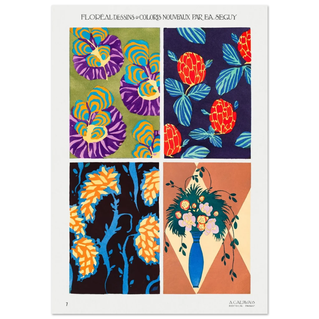 Immerse yourself in the timeless elegance of the Art Deco era with our exclusive poster collection. Featuring the vibrant, stylized floral and botanical designs of E.A. Seguy, this poster brings a touch of vintage sophistication and rich color to any space. Each motif bursts with life, from intricate patterns in lush purples and oranges to striking compositions of deep reds and blues, offering a captivating focal point for your home or office.
