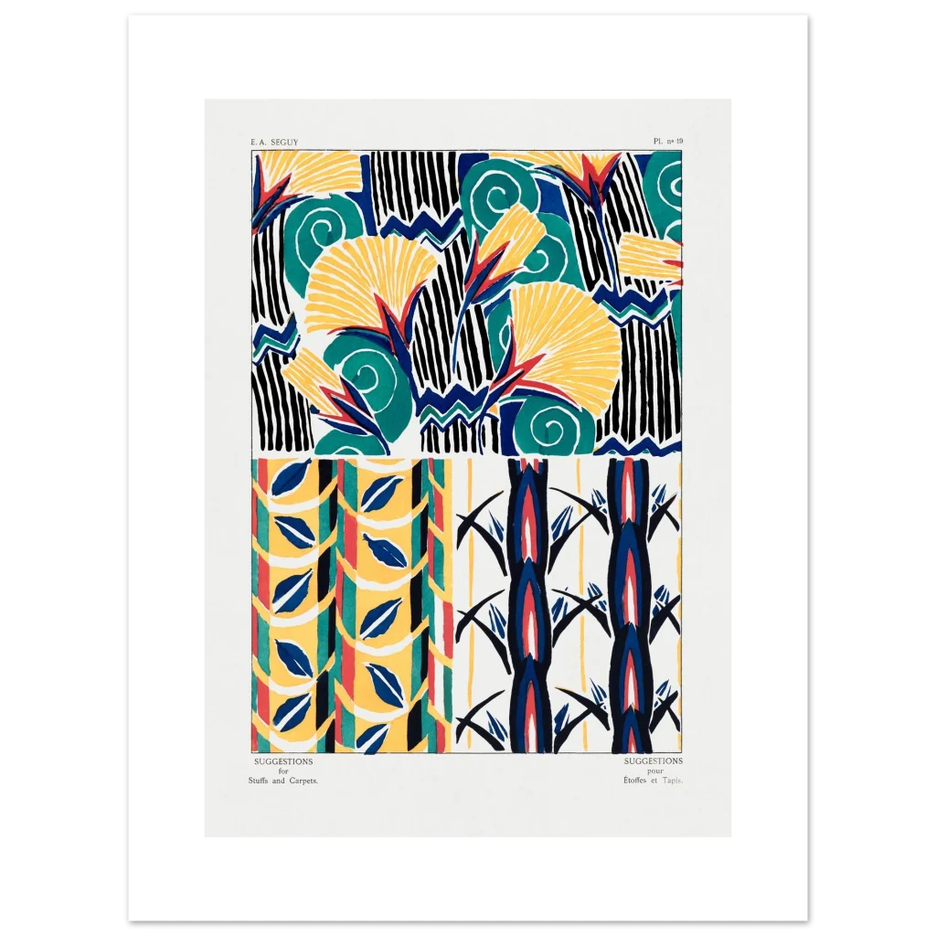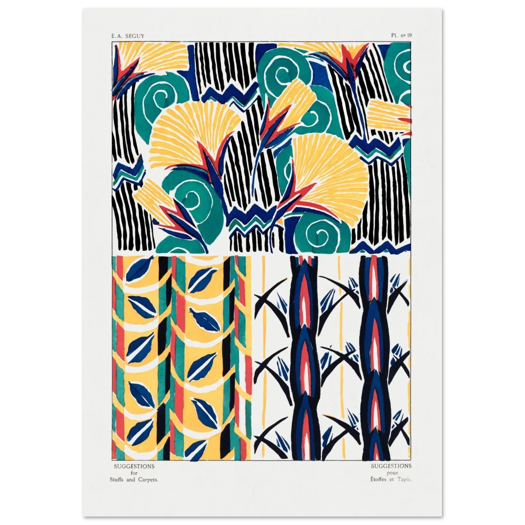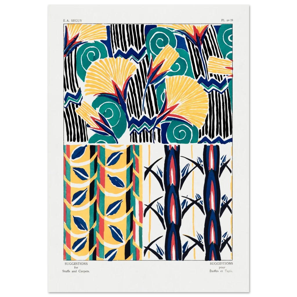 Infuse your space with the vibrant energy of the Roaring Twenties and the lush beauty of the tropics. This stunning Art Deco-inspired botanical print, featuring bold patterns and a captivating palette of deep blues, sunny yellows, emerald greens, and striking reds, brings a touch of vintage elegance and exotic flair to any room. It’s more than just a poster; it’s a statement piece, evoking the sophisticated charm of a bygone era.
