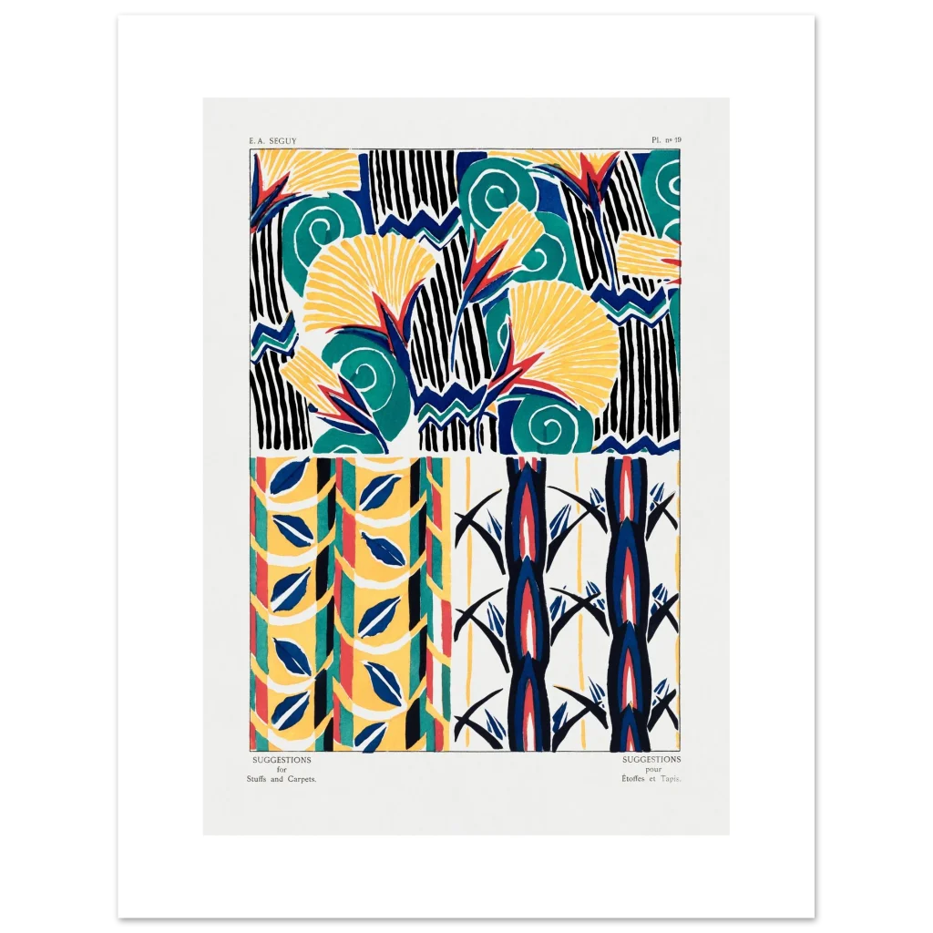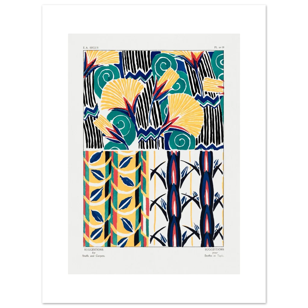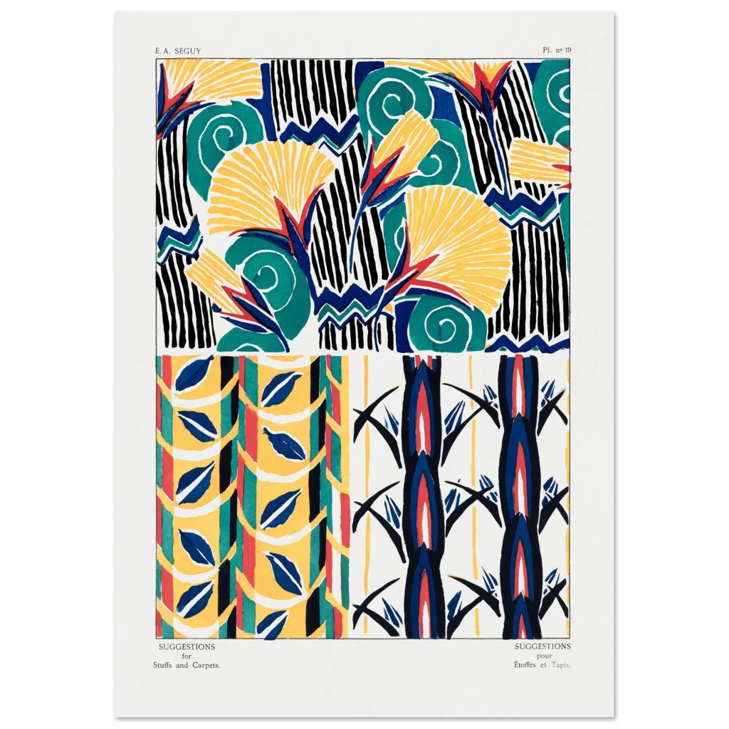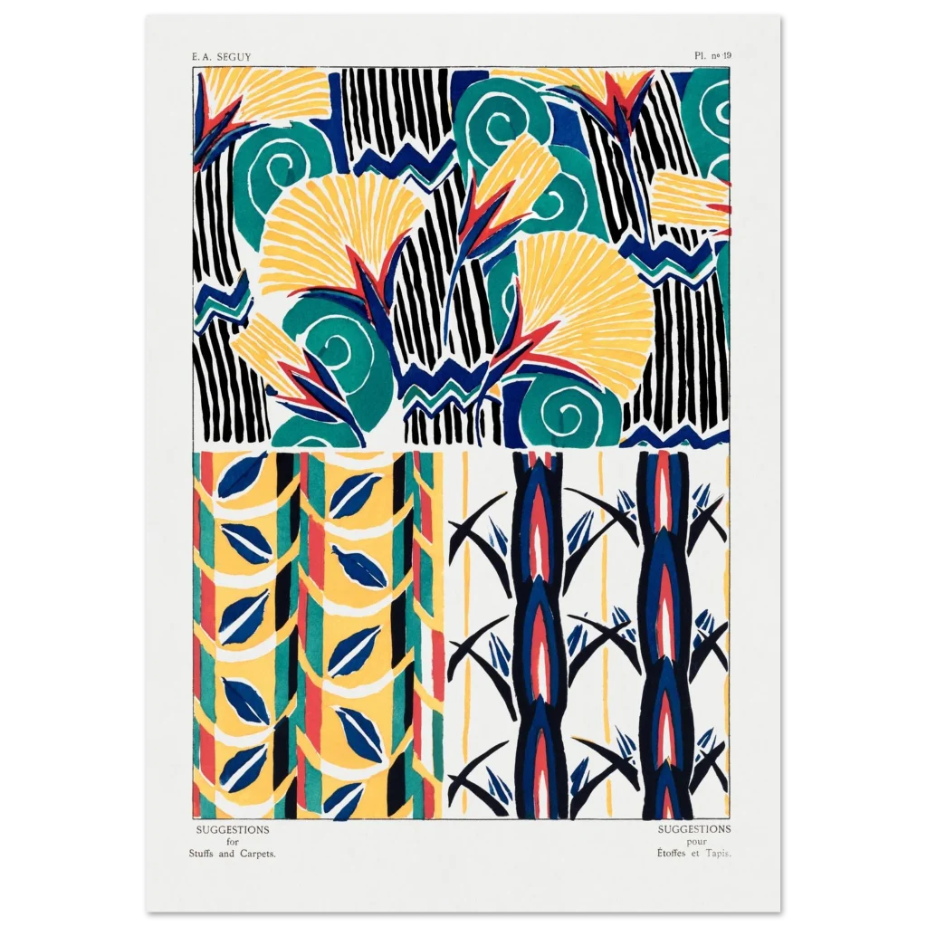 Infuse your space with the vibrant energy of the Roaring Twenties and the lush beauty of the tropics. This stunning Art Deco-inspired botanical print, featuring bold patterns and a captivating palette of deep blues, sunny yellows, emerald greens, and striking reds, brings a touch of vintage elegance and exotic flair to any room. It’s more than just a poster; it’s a statement piece, evoking the sophisticated charm of a bygone era.