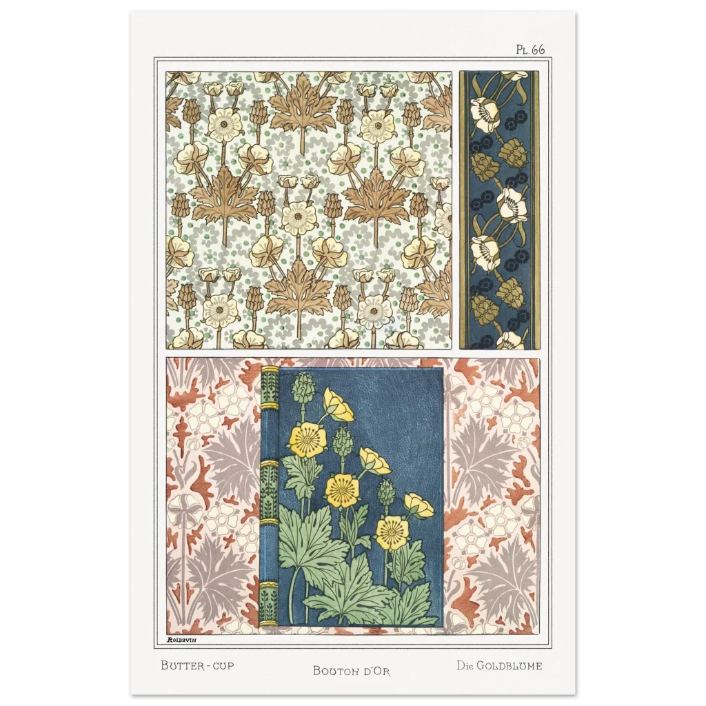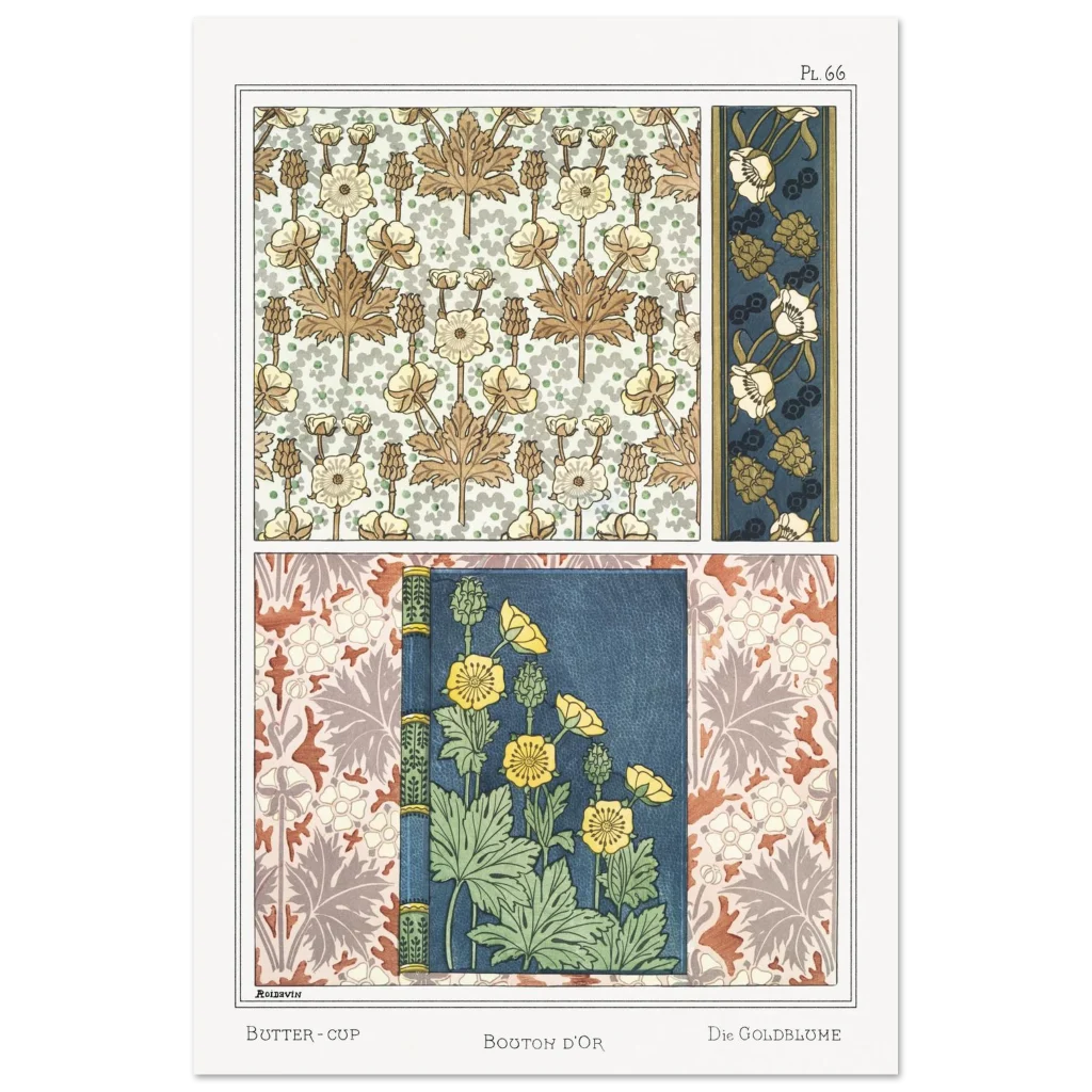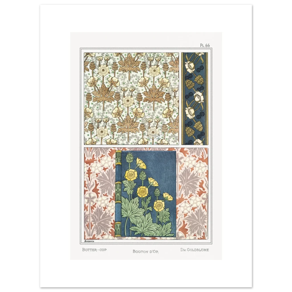 Art Nouveau Buttercup Florals Premium Matte Paper Poster – Vintage Botanical Wall Art