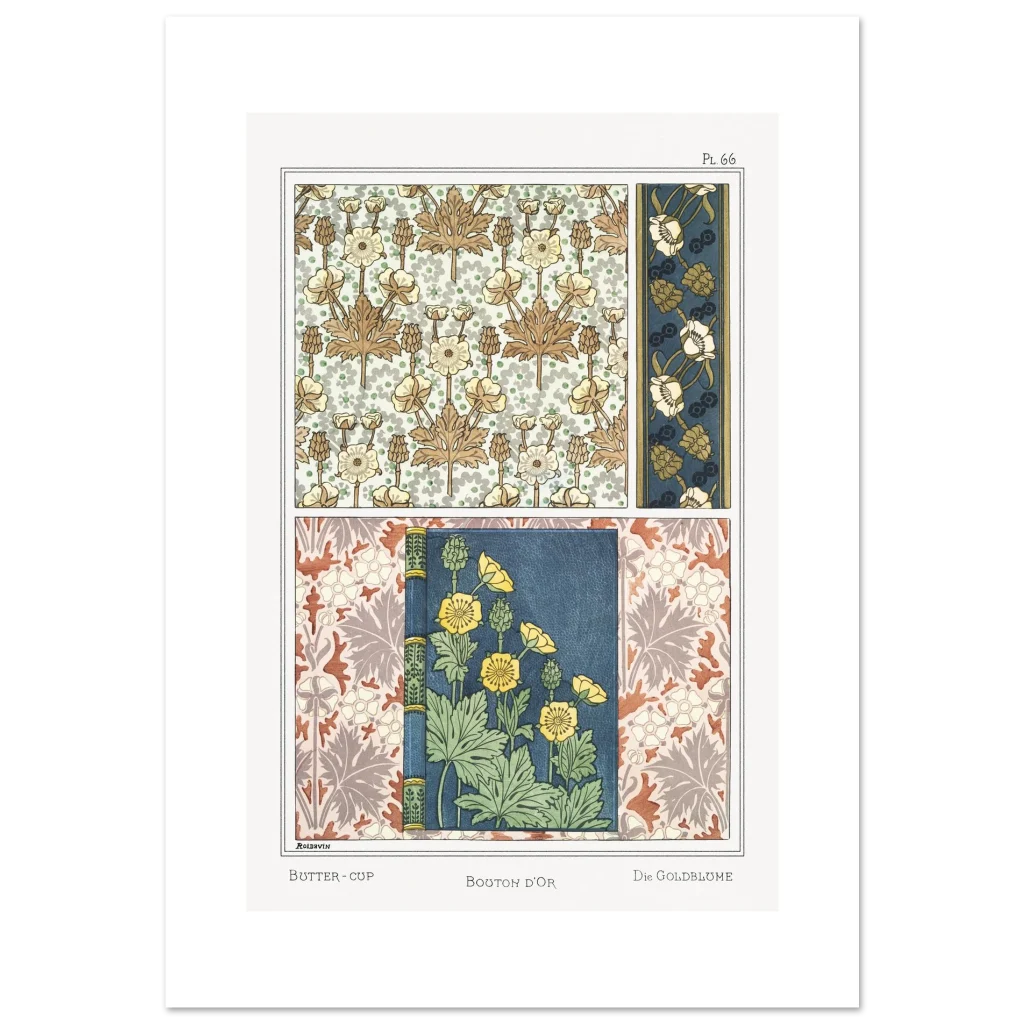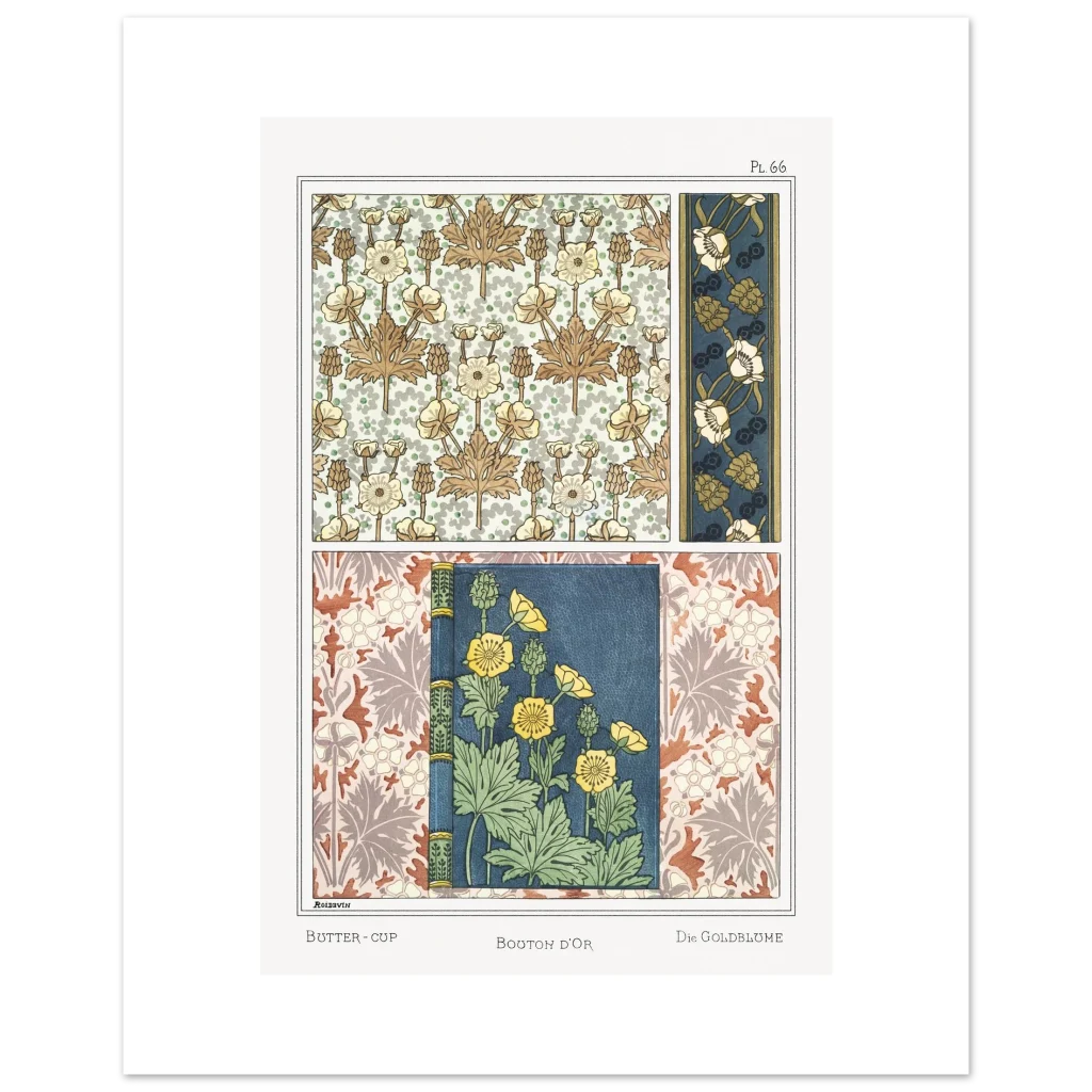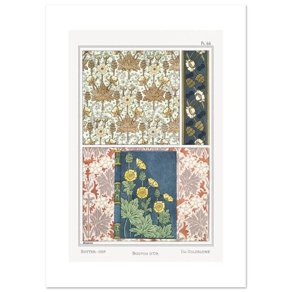 Immerse your space in the timeless elegance of Art Nouveau with our Buttercup Florals poster. Featuring intricate botanical patterns in a rich palette of deep blues, golden yellows, and earthy browns, this piece captures the delicate beauty and flowing lines characteristic of the era. It’s an exquisite statement for any room, bringing a touch of vintage charm and sophisticated artistry to your home or office.