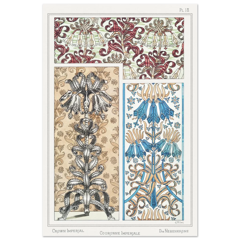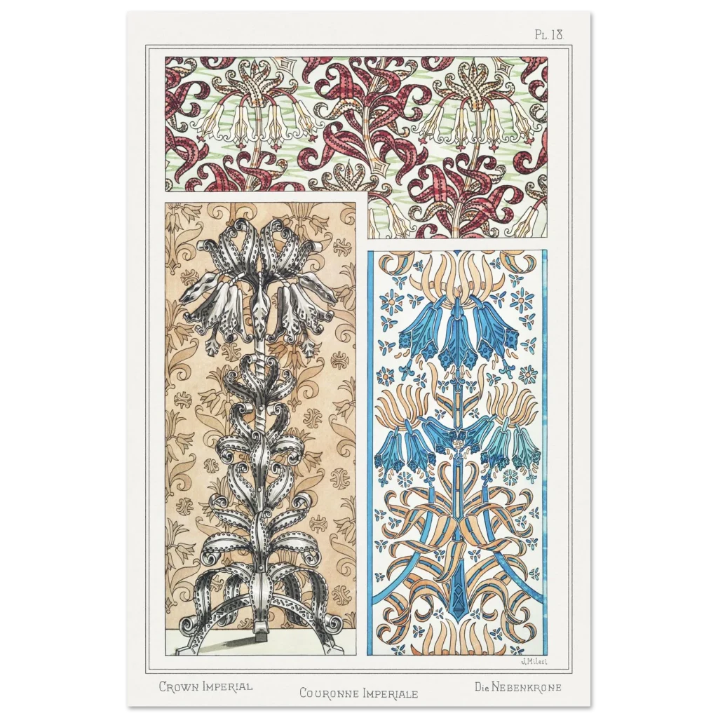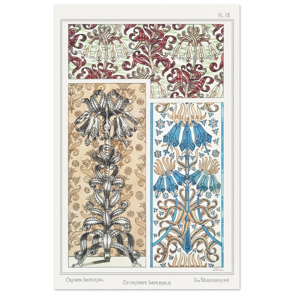 Art Nouveau “Crown Imperial” Botanical Poster – Intricate Floral Designs in Rich Hues, Premium Matte Paper Print