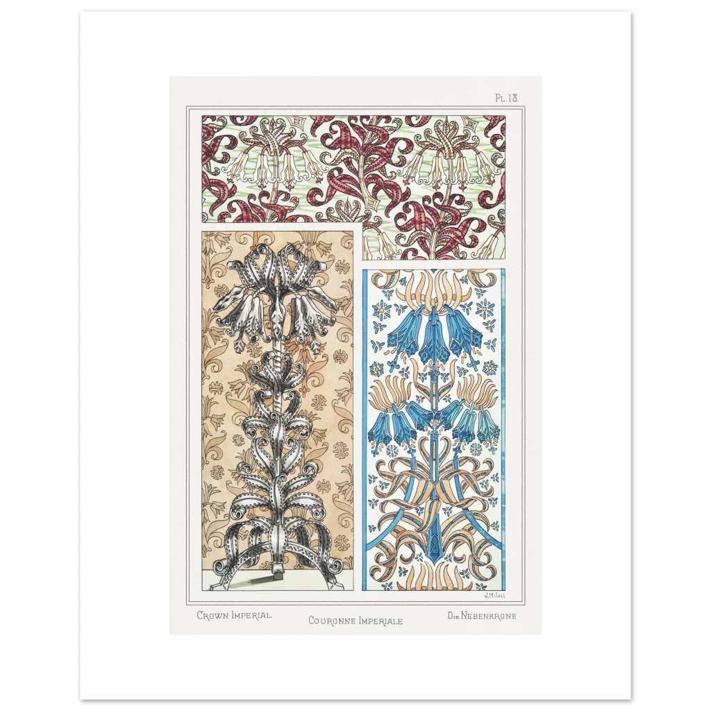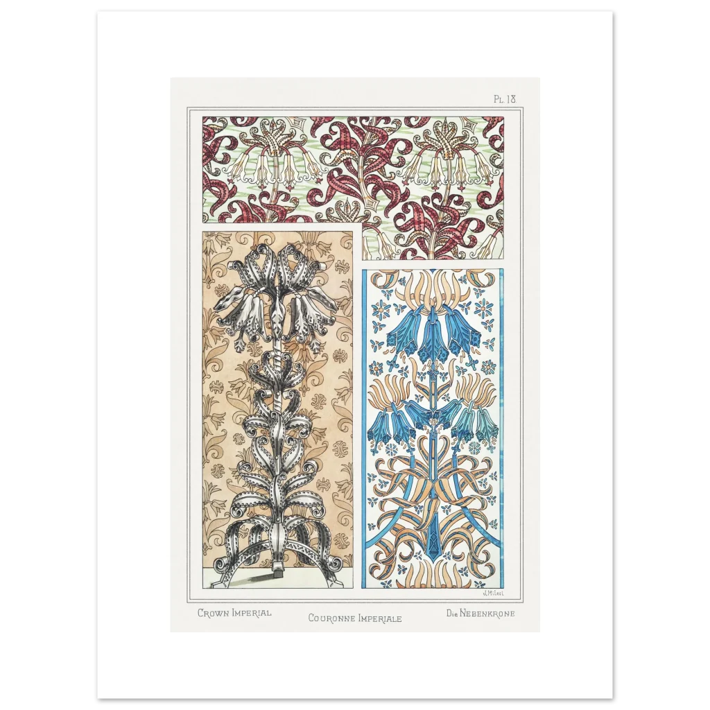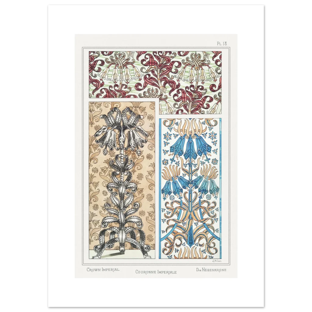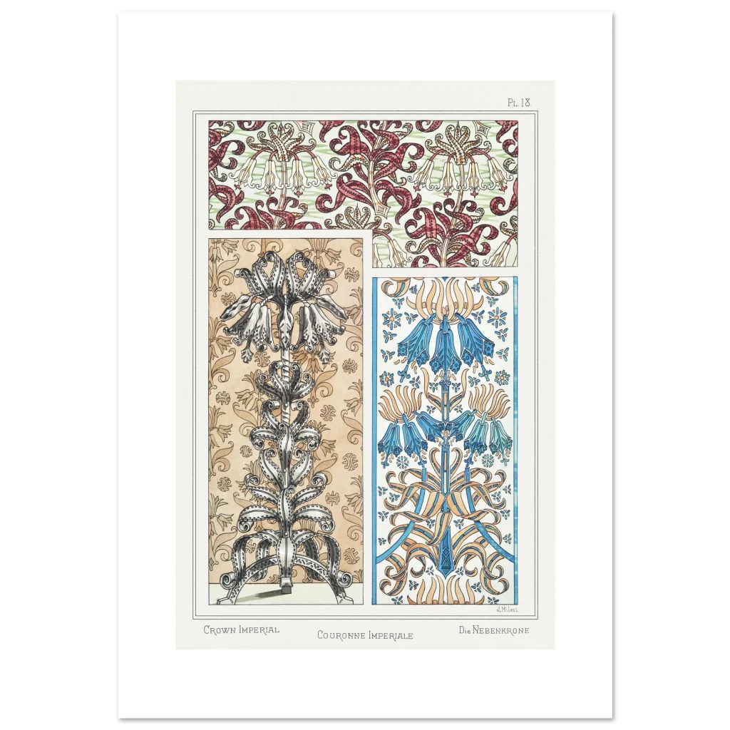 Art Nouveau “Crown Imperial” Botanical Poster – Intricate Floral Designs in Rich Hues, Premium Matte Paper Print