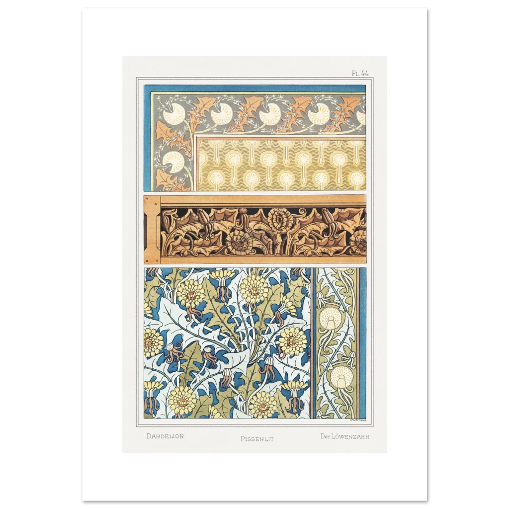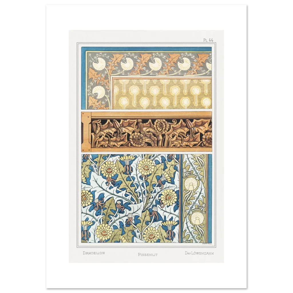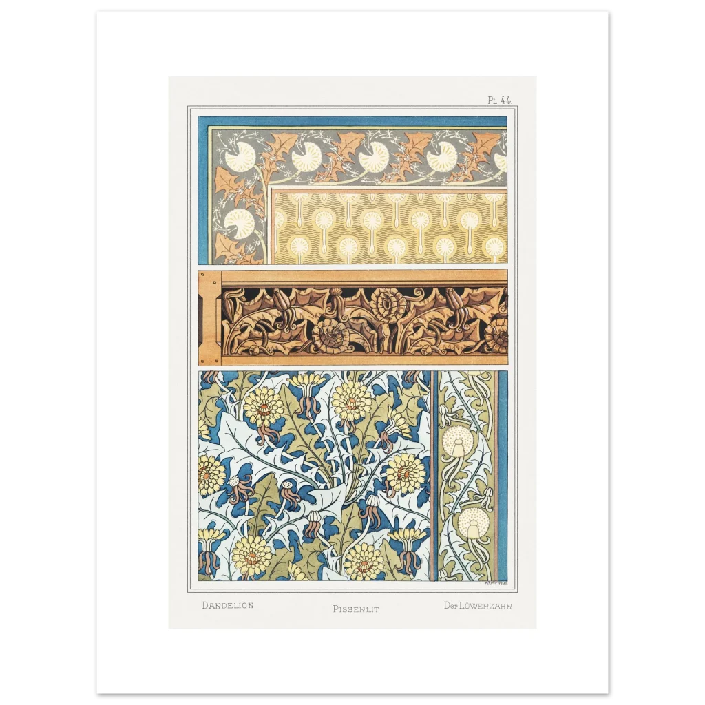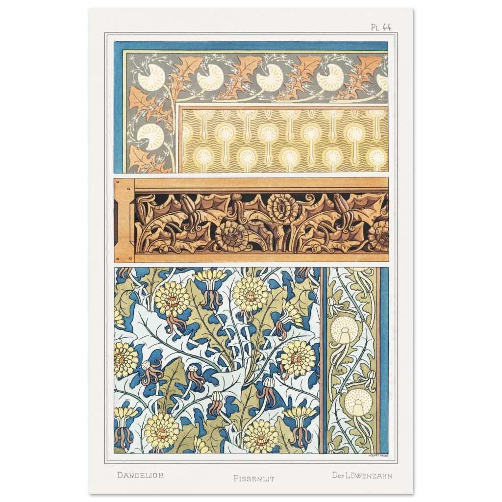 Art Nouveau Dandelion & Floral Patterns Premium Matte Paper Poster – Botanical Elegance for Your Home