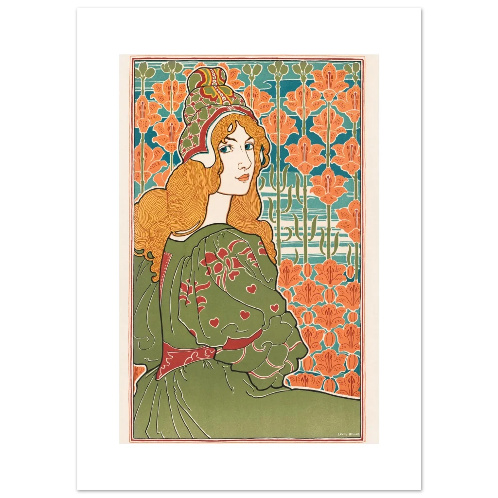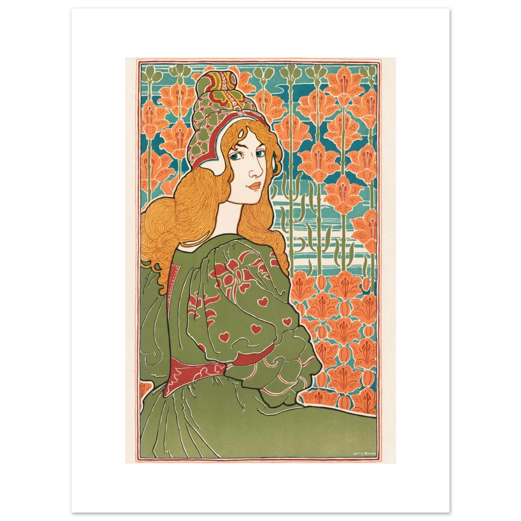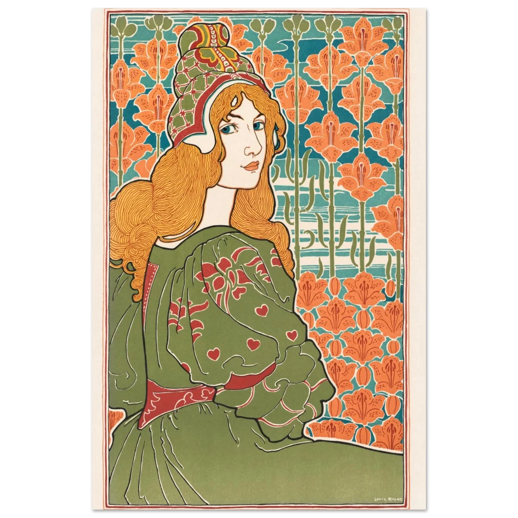 Art Nouveau Enchantress Premium Matte Poster – Lush Green & Orange Lily Wall Art
