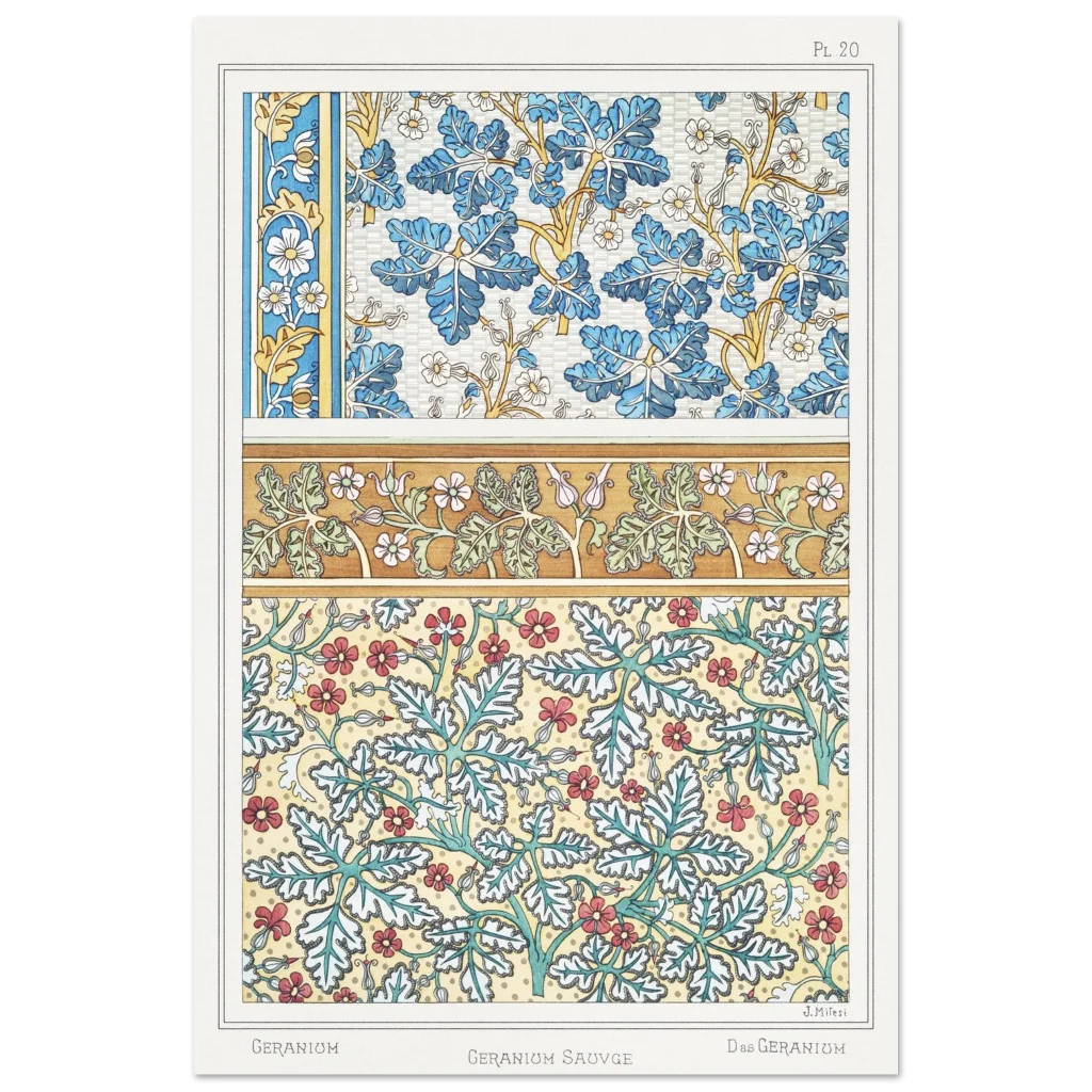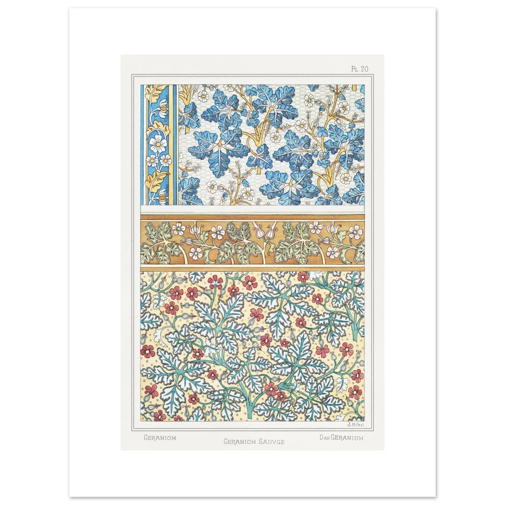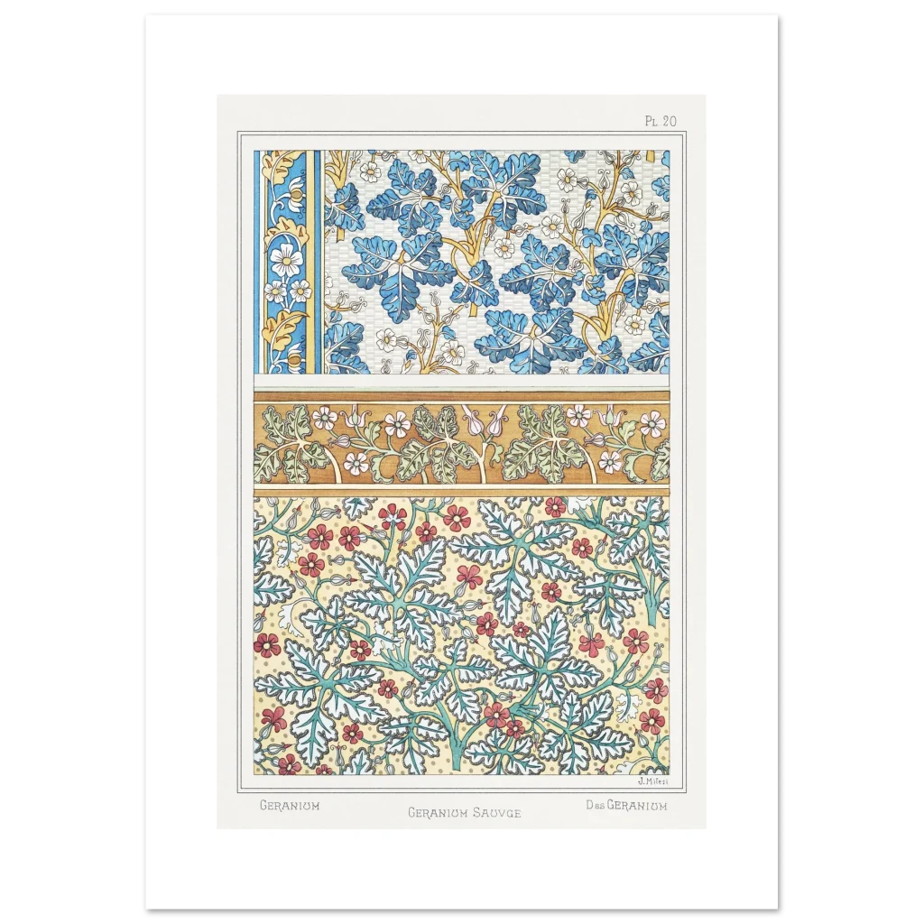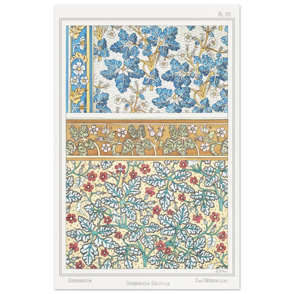 Art Nouveau Geranium Floral Patterns – Premium Matte Paper Poster